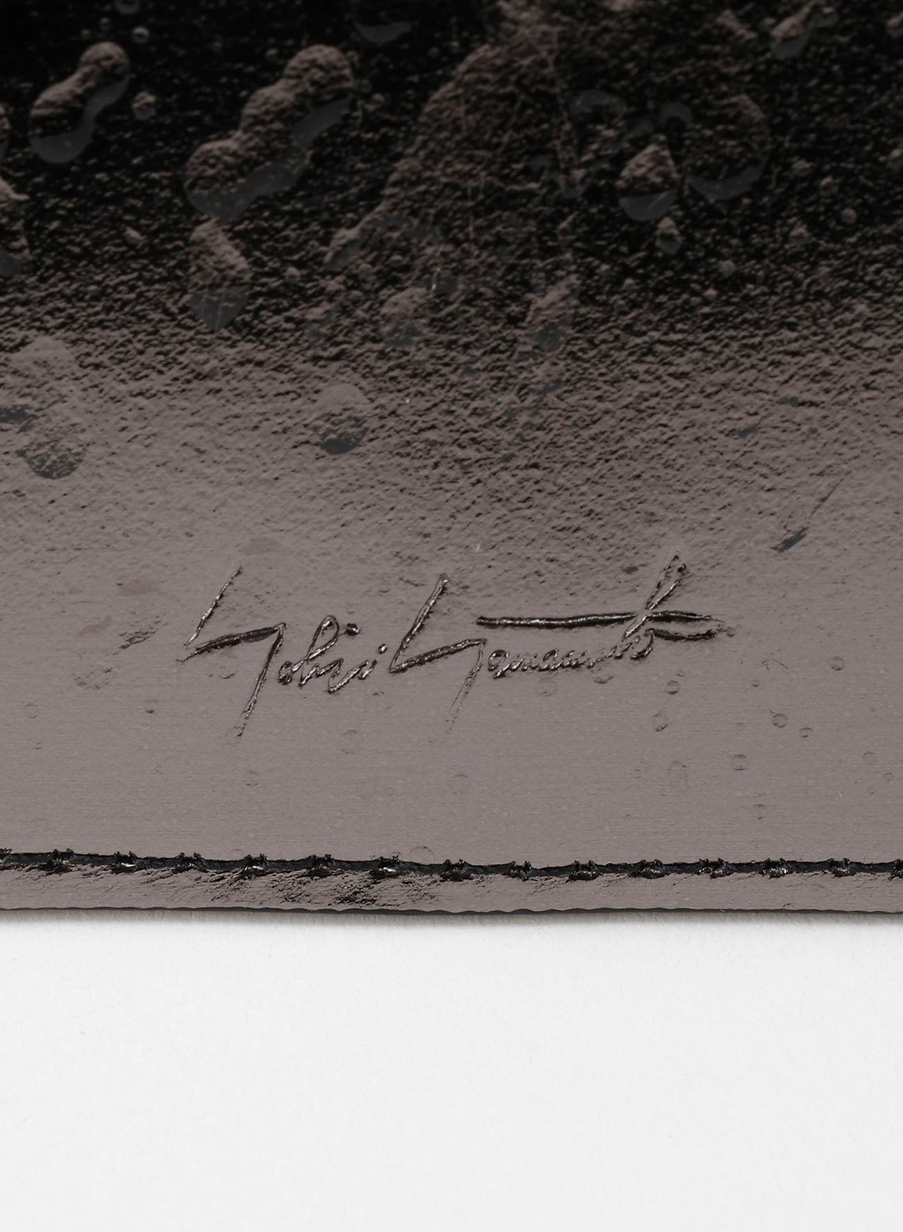 This sleek business card holder matures beautifully over time as its leather card slots adapt and become more dimensional. Crafted with foil-applied leather and featuring randomly splattered enamel droplets, each item is unique due to the artisan's handwork, resulting in individual variations in the water droplet patterns.