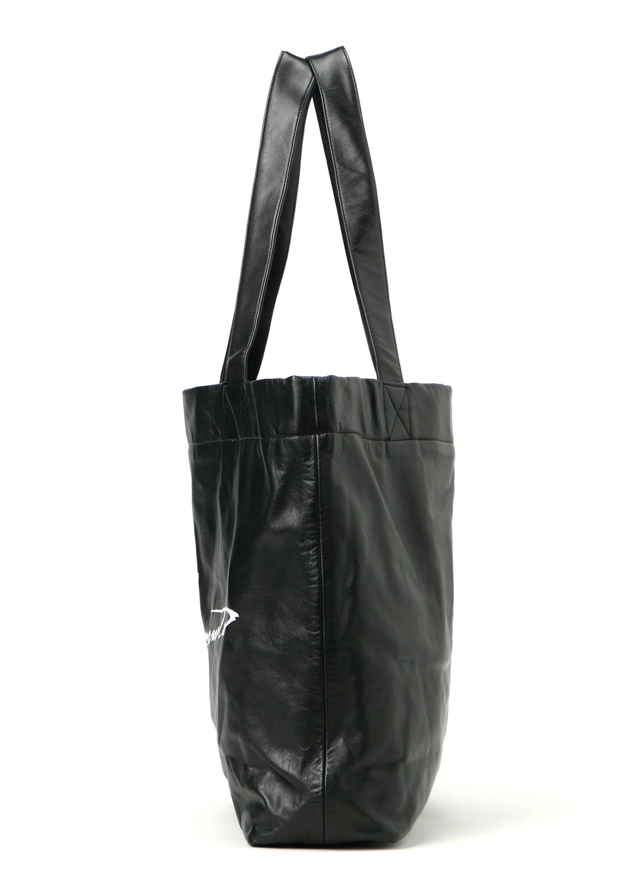 Este bolso tote presenta la firma impresa de Yohji Yamamoto y utiliza cuero de vaca delgado y flexible. Es una elegante fusión de estilo y practicidad, perfecta para cualquier fanático de la marca. El cuero suave asegura comodidad y un toque único, representando la filosofía de diseño atemporal de Yohji Yamamoto.