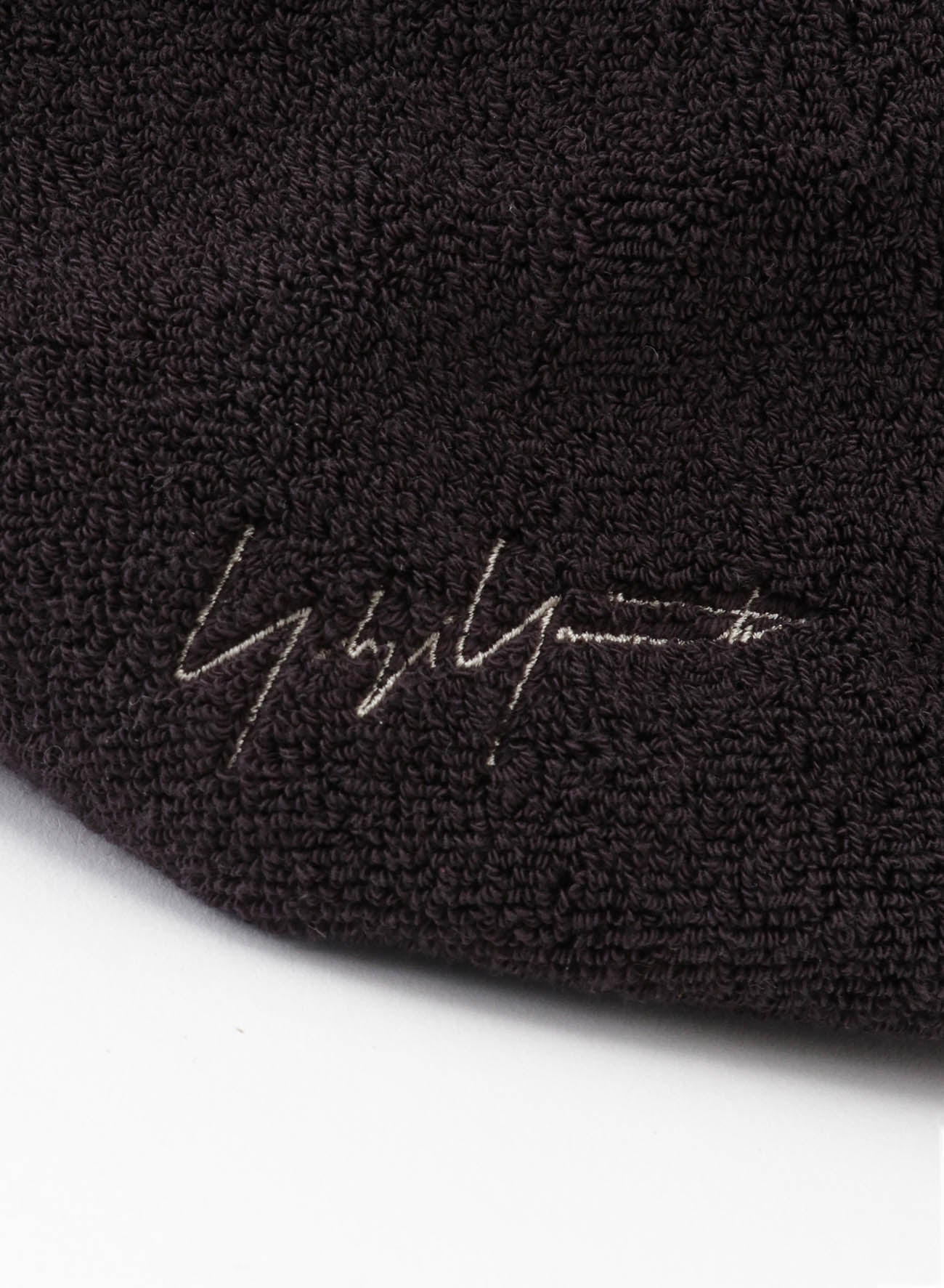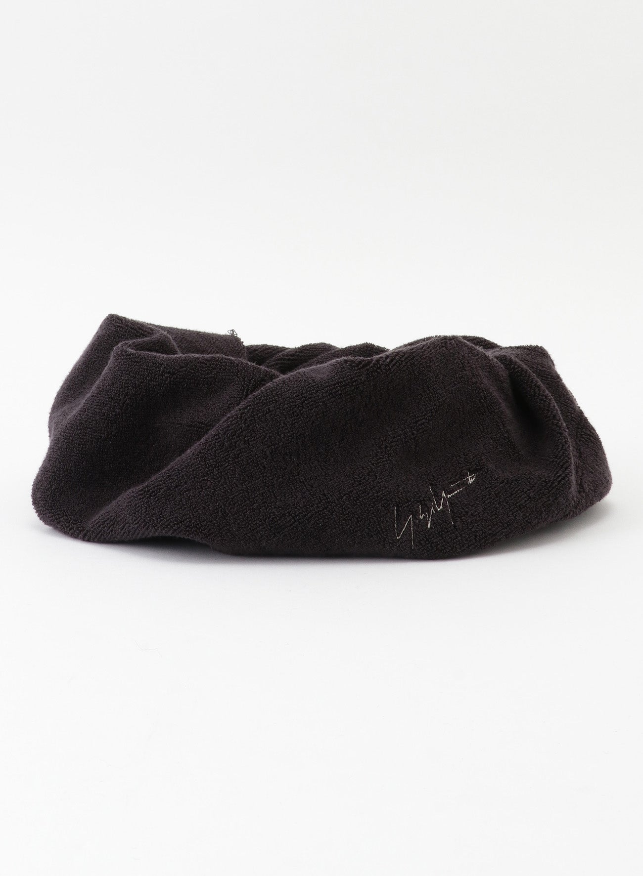 Este turbante de toalla de alta calidad está hecho de 100% algodón orgánico y elaborado utilizando el característico tejido de la reconocida marca de toallas Imabari "IKEUCHI ORGANIC." El material de la toalla es seguro para bebés y sigue la filosofía de "Máxima seguridad con mínimo impacto ambiental." El turbante está reciclado de la colección de archivo de Yohji Yamamoto POUR HOMME, presentando un diseño voluminoso que complementa la moda.