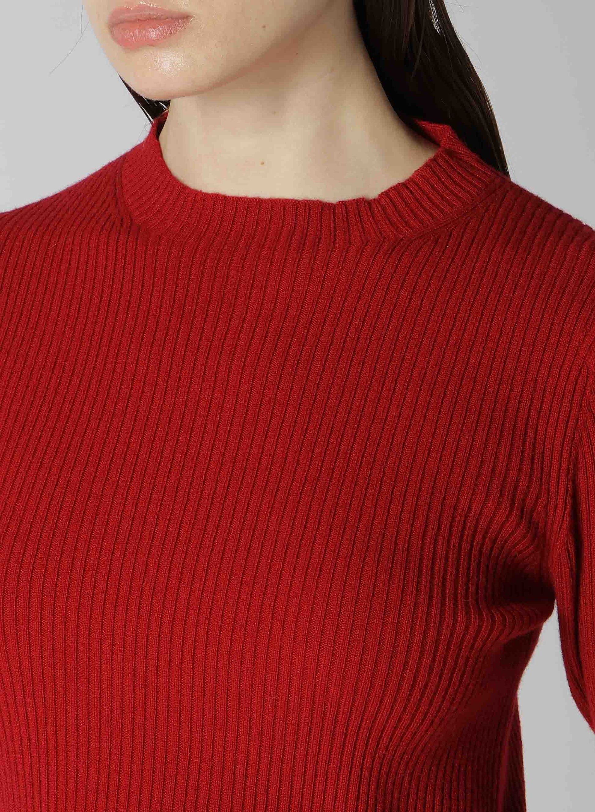 - Suéter de punto de canalé, cuello redondo