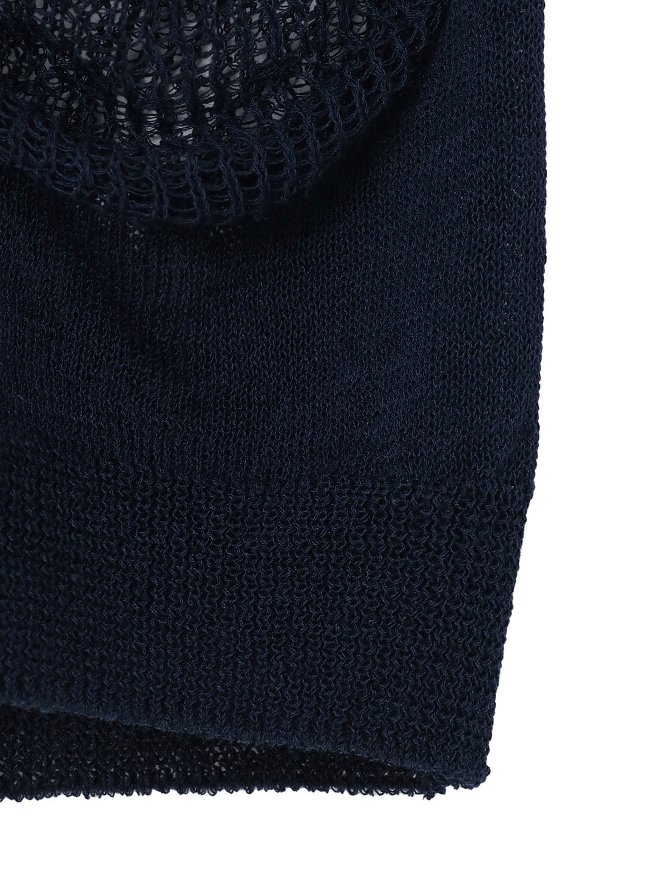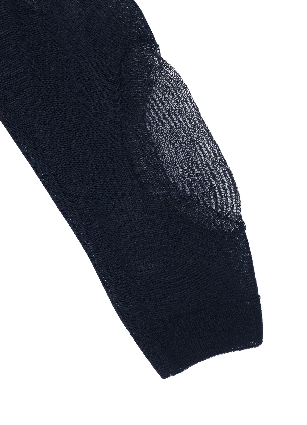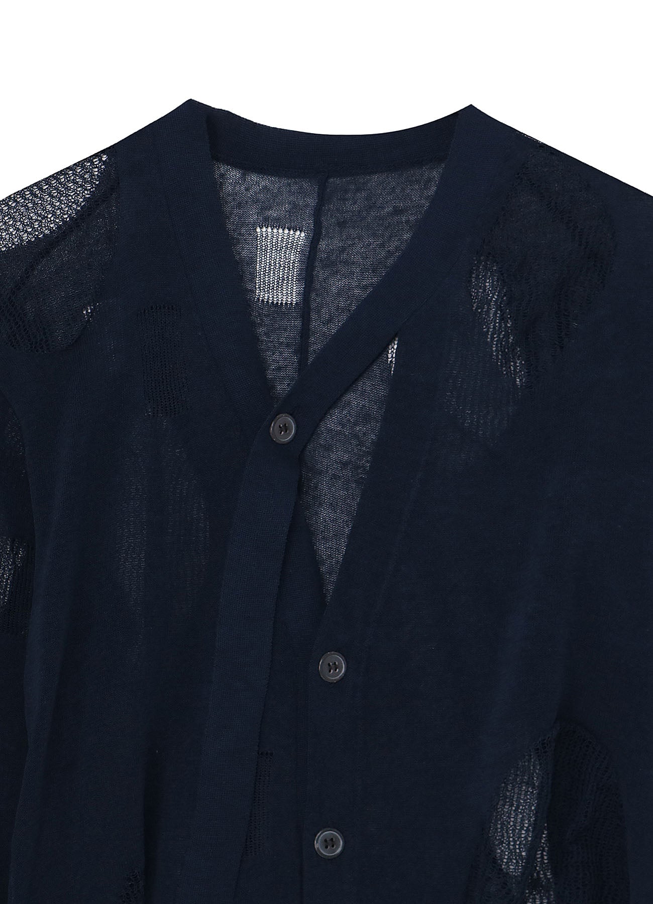 Esta chaqueta de punto tiene una textura translúcida que ofrece un aspecto refrescante, ideal para el pleno verano. Fabricada con material de baja formación de bolitas, proporciona una sensación suave y fresca. La mezcla de poliéster ayuda a reducir las arrugas, manteniendo una apariencia impecable. El modelo usa un artículo de muestra.