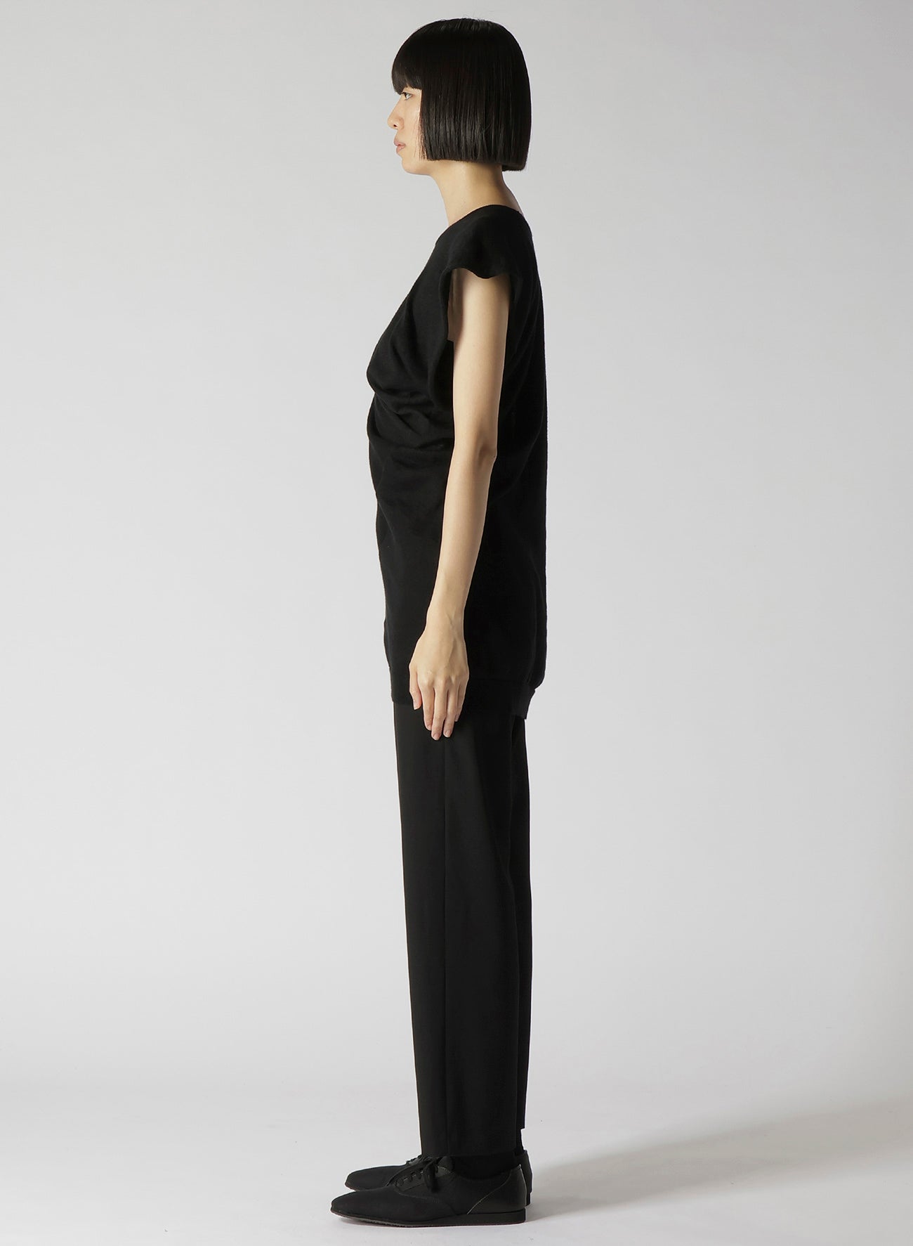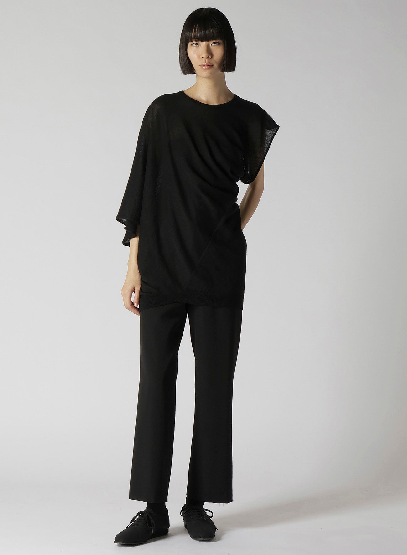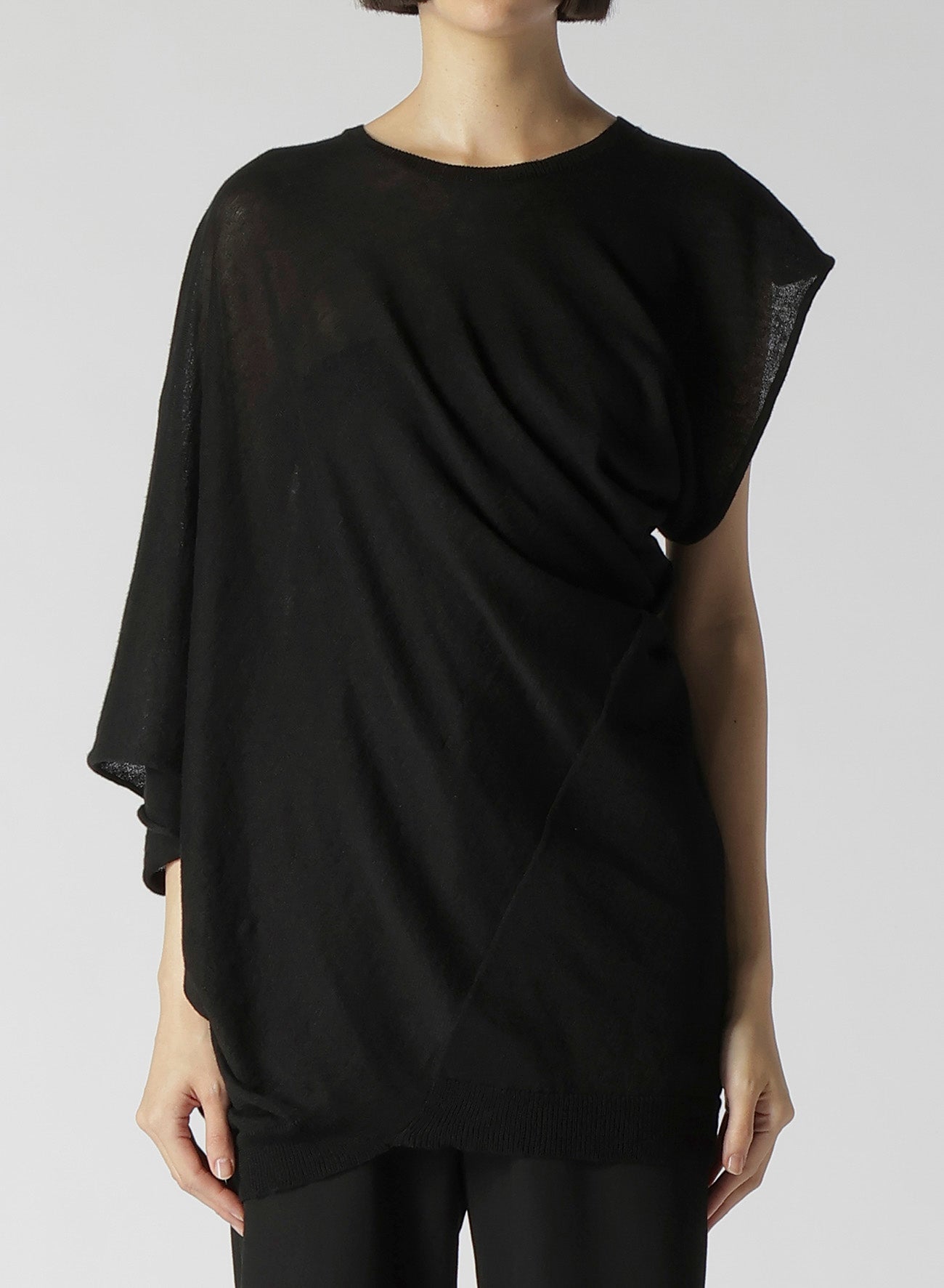 14G1P LOW TENSION PLAIN STITCH DRAPE DETAIL SHORT SLV PULLOVER