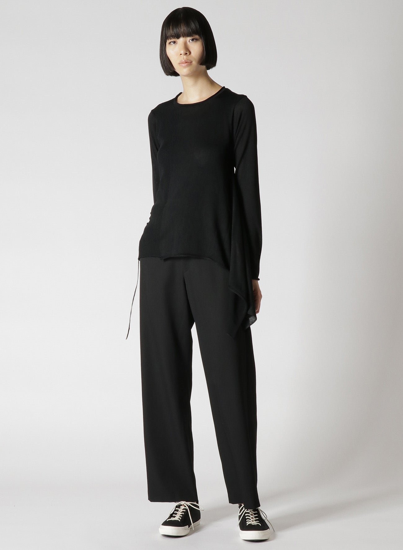 12G RIB, PLAIN STITCH, STRING ASYMMETRIC FLARE PO WITH STRING