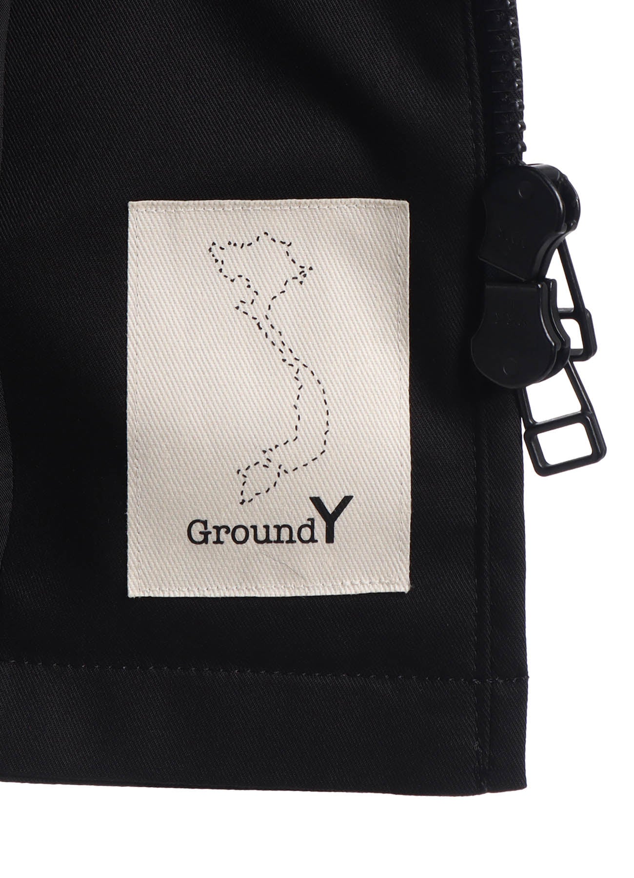 The Ground Y BEYOND BORDERS jacket features rain flaps on both the front and back, adding a functional touch to this casual blouson jacket. When you lift the left front rain flap, a pocket appears. Additionally, the jacket boasts side zipper pockets. Made from Viyella fabric, it offers a sophisticated sheen and attractive drapery.