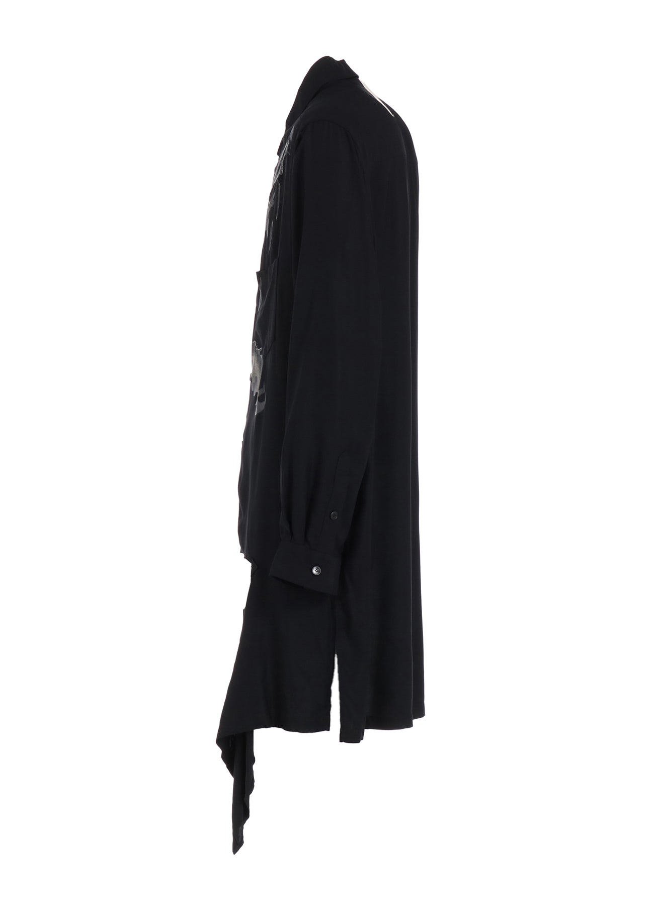 La Ground Y 2025-26 Colección Otoño/Invierno presenta una pieza audaz inspirada en el arte tradicional japonés como el "sumie", mostrando los motivos distintivos de la BRAND NAME. Esta pieza incluye el proyecto "Beyond Borders" con sarga de rayón y un diseño suelto, ofreciendo ligereza y facilidad.