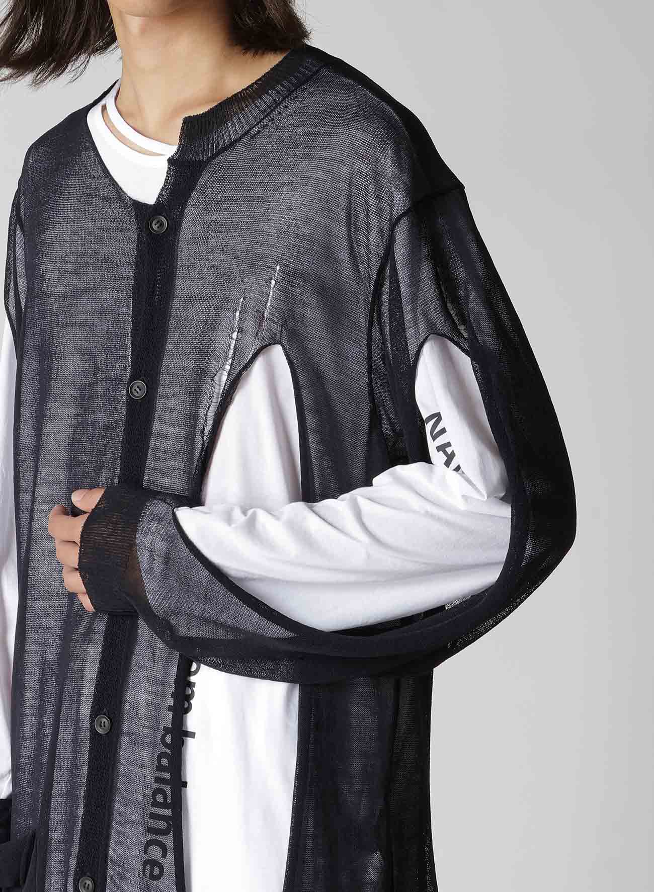 OPENWORK+HOLE DAMAGED ROUND NECK CARDIGAN
