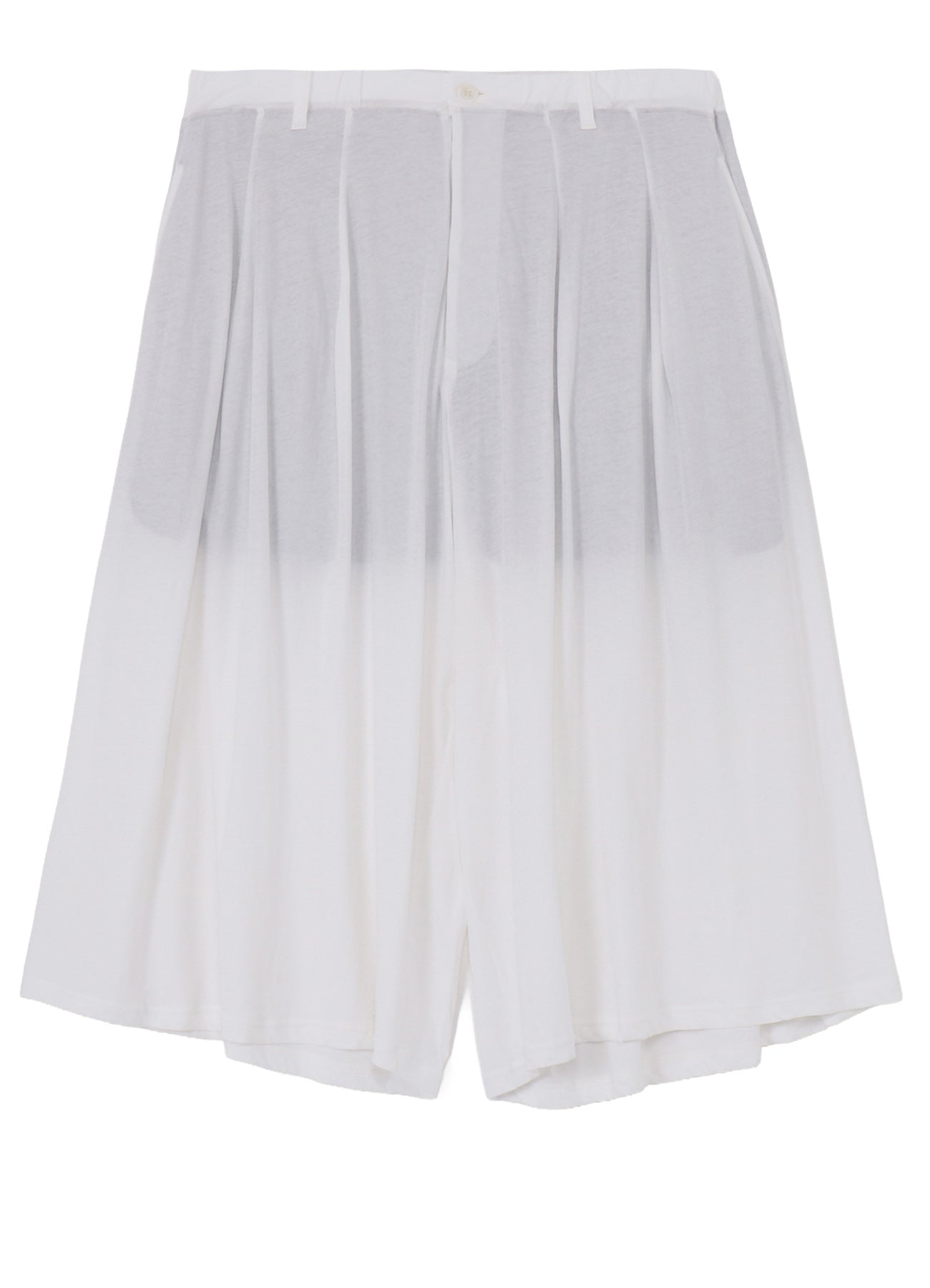 This product features pleated half-length pants made from 100% cotton with a strong-twist plain stitch fabric. It offers a luxurious feel and is characterized by a distinct coolness and softness due to special treatment. Ideal for stylish summer outfits.