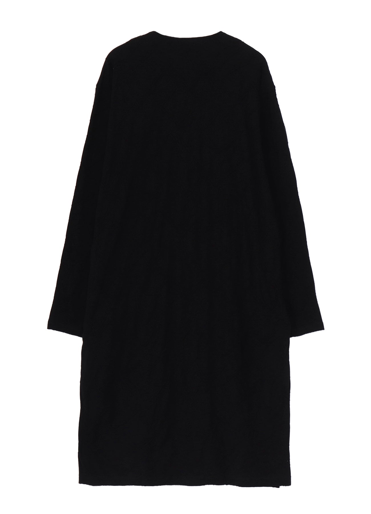 Esta elegante chaqueta sin cuello presenta un tejido jacquard de alto calibre con una estructura de tejido tridimensional que juega delicadamente con la luz y la sombra. La técnica de teñido exclusiva le confiere un color negro profundo y sofisticado. Ideal para crear conjuntos impactantes y versátiles.