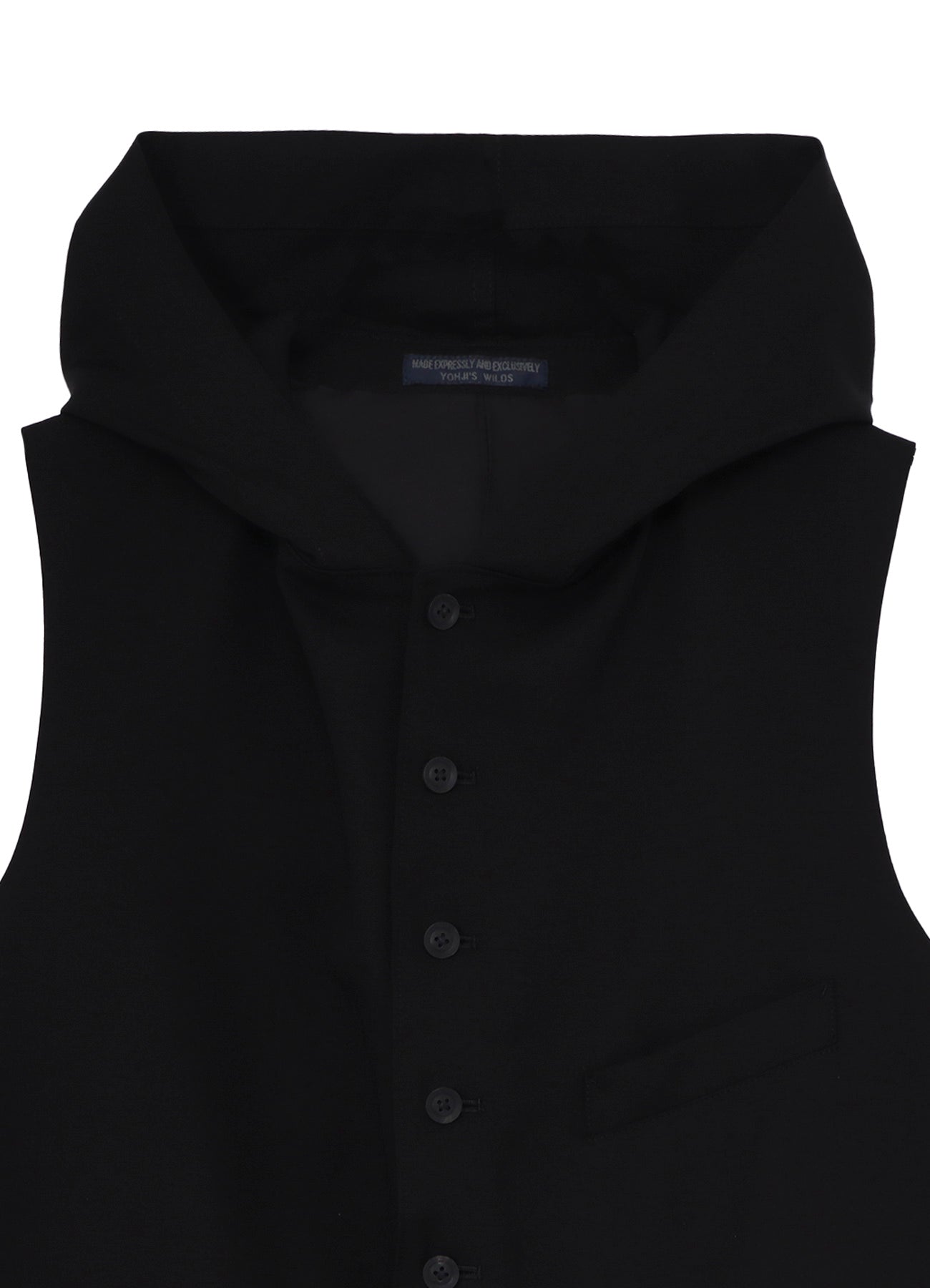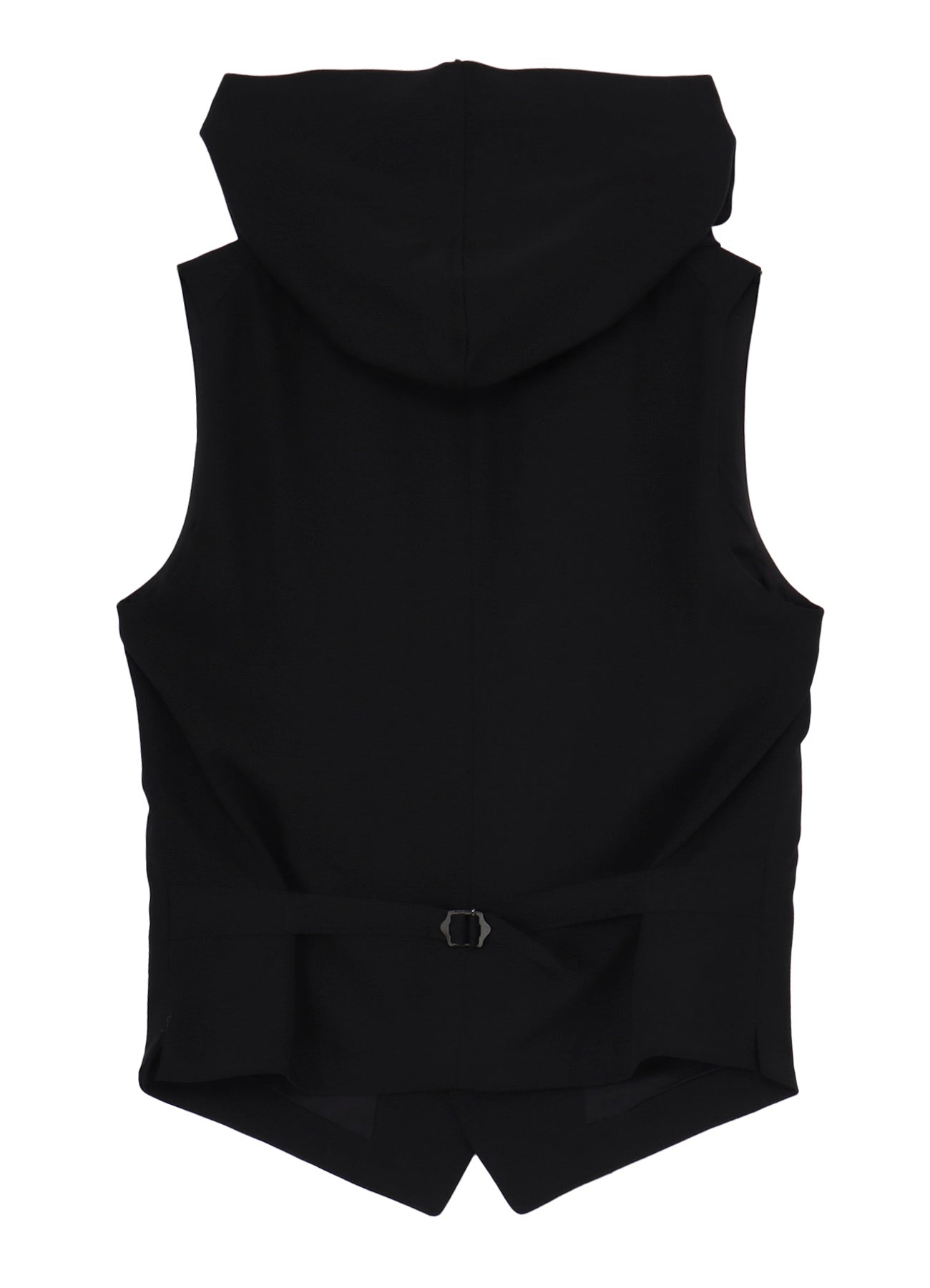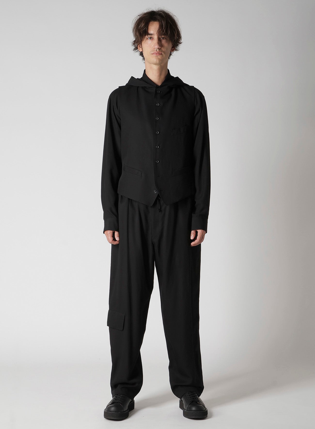 Este chaleco con capucha está hecho de gabardina de celulosa, conocida por su agradable firmeza, resistencia y excelente caída. El teñido se realiza en una fábrica de Kioto, creando un tono negro único. Es perfecto para conjuntos elegantes, su versatilidad permite que se combine fácilmente con diversas vestimentas y ocasiones.