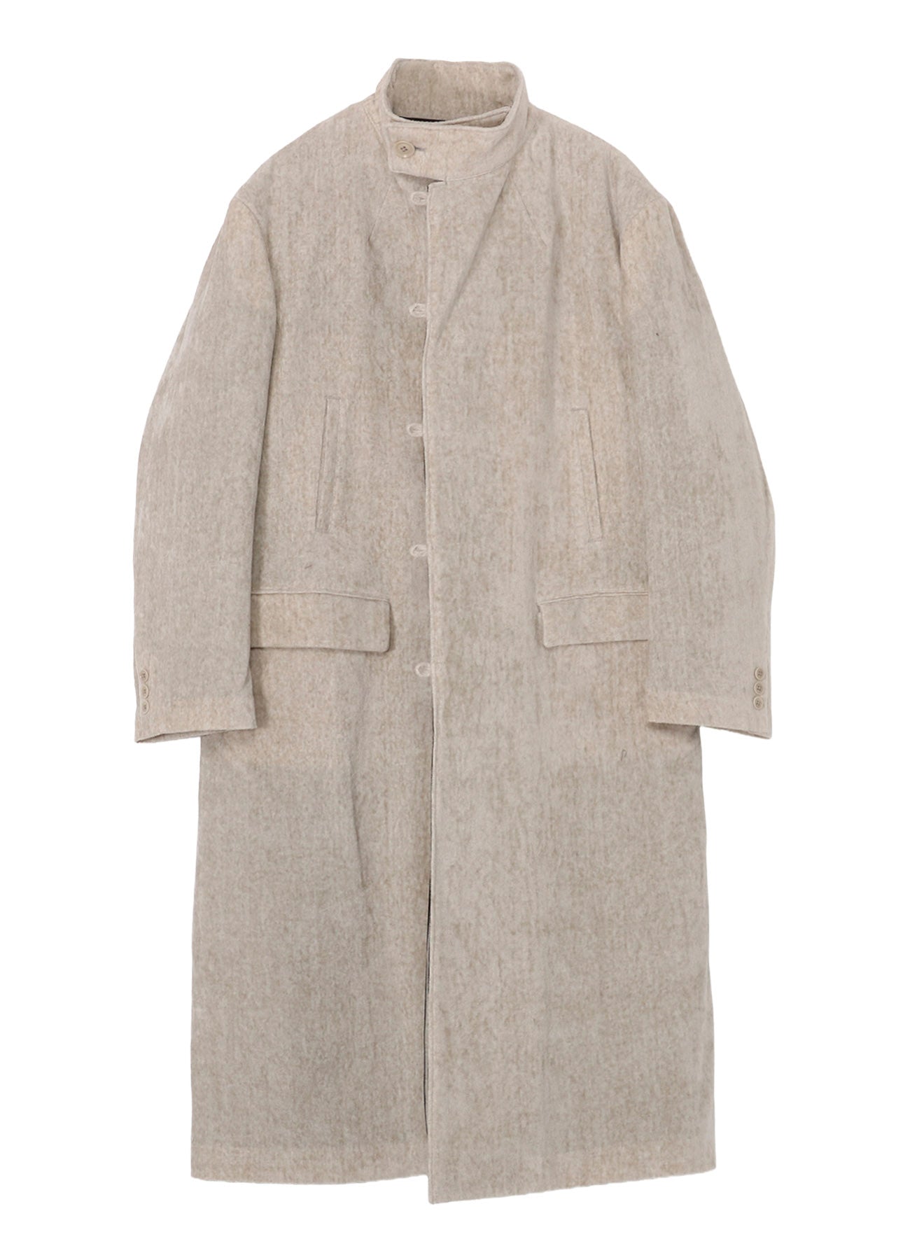 La colección Yohji Yamamoto POUR HOMME A/W 2025-26 presenta una chaqueta de cuello levantado con un tejido de terciopelo raro hecho de lino pile y base de algodón. Se teje a mano en un telar especial para un acabado lujoso. Su forro interior utiliza sarga con hilo de merino extrafino para una sensación suave.