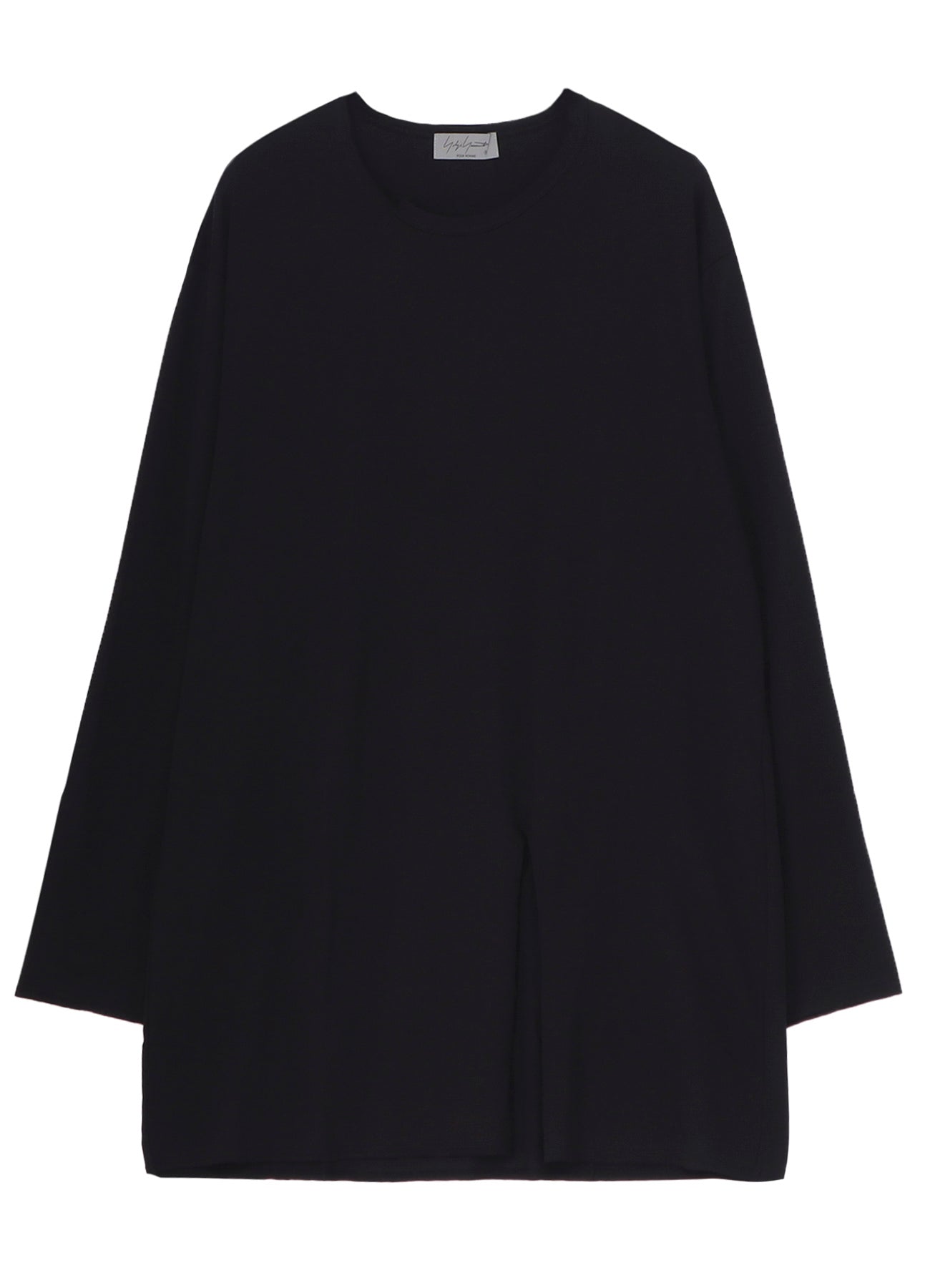 WOOL MIX SINGLE JERSEY SLIT ROUND NECK T