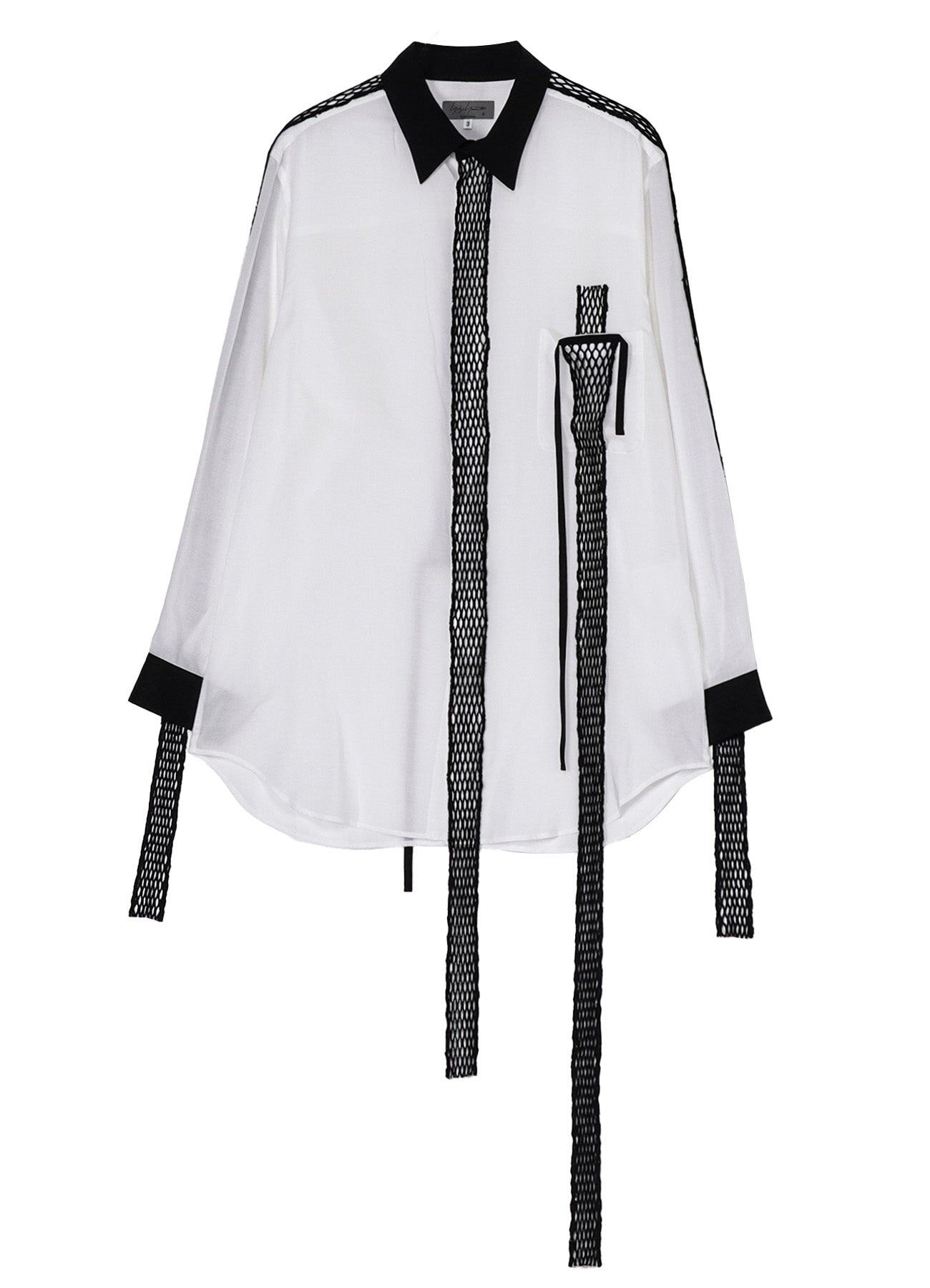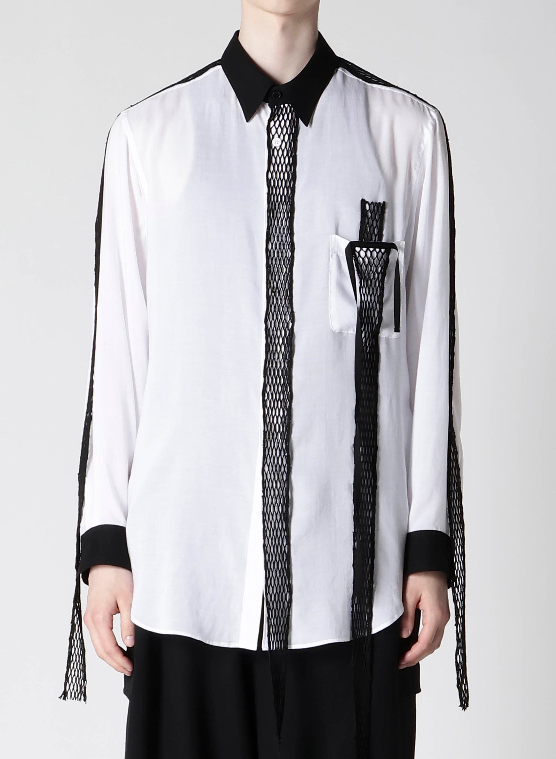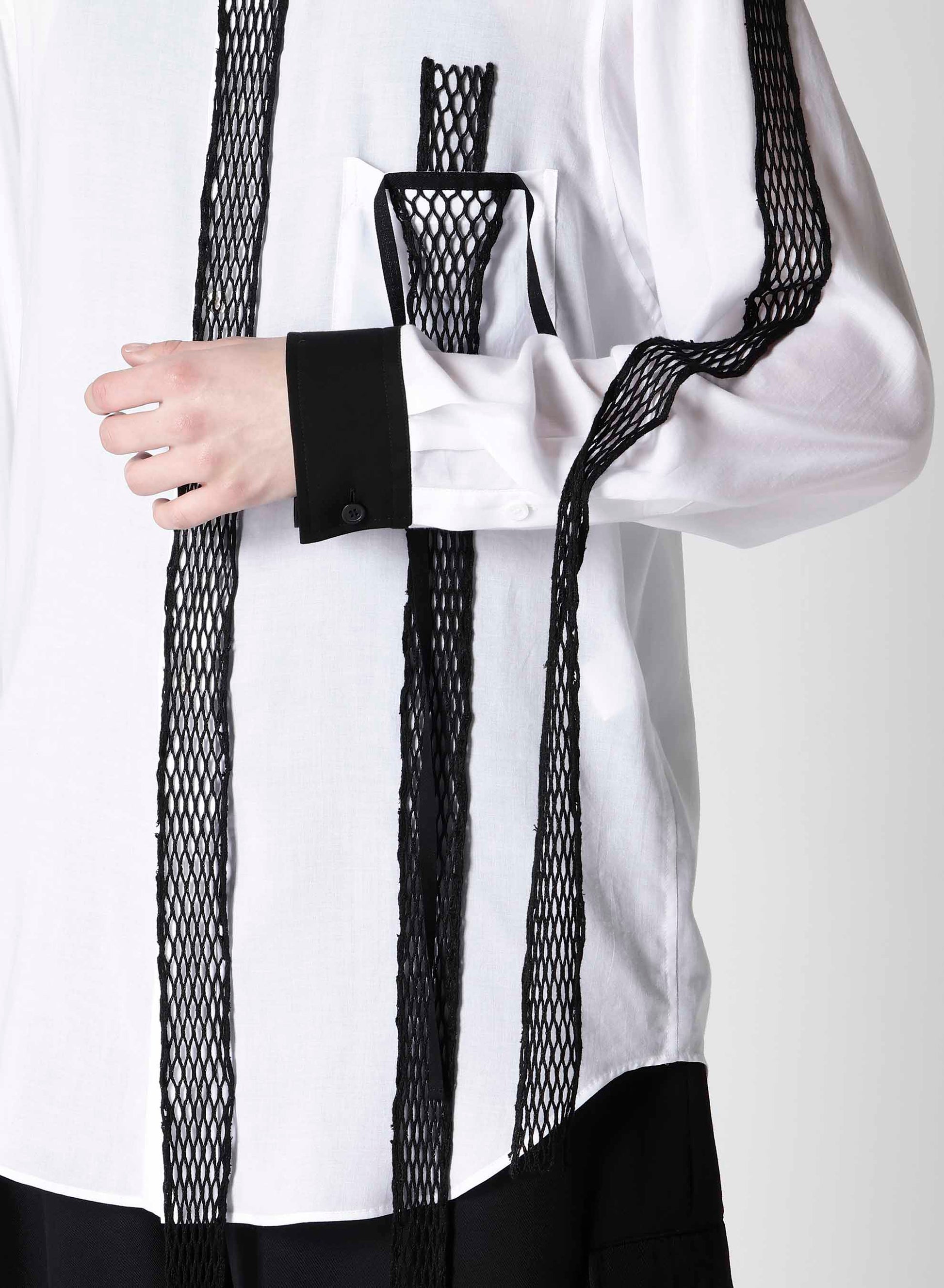 CELLULOSE LAWN PLACKET BLACK MESH TP BLOUSE