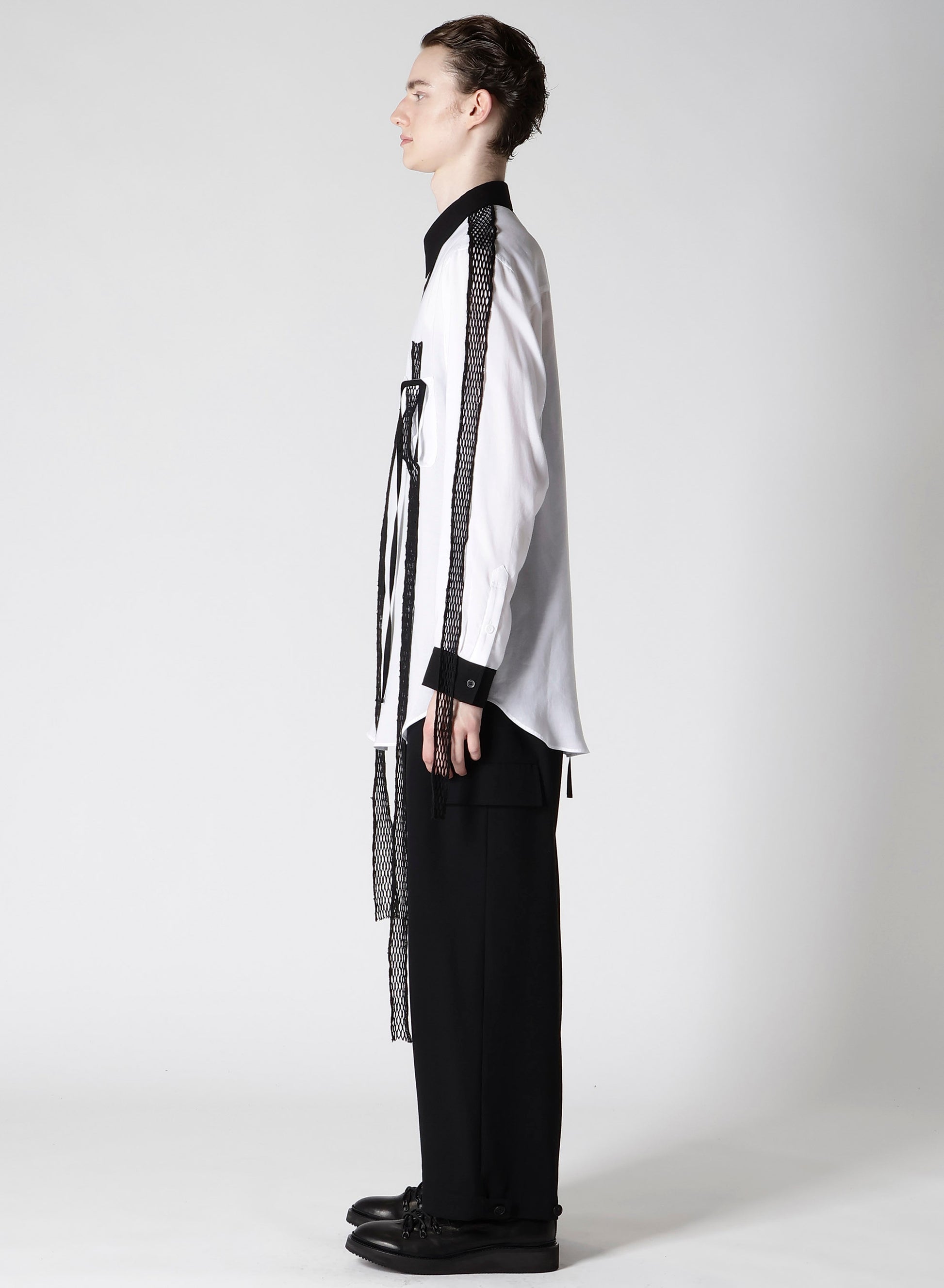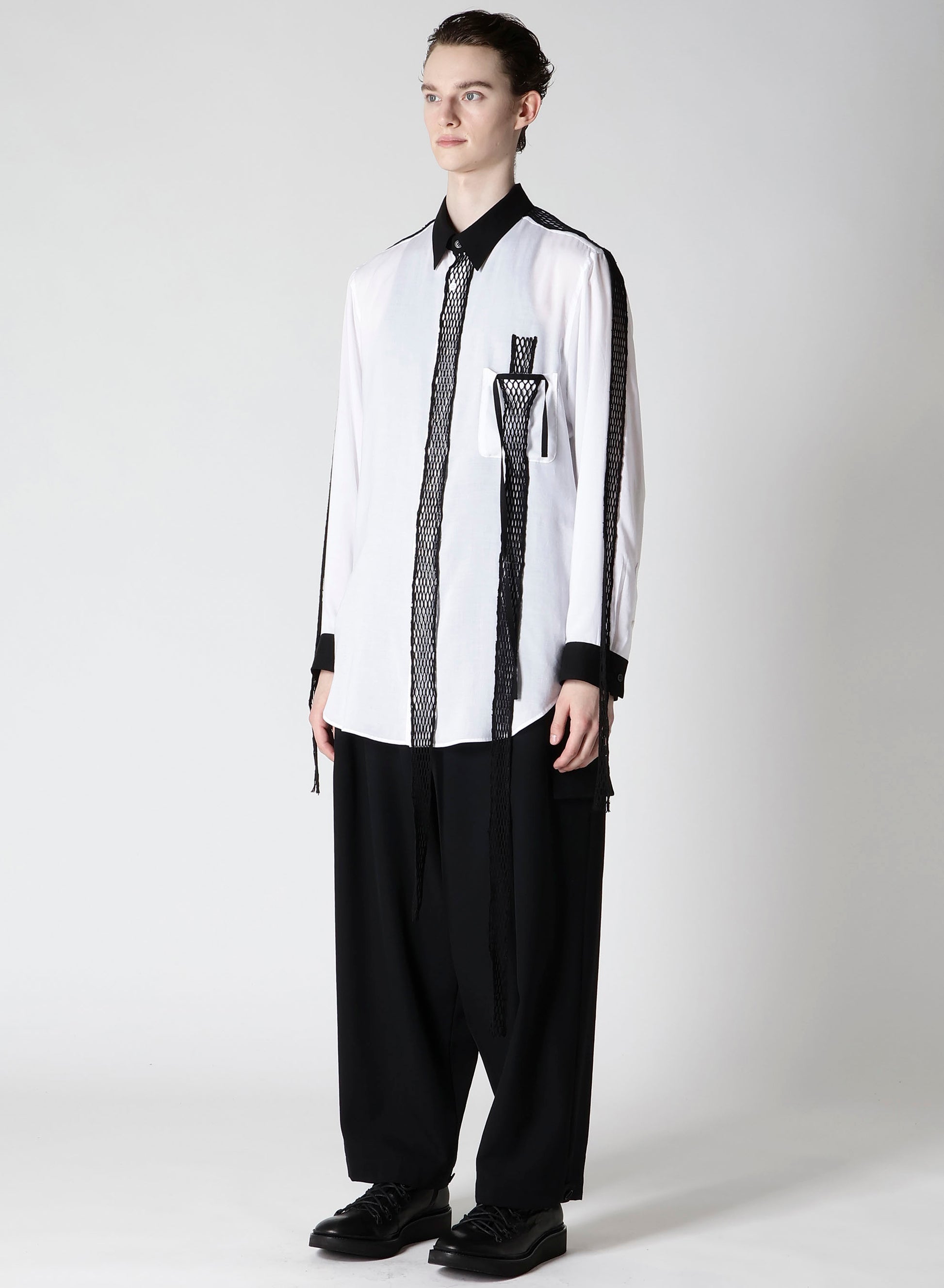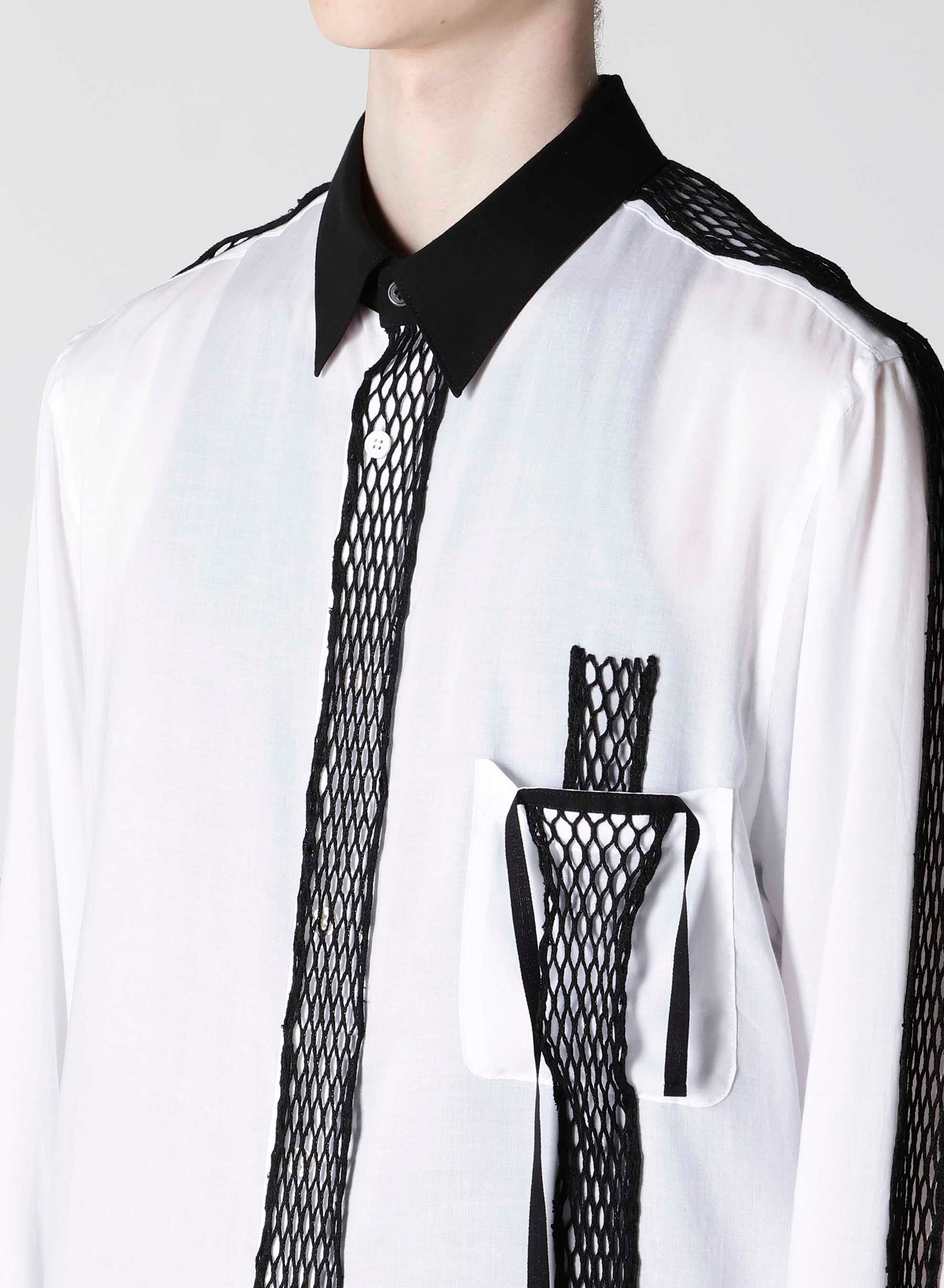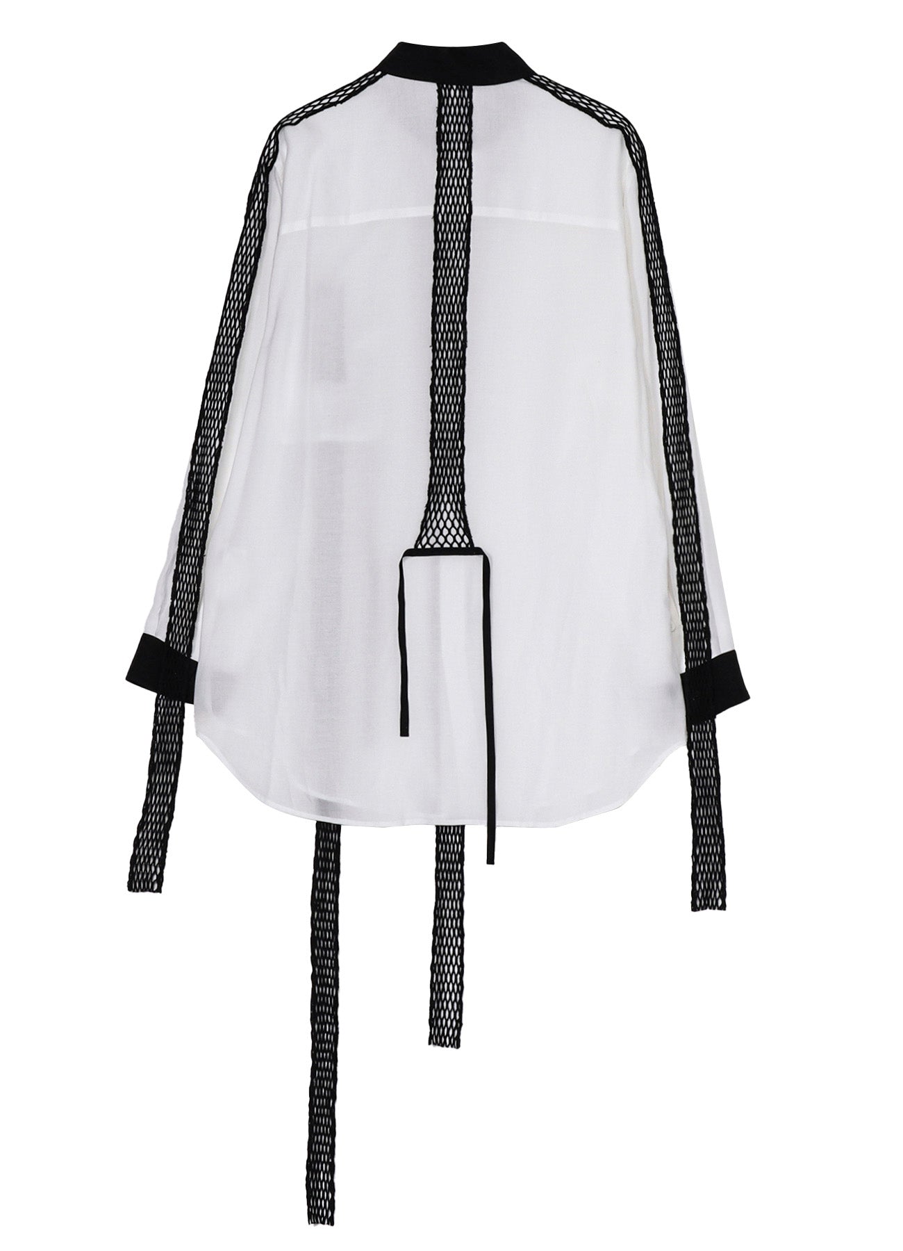 CELLULOSE LAWN PLACKET BLACK MESH TP BLOUSE