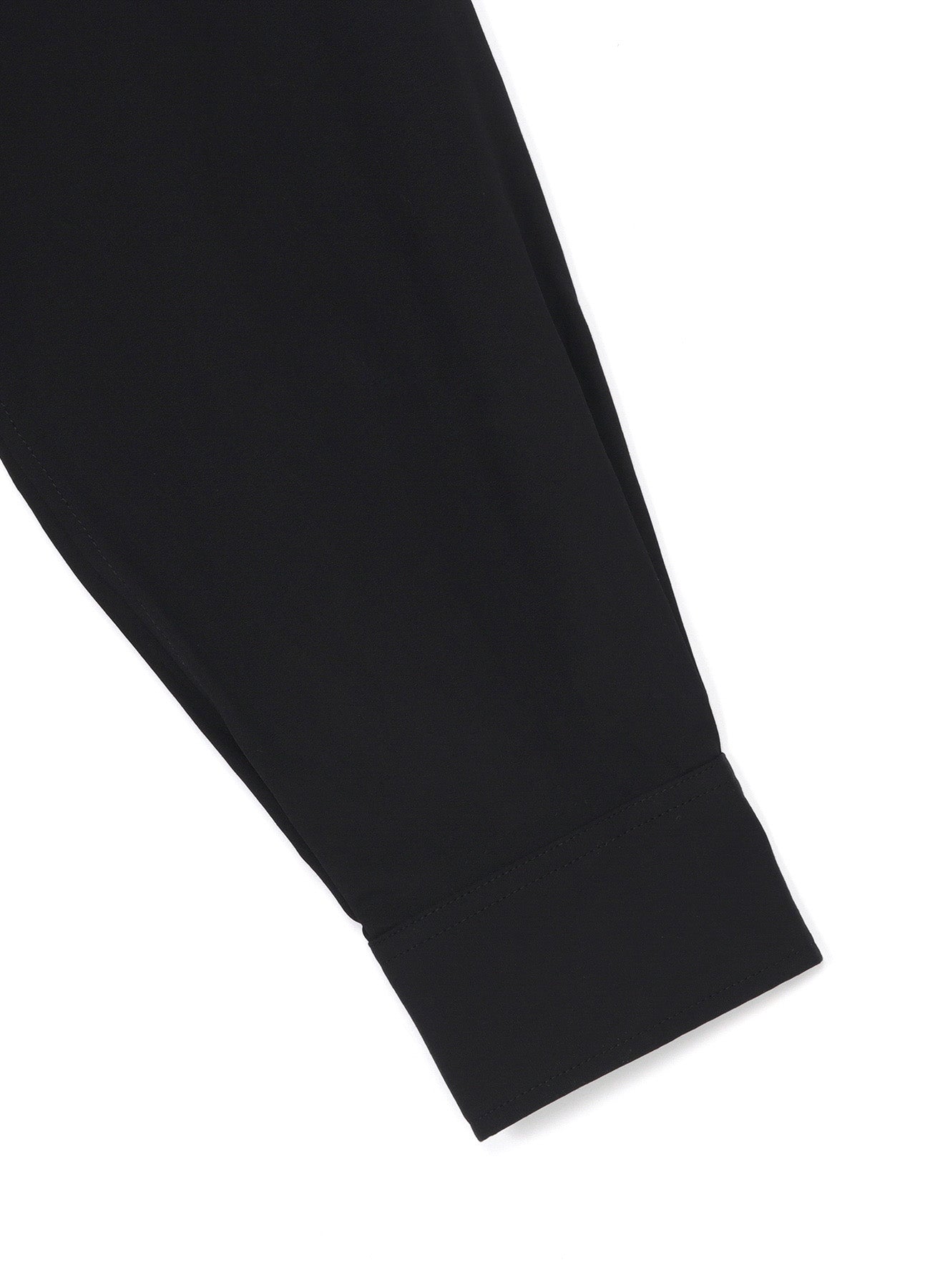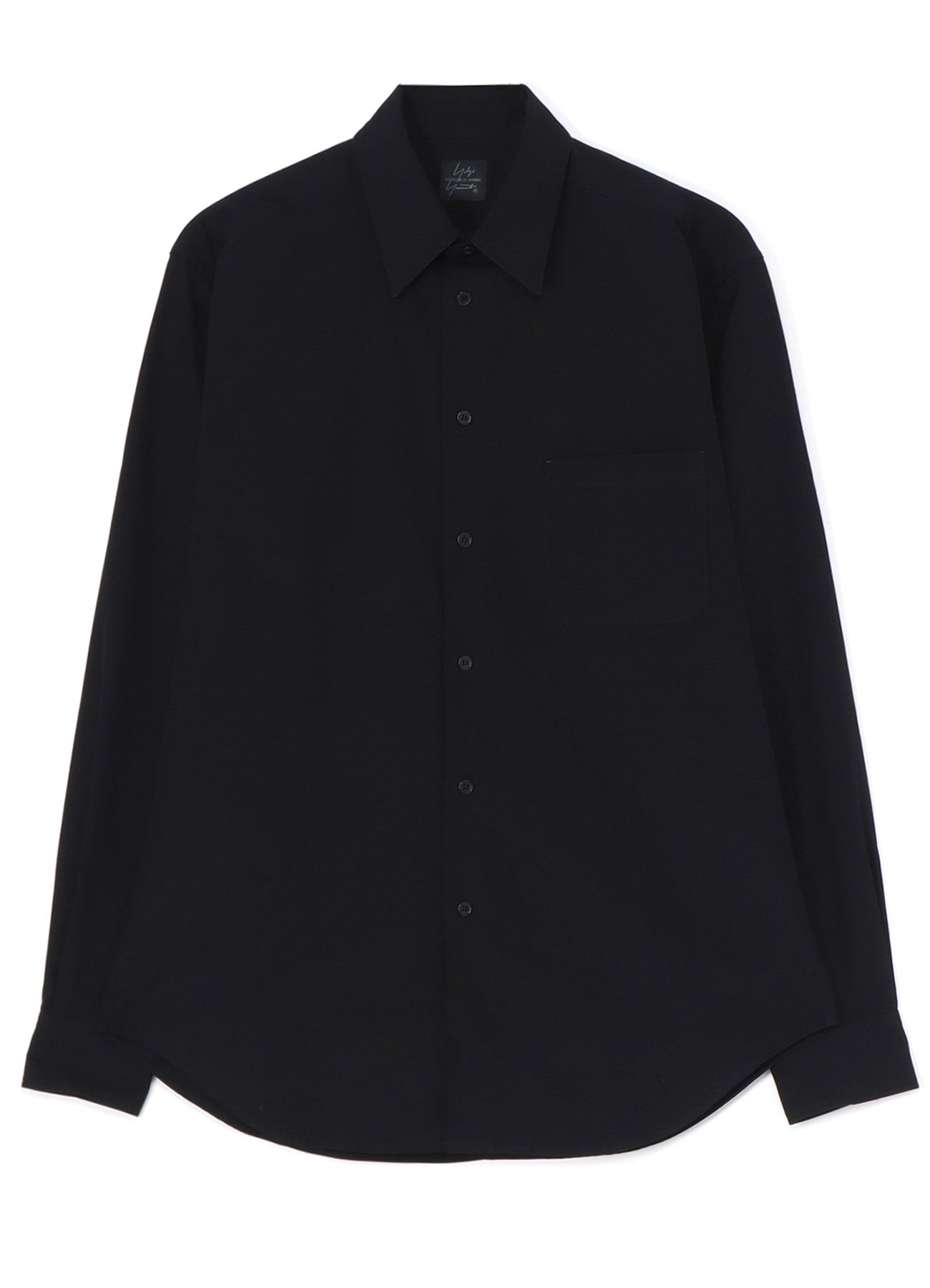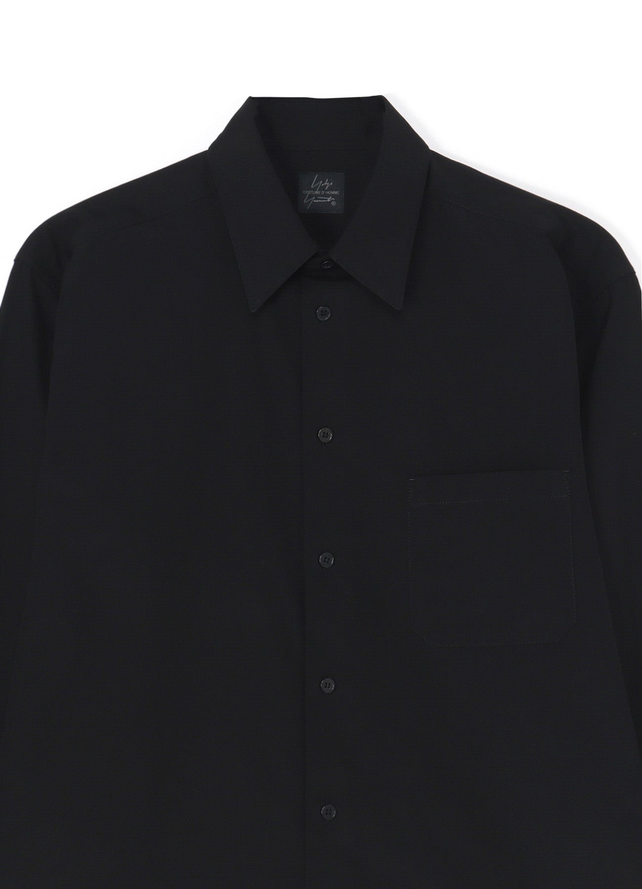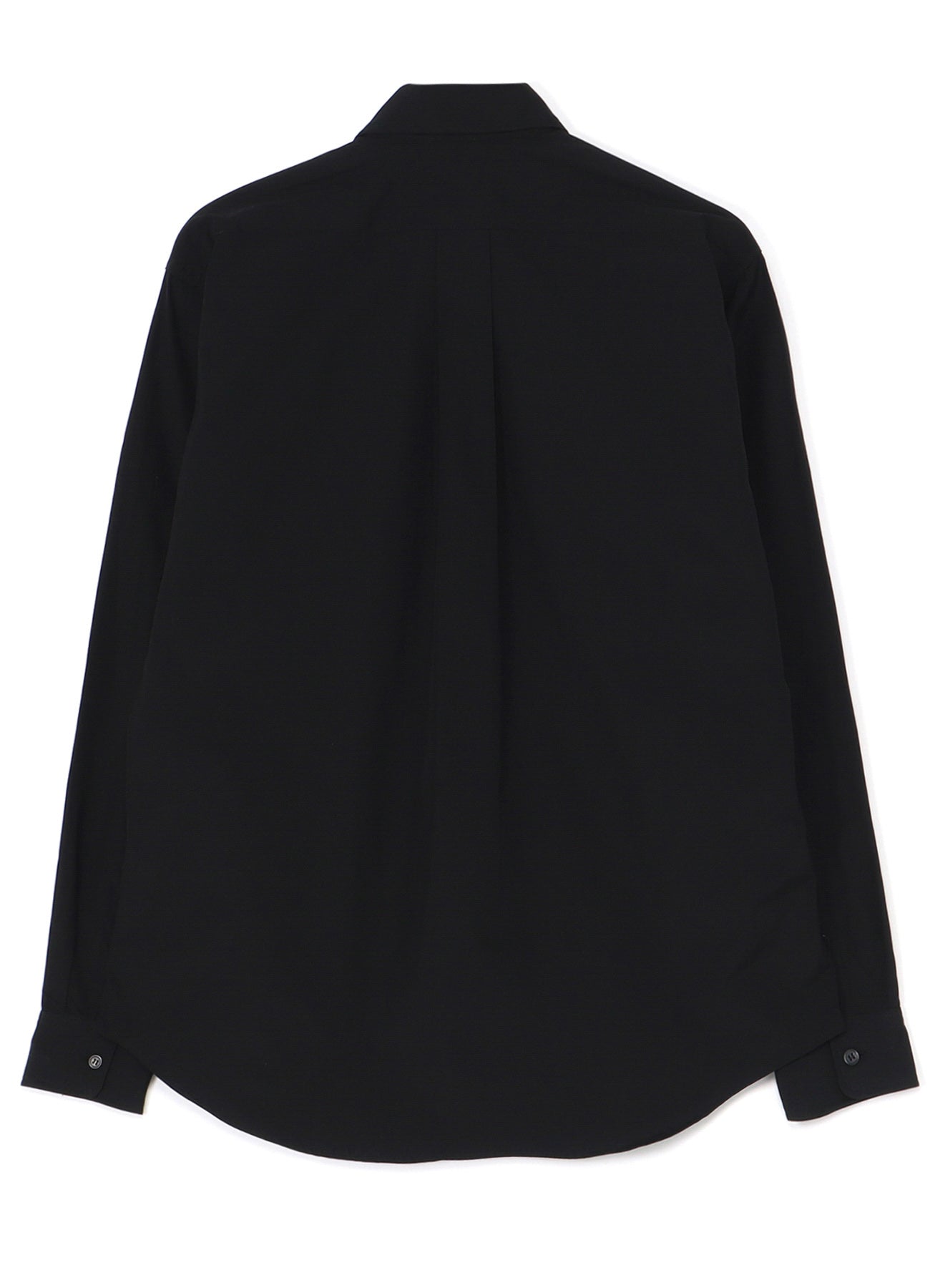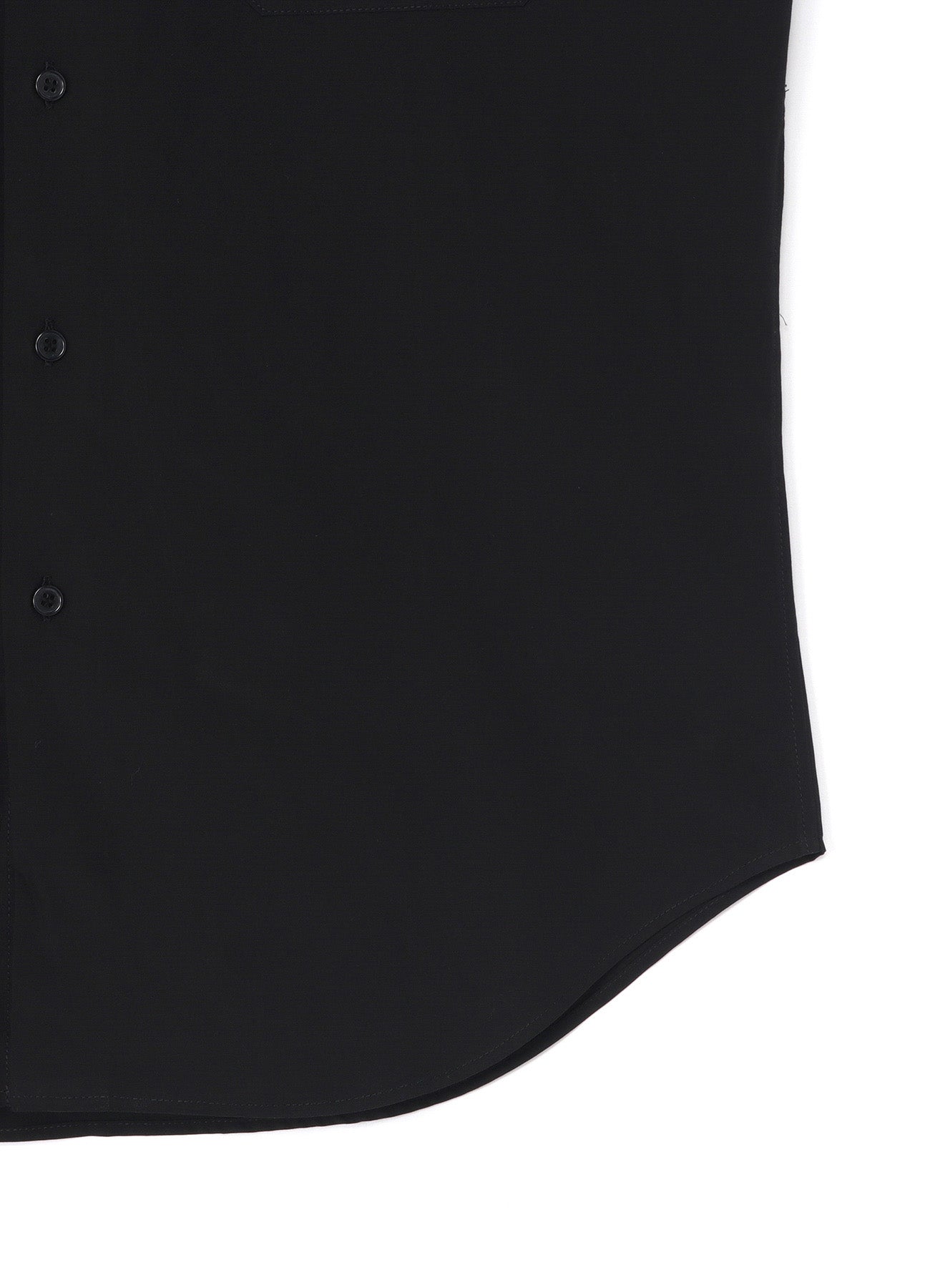 La camisa de popelina característica de COSTUME D’HOMME está diseñada con un cuello pequeño y botones primero y segundo muy juntos, una característica tradicional de las colecciones de Yohji Yamamoto. El diseño incluye consideraciones para un look sin corbata, lo que la hace versátil para entornos casuales.