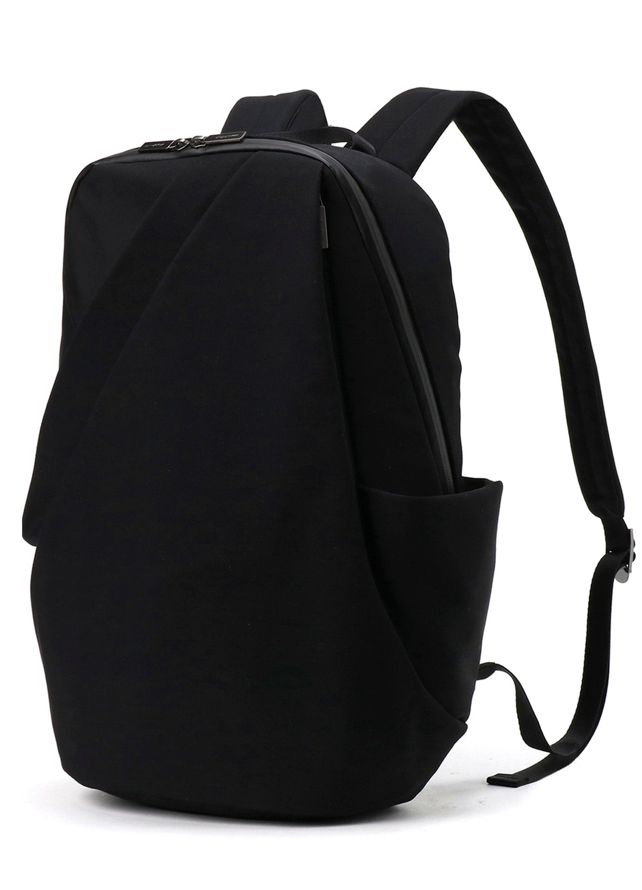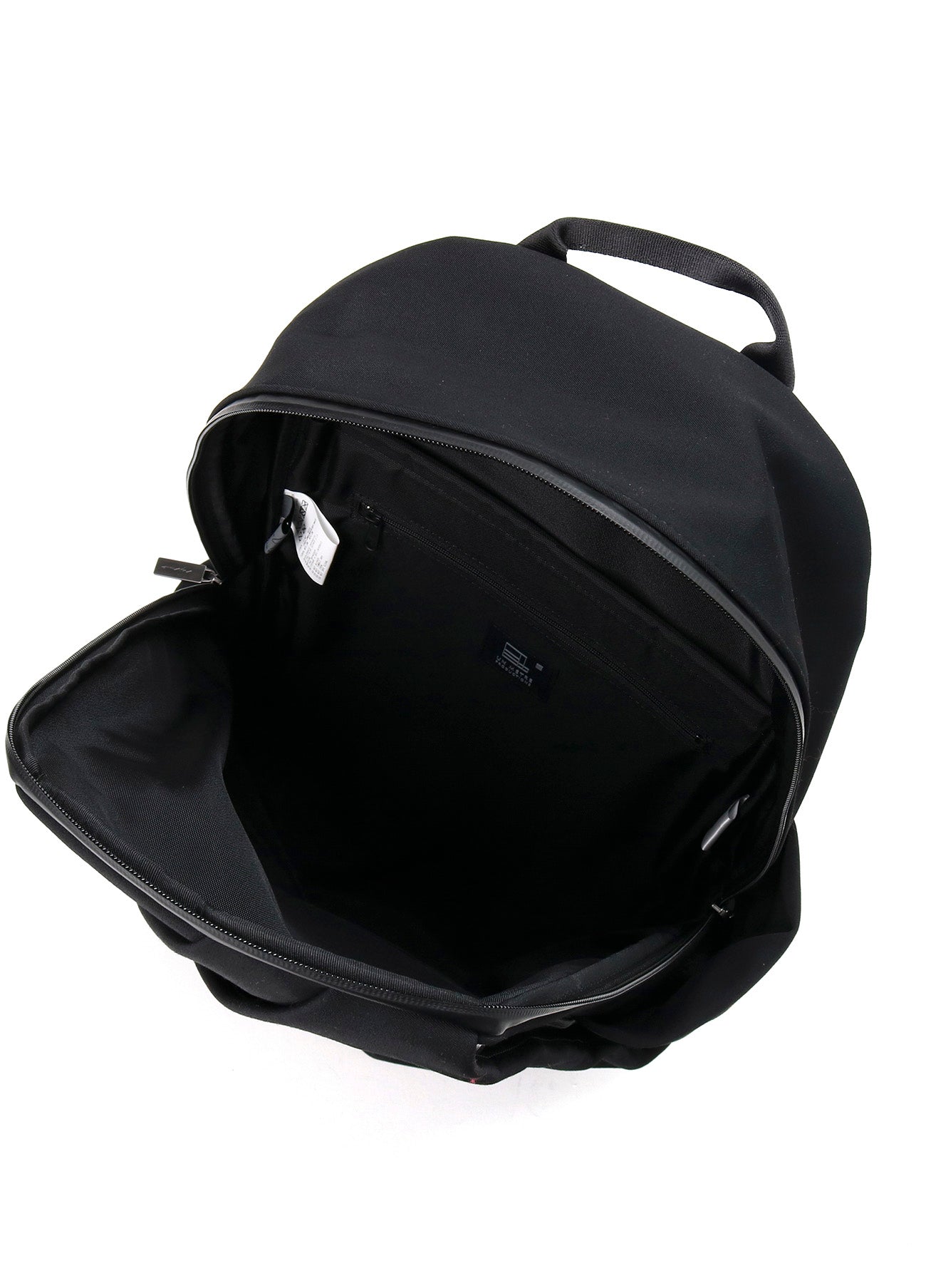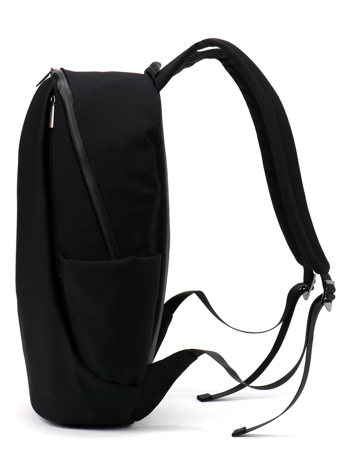 Esta mochila está elaborada con tejido de gabardina de lana pegada, caracterizada por su cuerpo principal con pliegues. Incluye un bolsillo con cremallera y un compartimento para una botella de agua. La parte trasera de la correa que toca el cuerpo está hecha de nylon Cordura para mayor durabilidad.