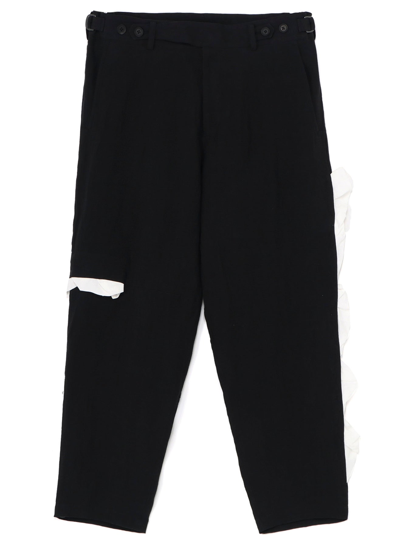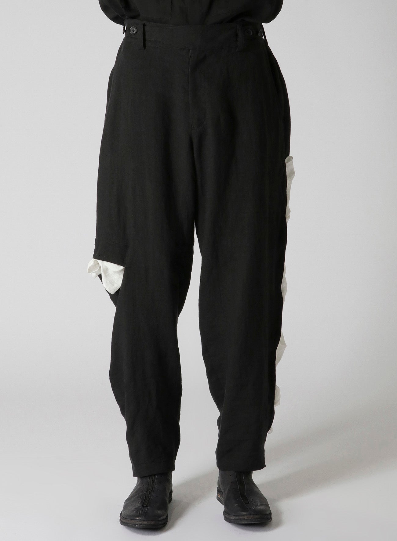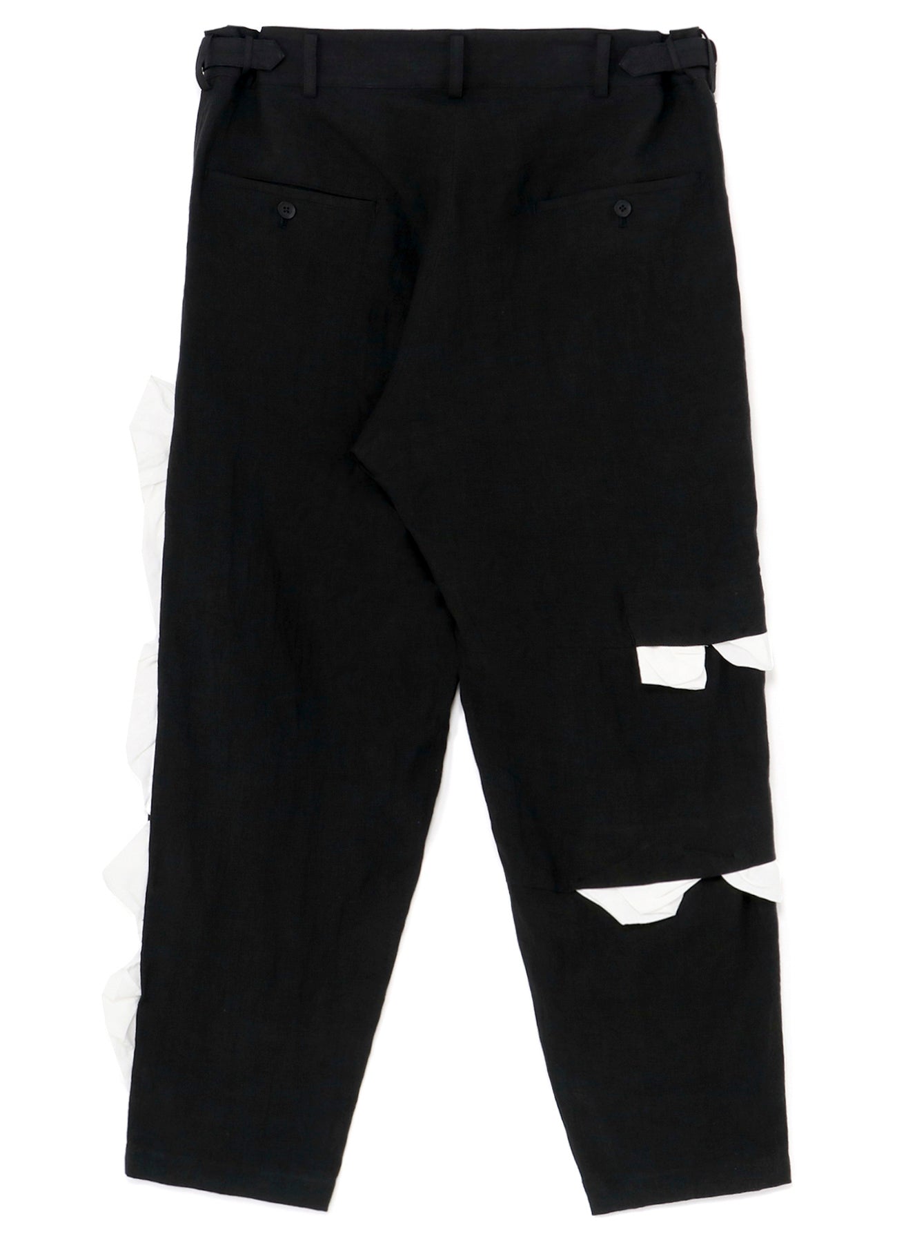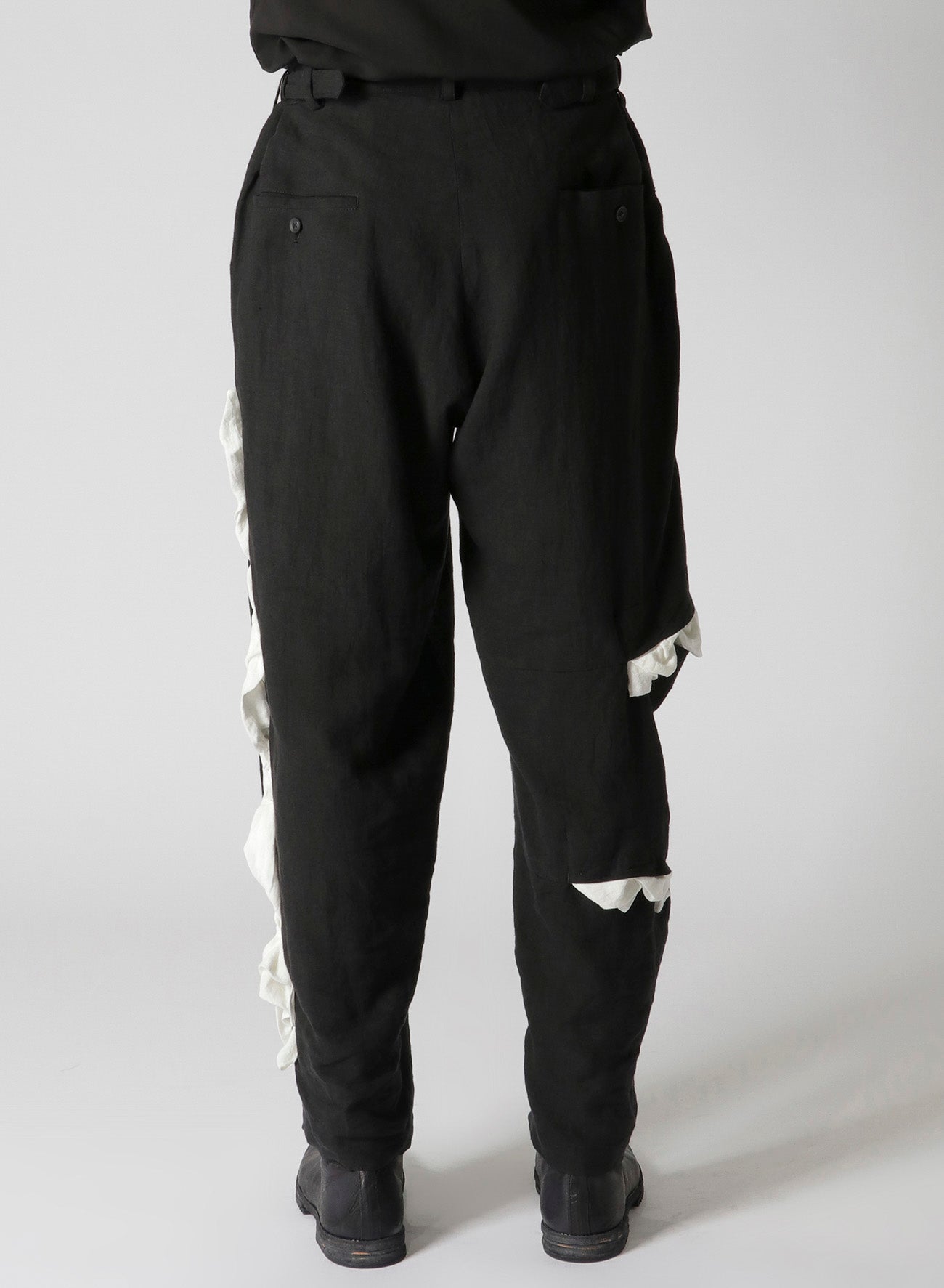 Pantalones griegos blancos con volantes de lino y lona, presentados en LOOK28.