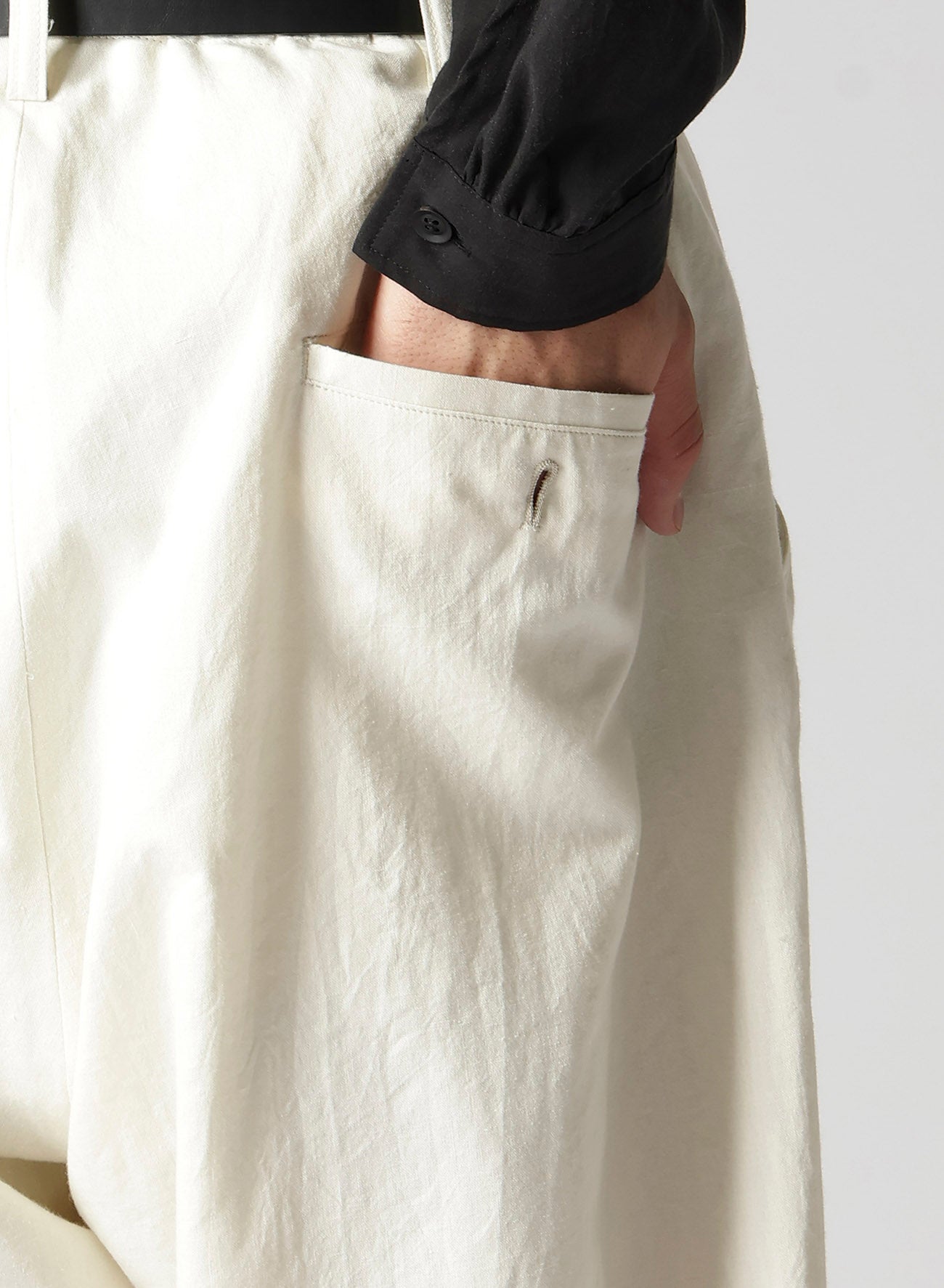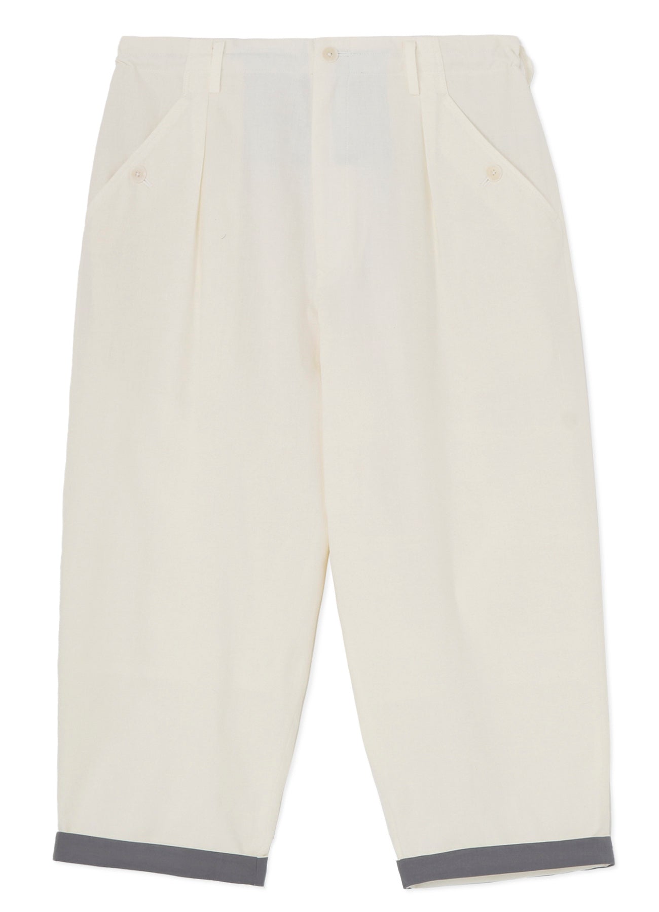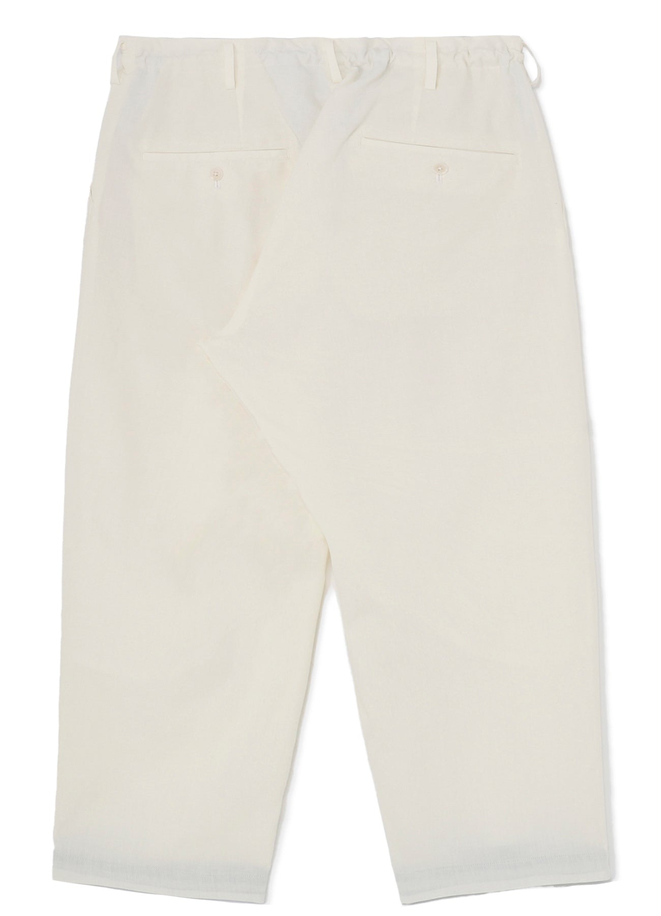 Este artículo es un par de pantalones con plisados, presentado en LOOK18, fabricados con algodón Khadi sin blanquear. Tejido a mano con hilo hilado en ruedas de hilar tradicionales en India, el material ofrece excelente absorción de humedad y propiedades de secado rápido gracias a su hilo suavemente torcido.