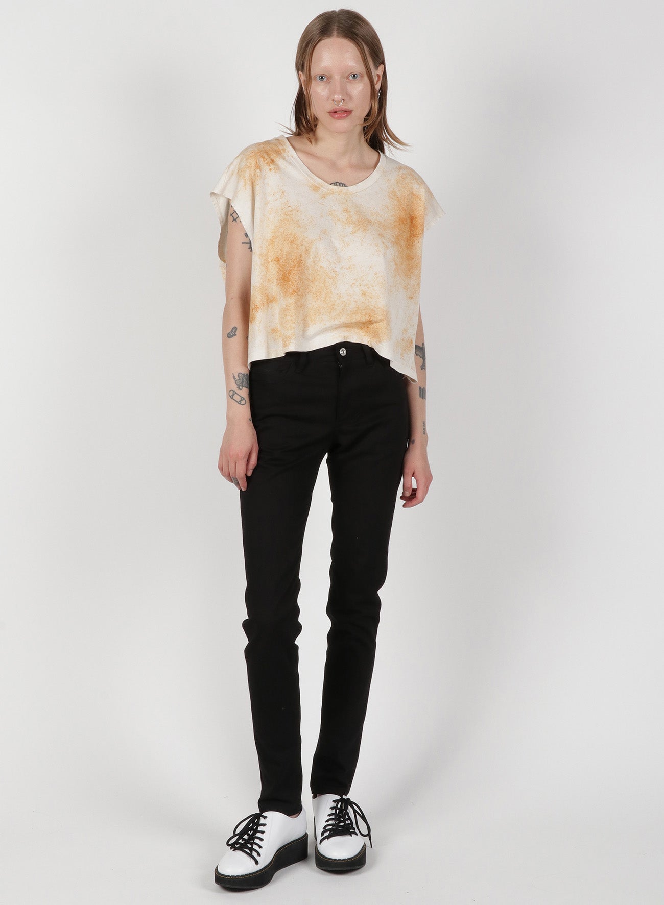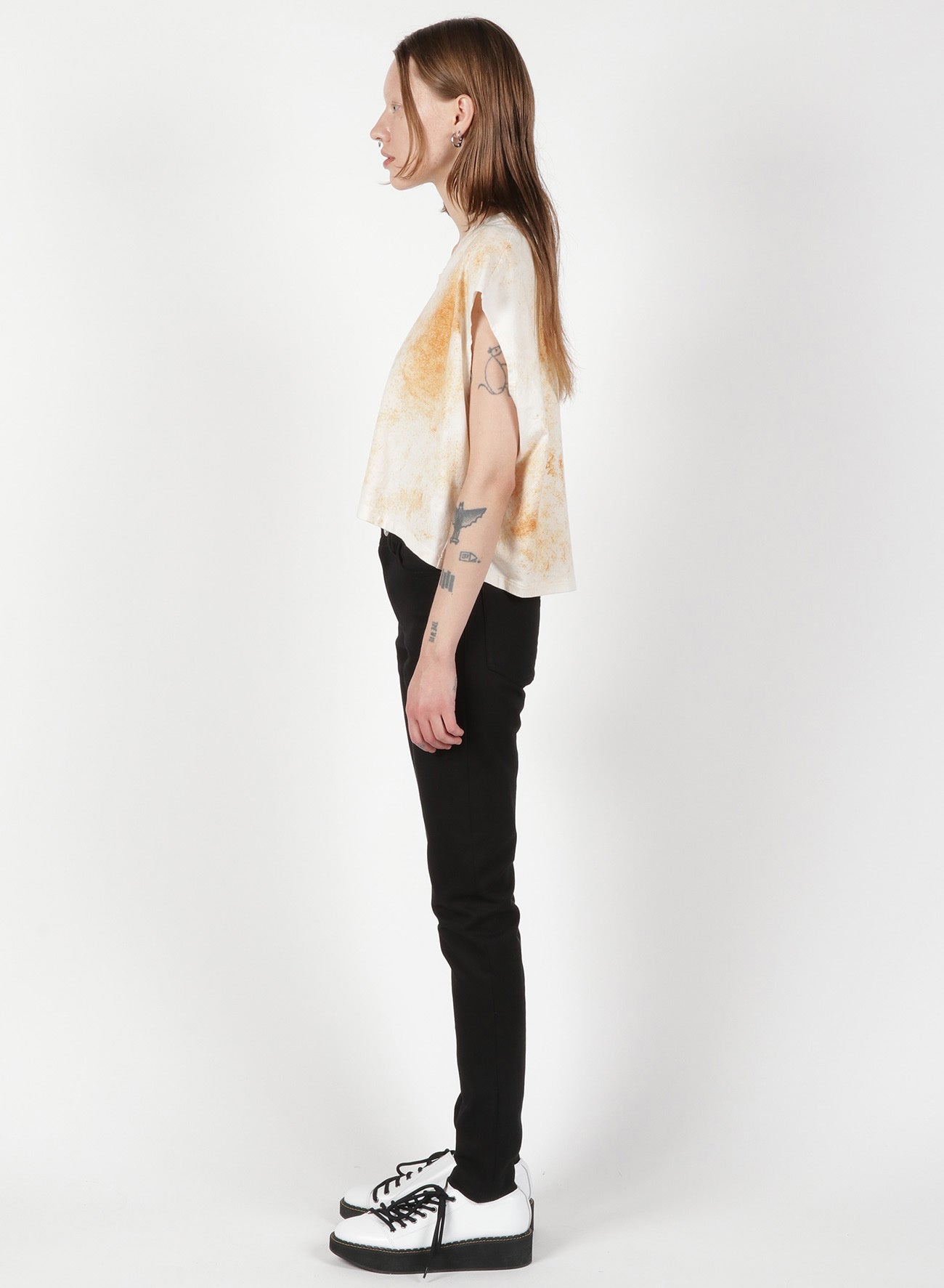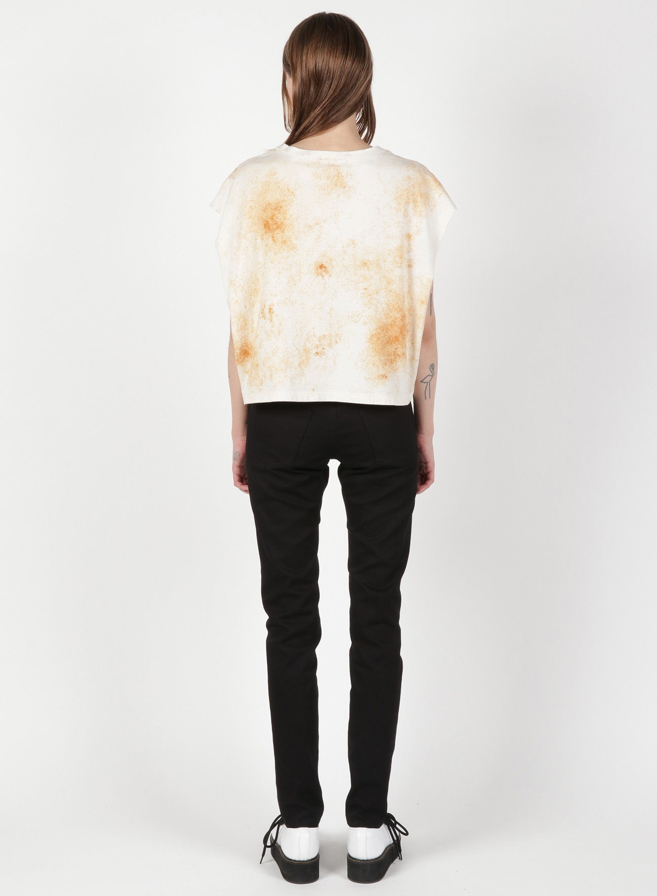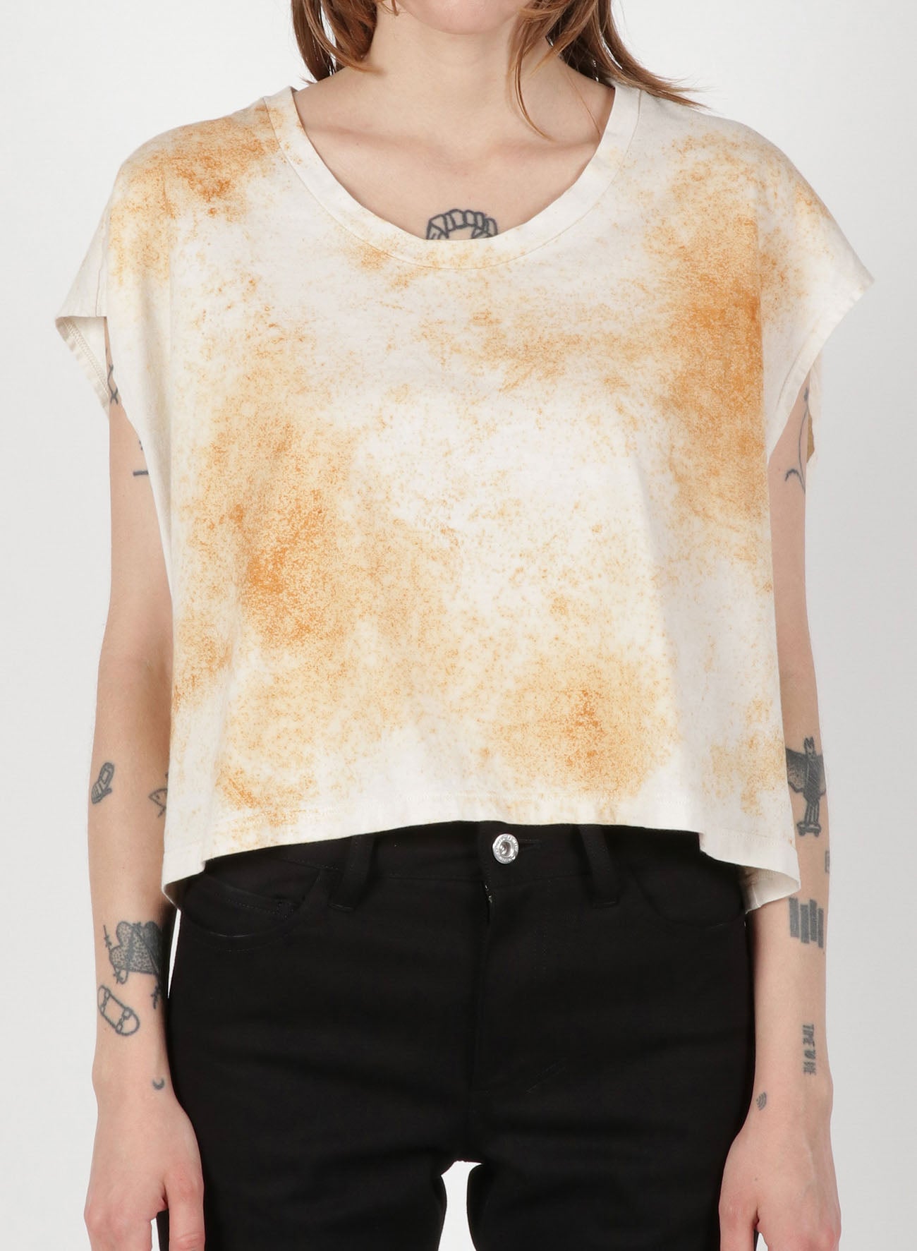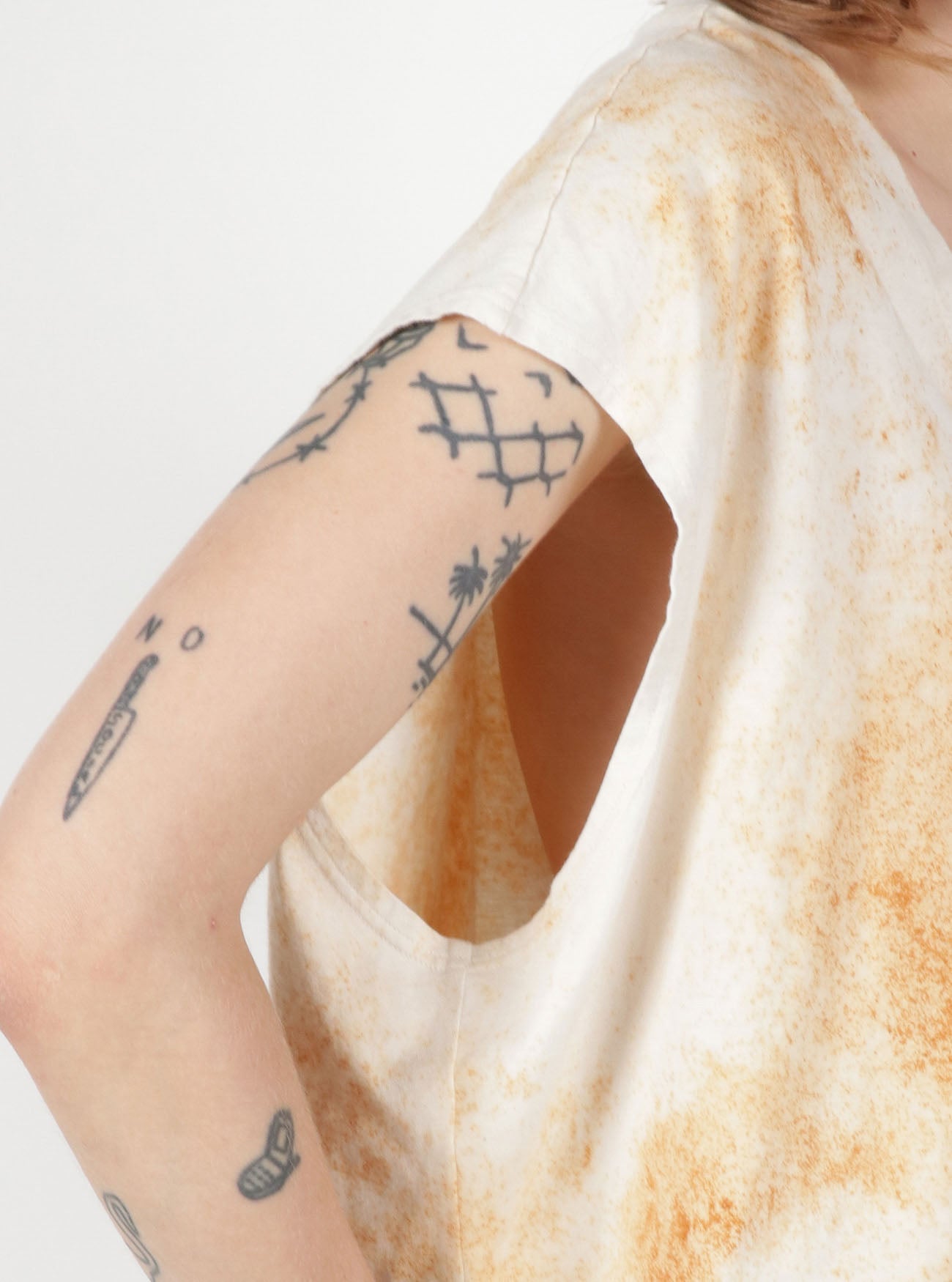 Una técnica de oxidación especial crea patrones y colores únicos para un aspecto genuinamente vintage y envejecido. Las mangas tipo capa cubren los hombros, y el corte holgado y la longitud corta ofrecen un estilo versátil. Tenga en cuenta que, debido al proceso especial, los patrones y texturas variarán.