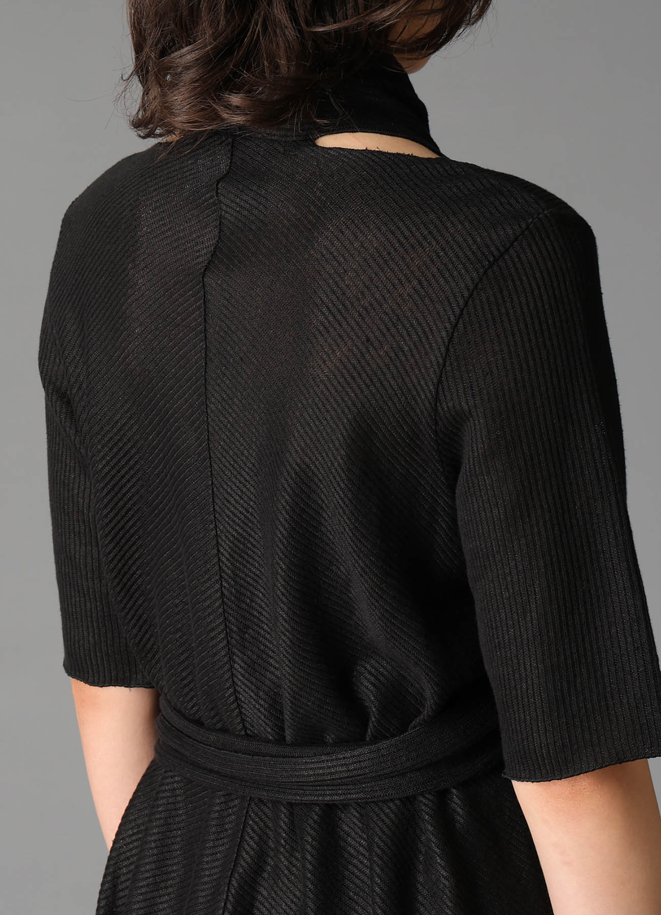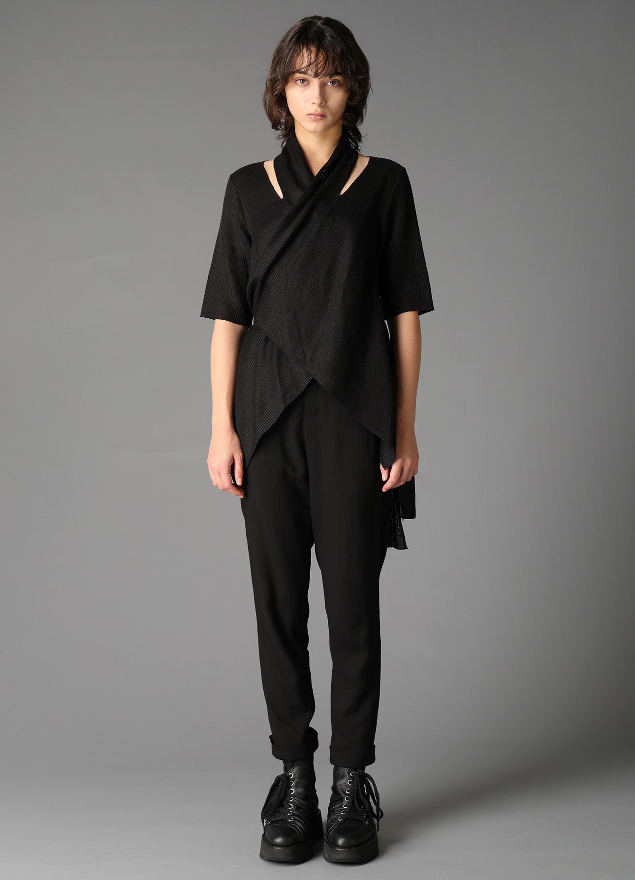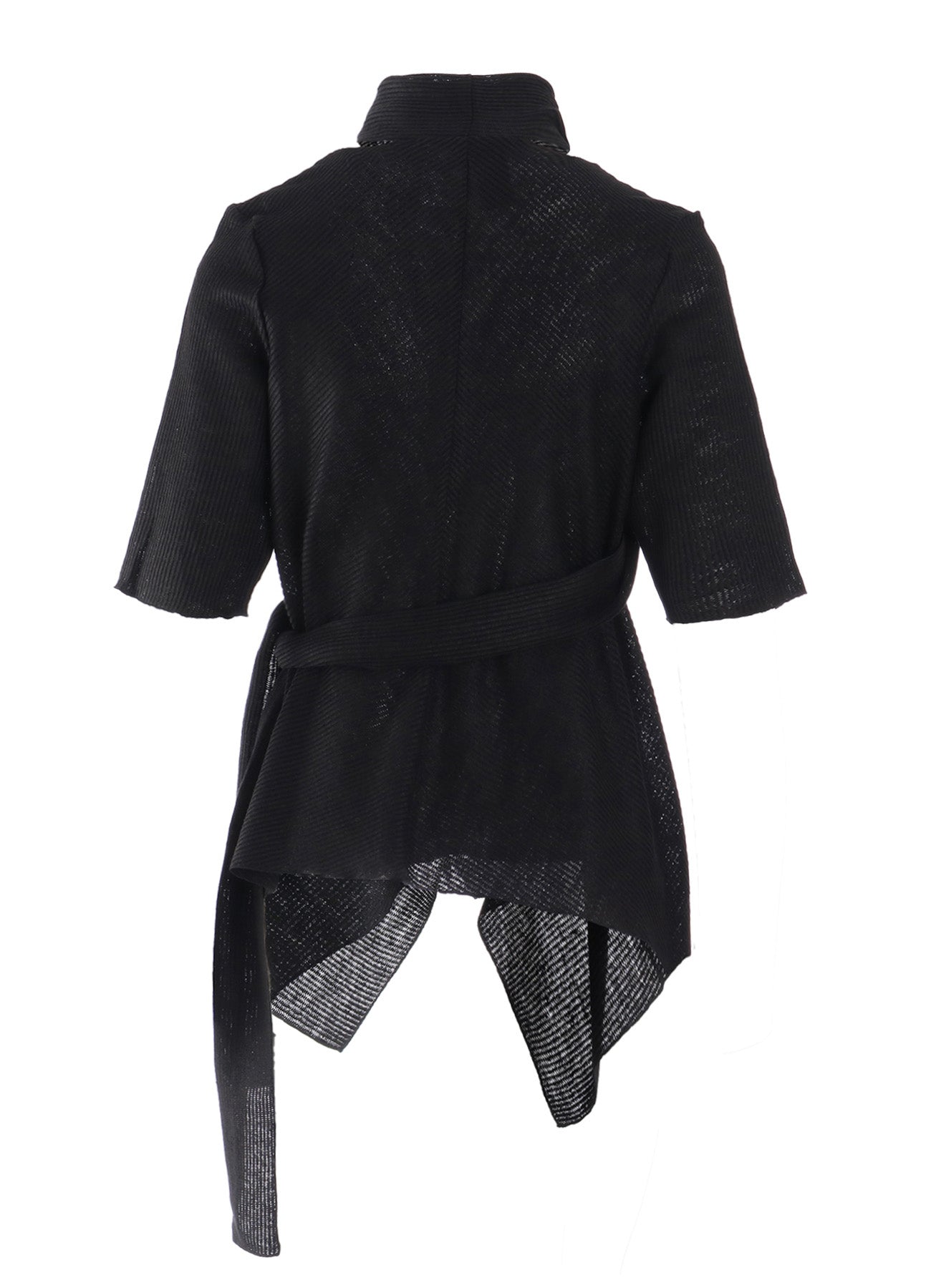 DROP-STITCH STRIPES SCARF DETAIL SHORT CARDIGAN