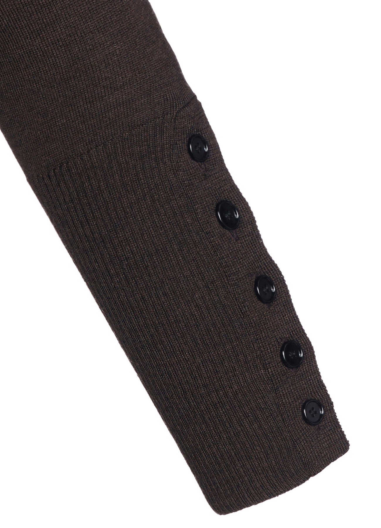 Este tejido de punto premium y versátil está elaborado con lana fina Merino de alta calidad. Su diseño único permite diversas siluetas y estilos en capas al ajustar los botones en las mangas y los lados.