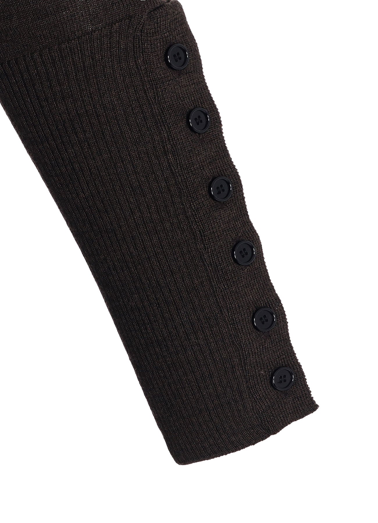 Este producto es un tejido de alta calidad hecho de fina lana Merino. Es lavable y tiene botones en los puños, el cuello y los lados que se pueden desabrochar para crear varios estilos y siluetas en capas.