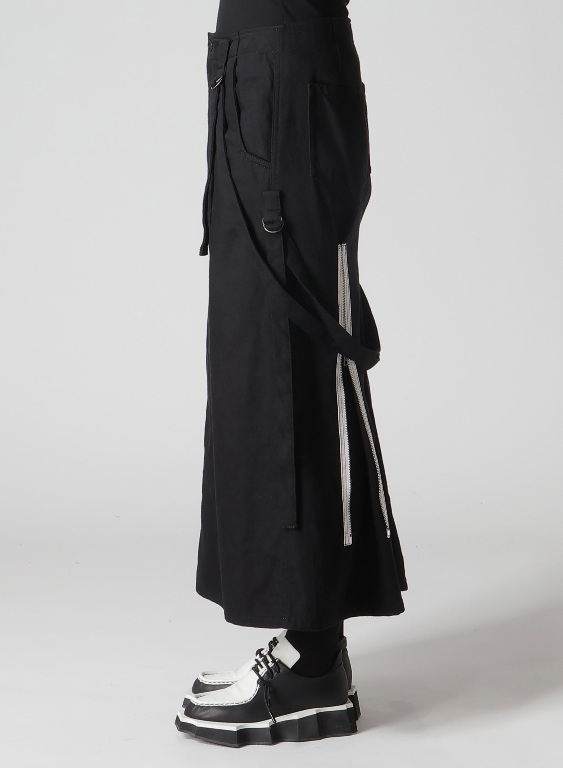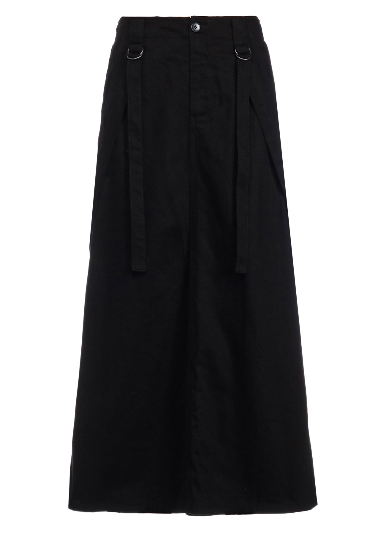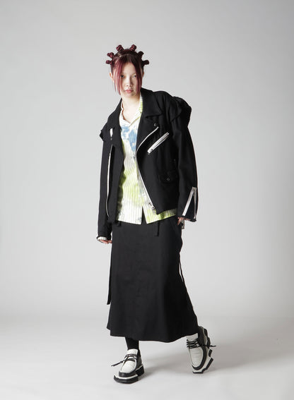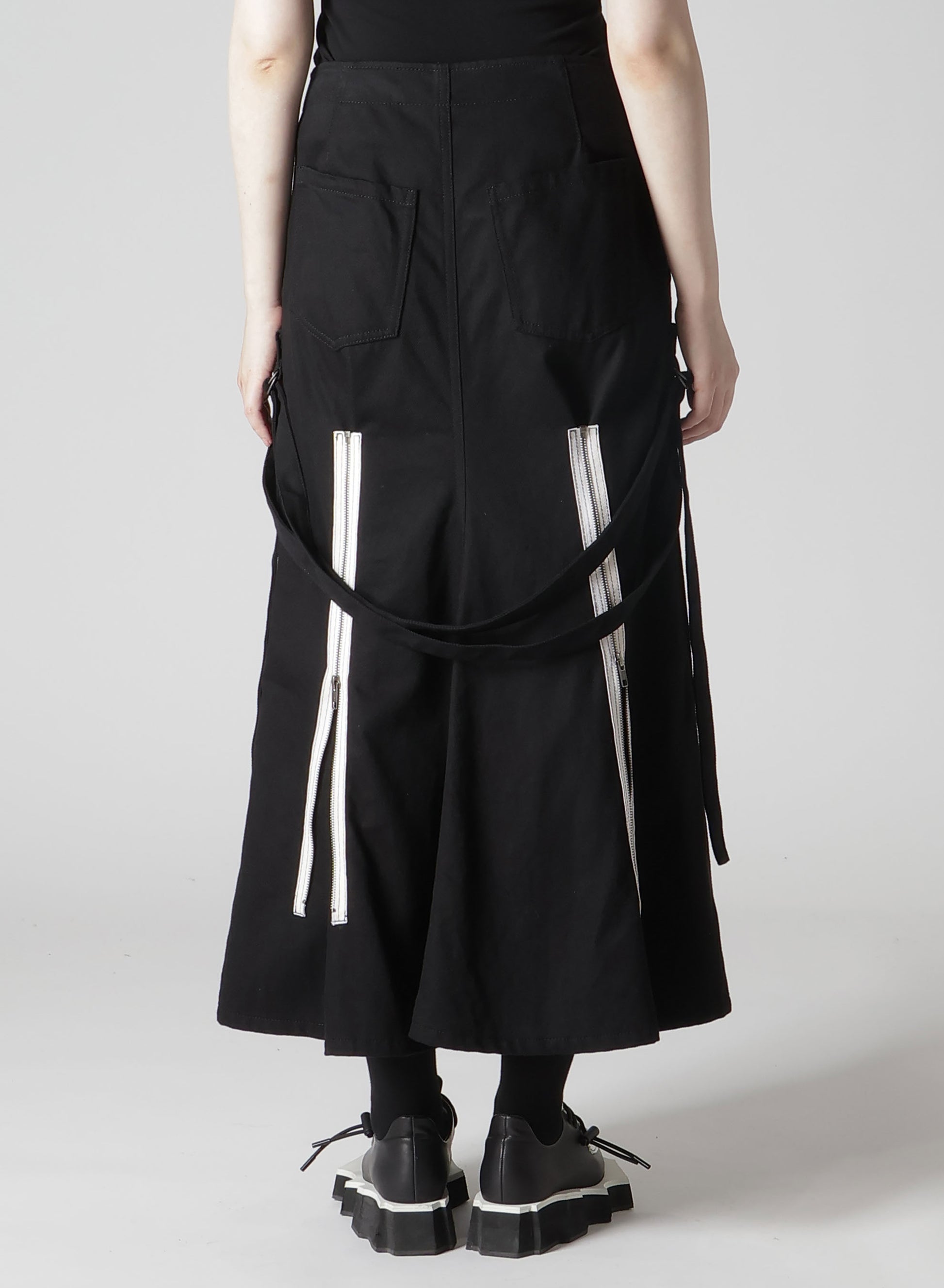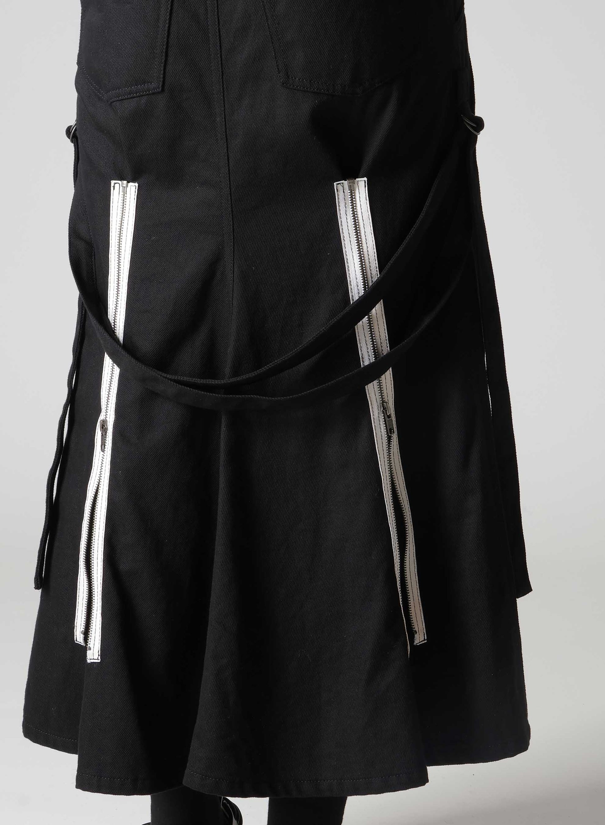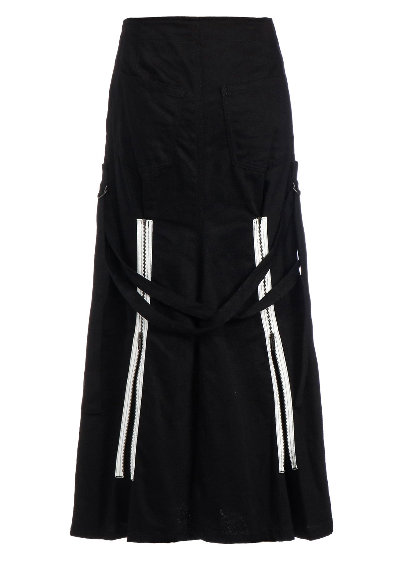 Tejido de algodón lavado suave con una textura gruesa para un uso cómodo. Elaborado con atención al detalle, presenta un aspecto distintivo similar a un trapo con costuras expuestas que se deshilachan de forma natural con el tiempo. El material negro profundo se contrasta con una llamativa cremallera blanca. La falda tiene una silueta acampanada para un toque casual pero femenino.