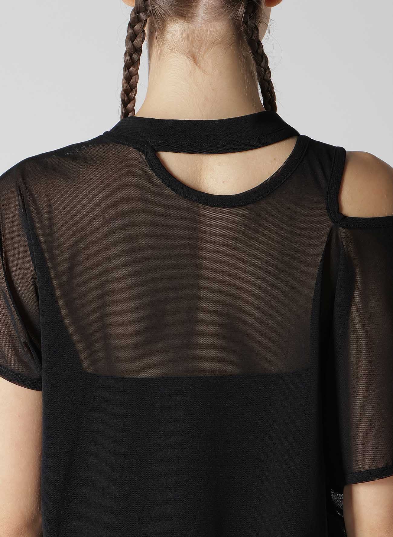 TULLE SLIT FRENCH SLEEVE T-SHIRT