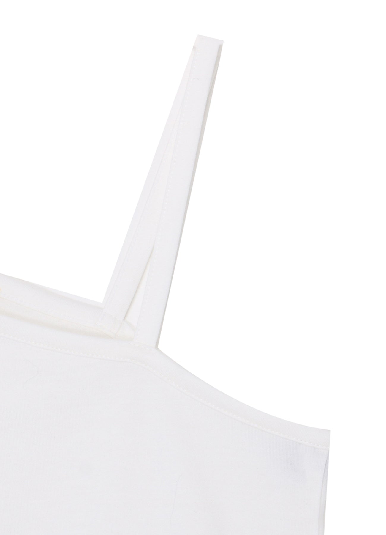 Confeccionado con algodón de fibra extra larga, esta tela de punto liso se caracteriza por su textura suave. El hilo de algodón tiene un mínimo de pelusa para un acabado limpio. El camisole destaca por su diseño único de tirantes. Combínalo debajo de un top de tul para realzar su estilo.