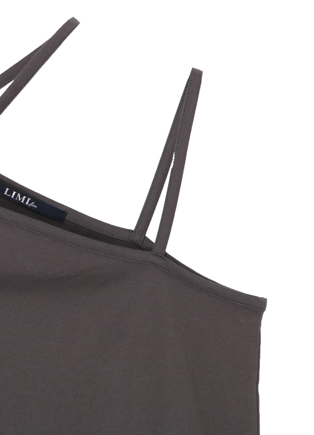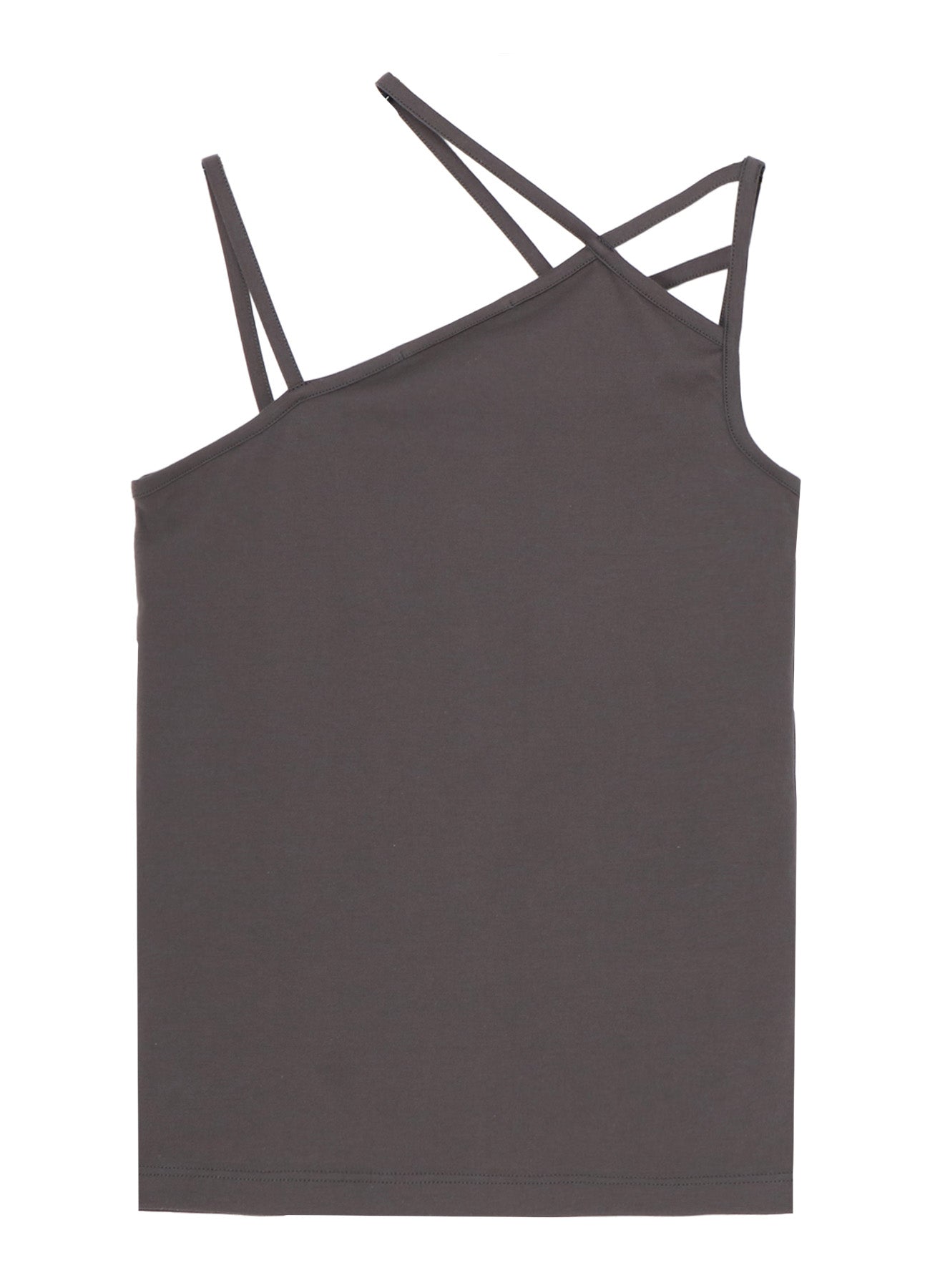 Confeccionada con algodón extra-largo seleccionado, esta tela de punto liso destaca por su textura suave. El hilo de algodón tiene poco vello para un acabado limpio. La camisola se distingue por su diseño único de tirantes. Combínala con un top de tul para realzar su estilo.