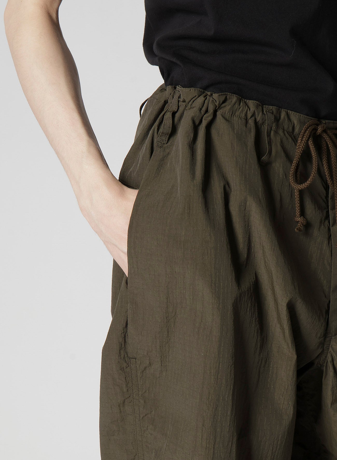 NYLON RIPSTOP SIDE-TUCK DRAWSTRING PANTS