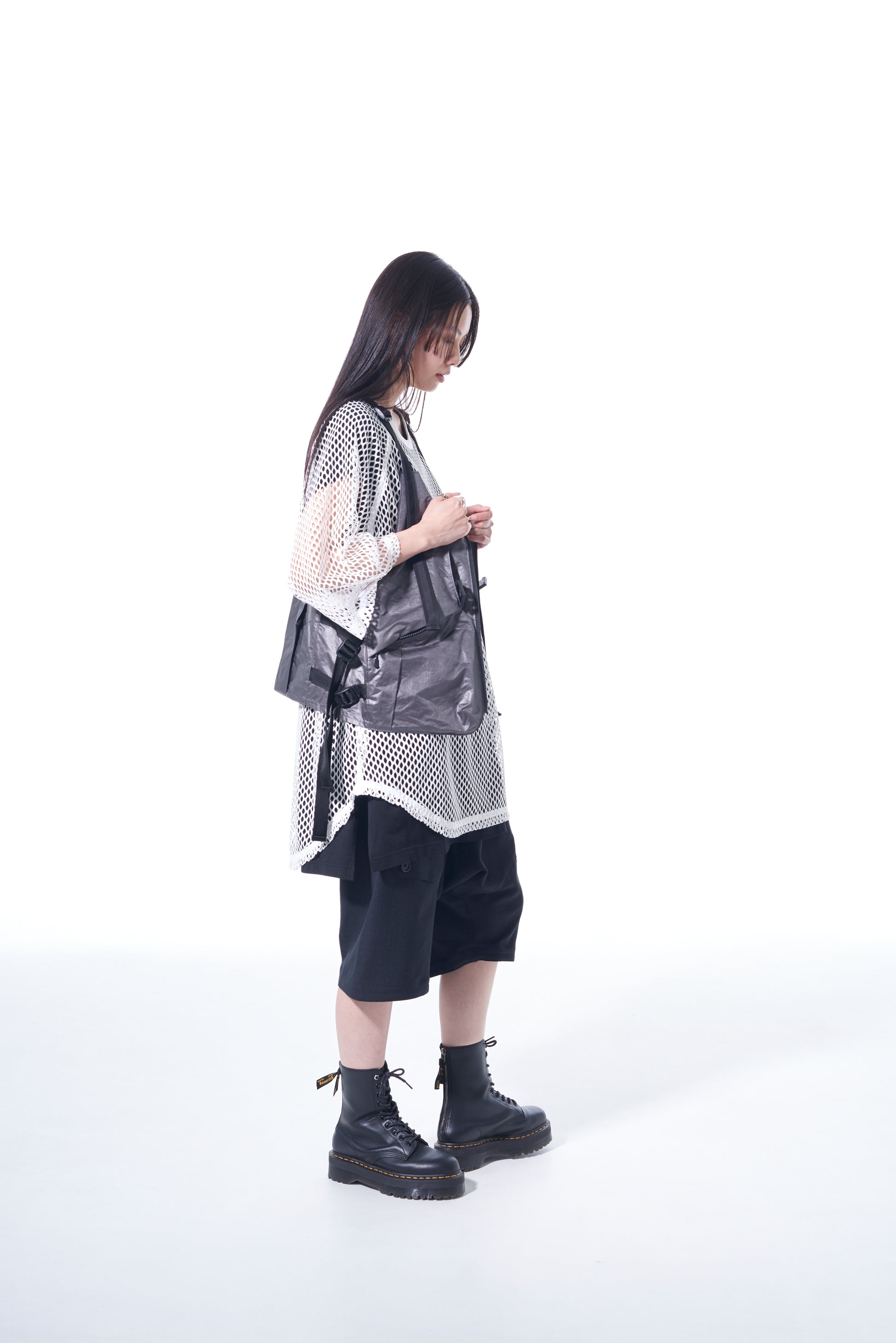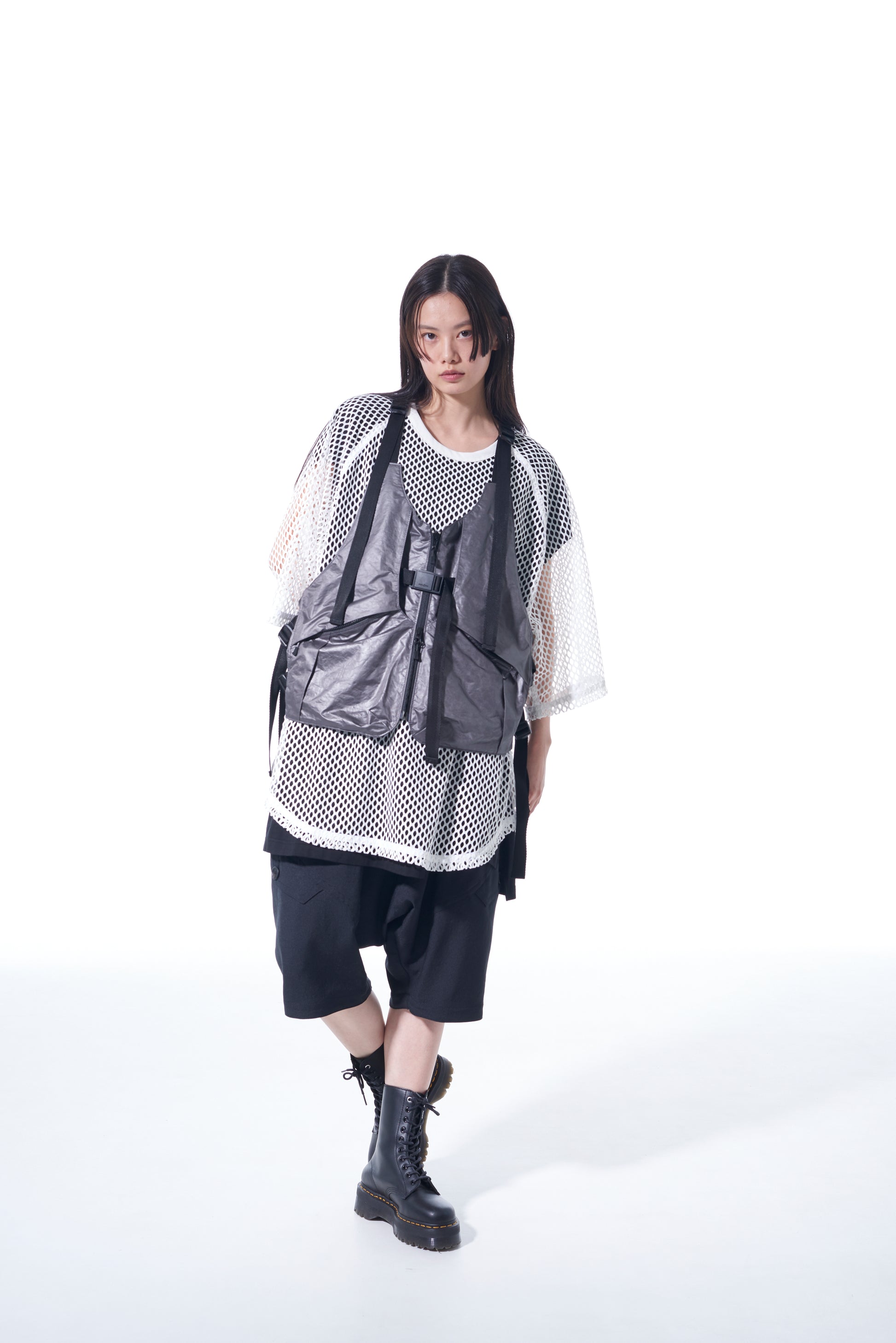 El chaleco TEC, inspirado en el equipo de pesca y caza, cuenta con una hebilla Fid lock en el pecho, hombros y lados ajustables, y correas extendidas que enfatizan una sensación activa. Tiene múltiples bolsillos para diversas herramientas, finamente compartimentados para mantener tus manos libres. Su único color gris inspirado en el ejército alemán permite un estilo versátil sobre prendas exteriores, blusas y camisas.