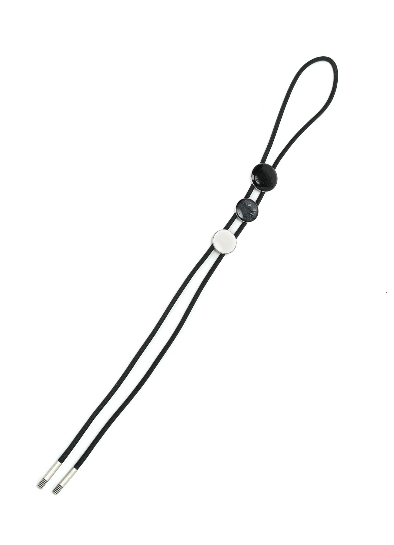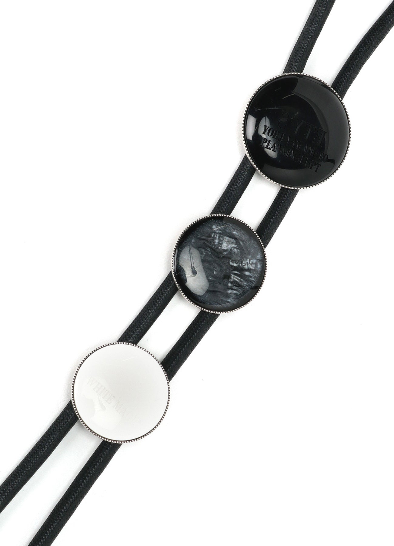 Este versátil lazo de motivo de tres cadenas se puede usar con camisas, prendas de punto y tops. Con los logos en negro de S'YTE y blanco de WHITE MAGIC, estos cierres desmontables crean un equilibrio único en tono gris. Ajustable en estilo y longitud, es adecuado para todo el año en diversos estados de ánimo de moda, desde elegante hasta casual.