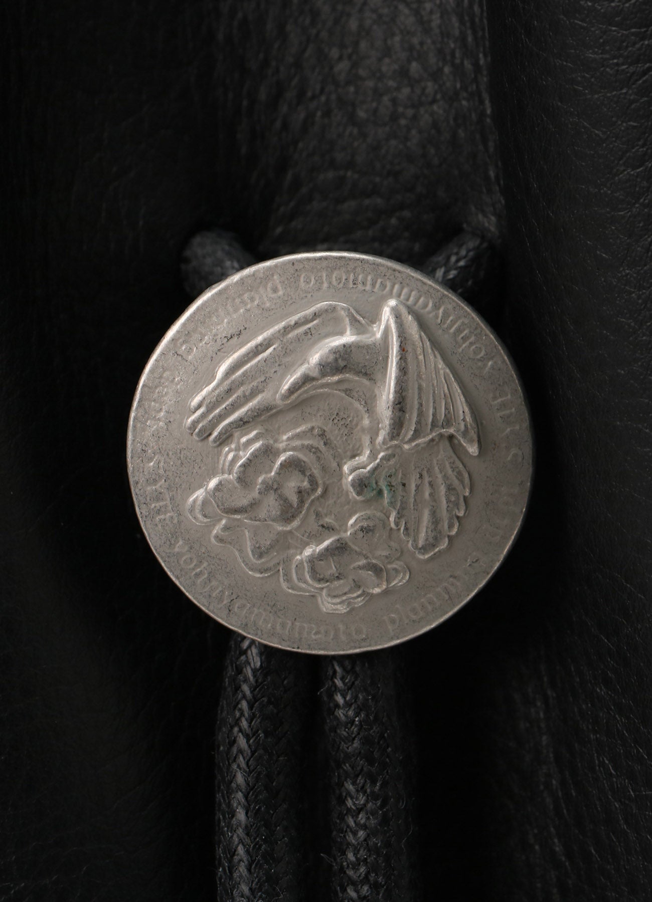 Este renovado bolso de cordón de S’YTE mantiene su conveniencia de accesorio, ofreciendo uso como bandolera o en el cuello. Ahora en cuero, irradia lujo y muestra un envejecimiento único. Presenta un concho central con el logo de la marca y motivos, embellecido con baño de plata y un acabado específico para reducir arañazos.