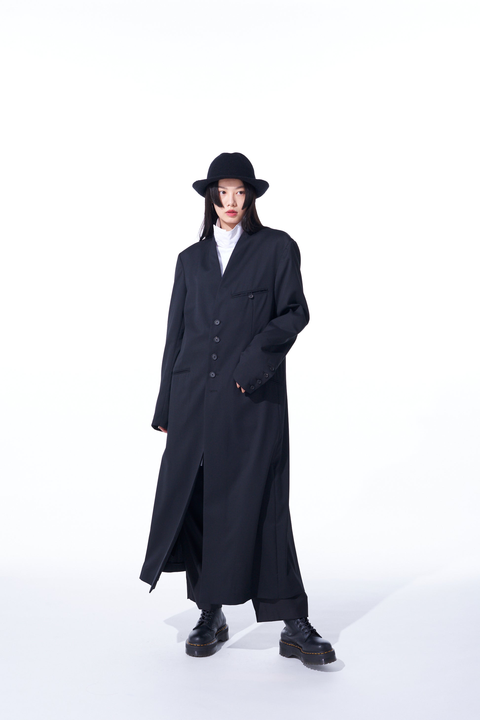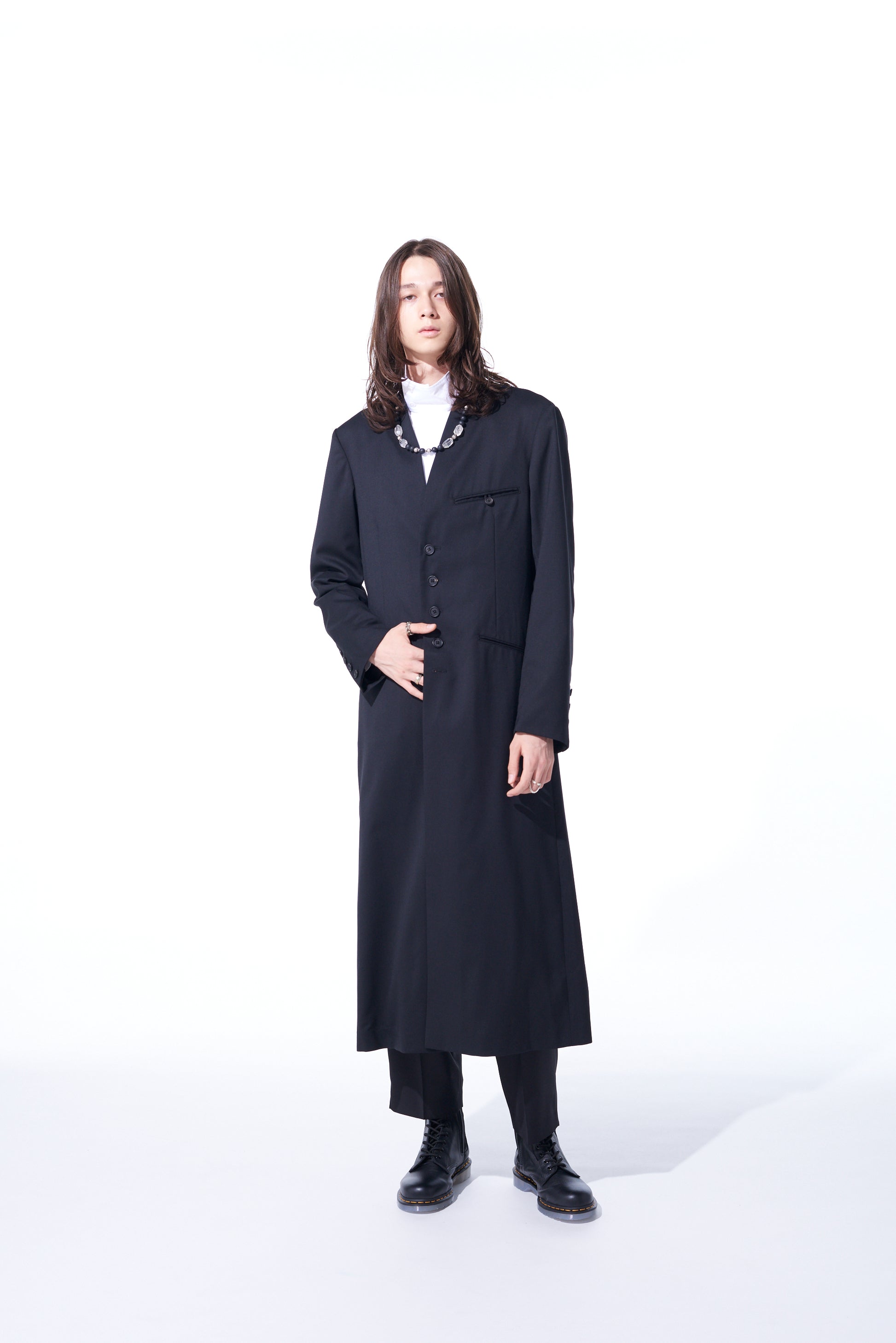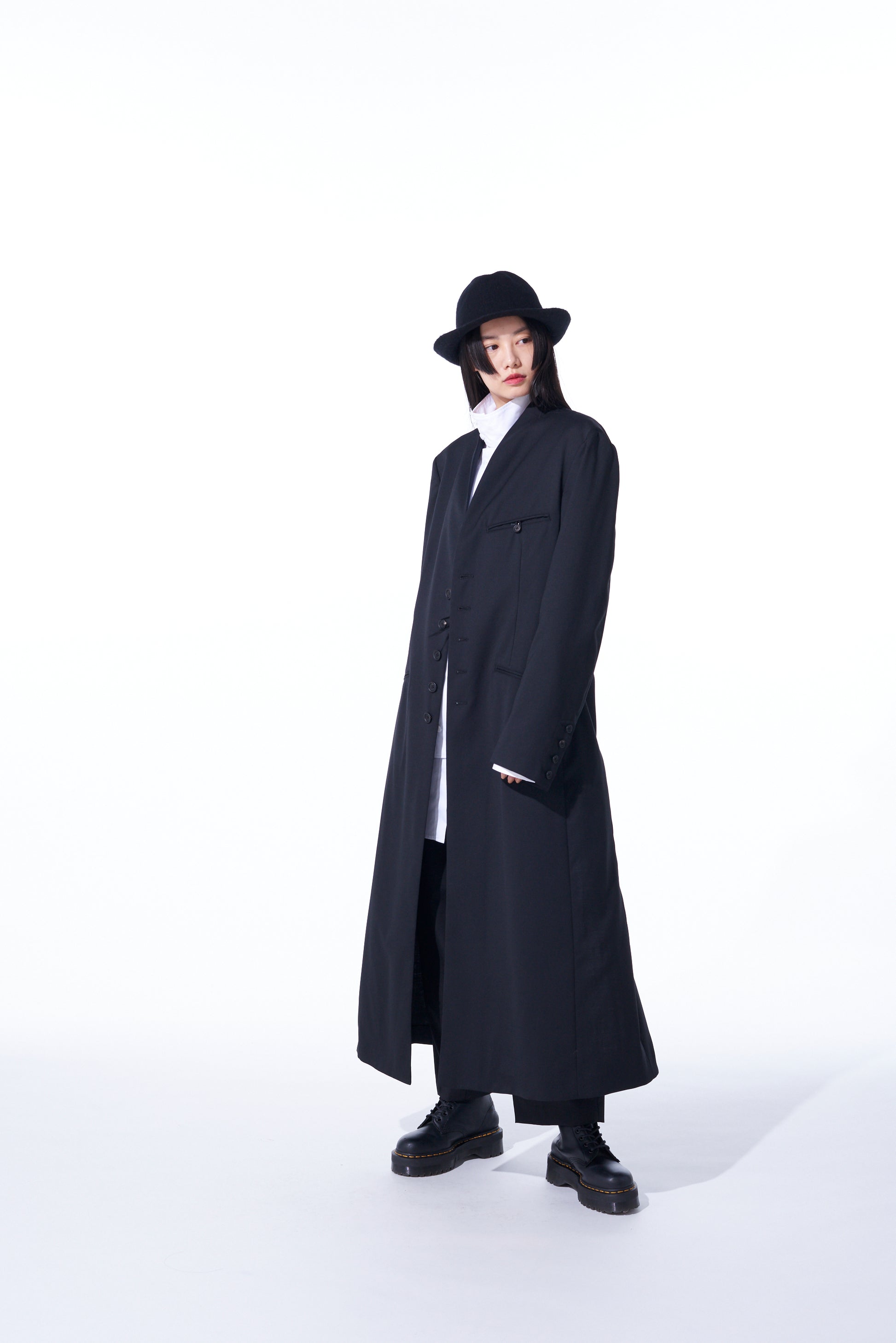 T/W GABARDINE COLLARLESS 5-BUTTON LONG JACKET