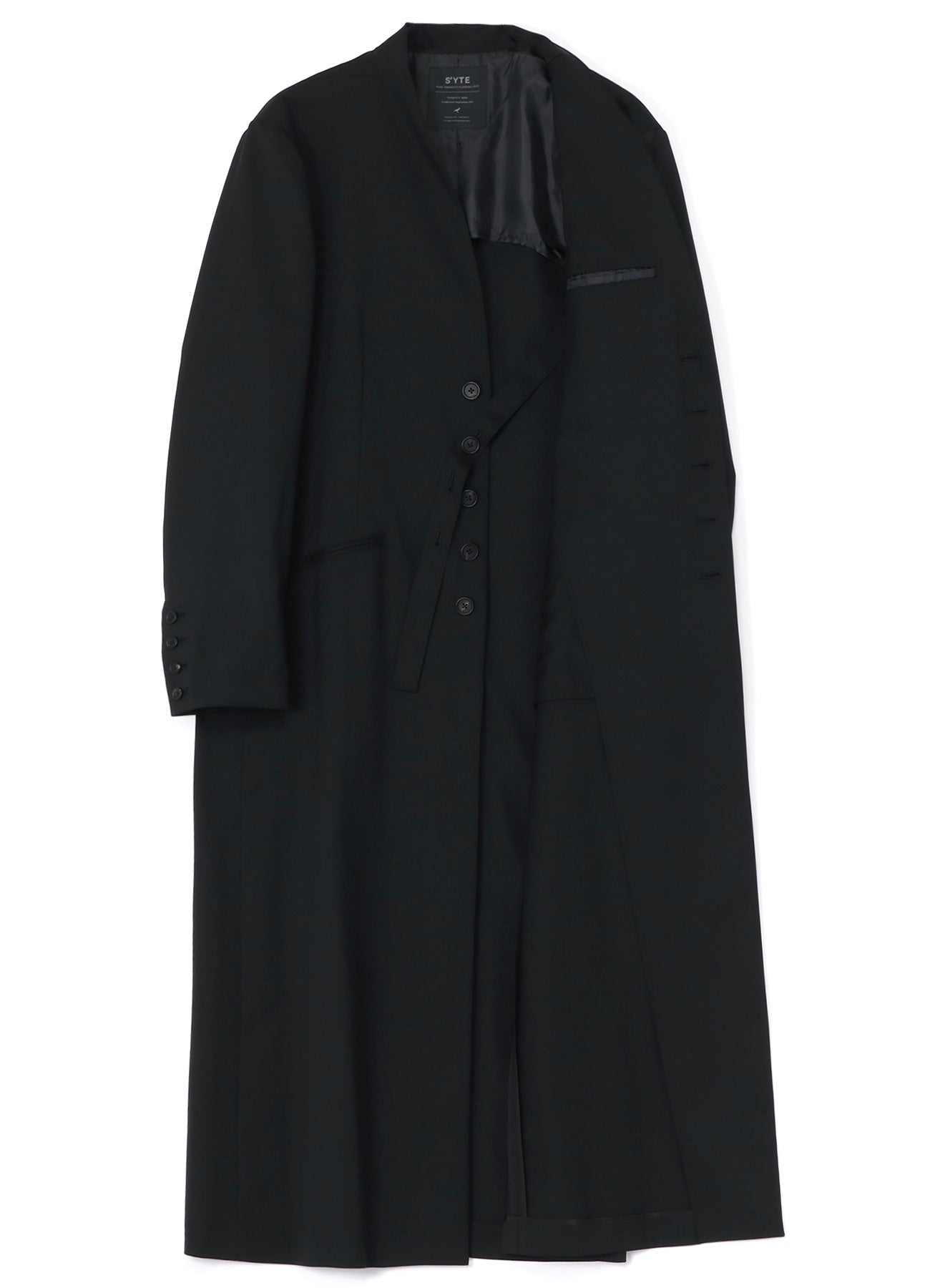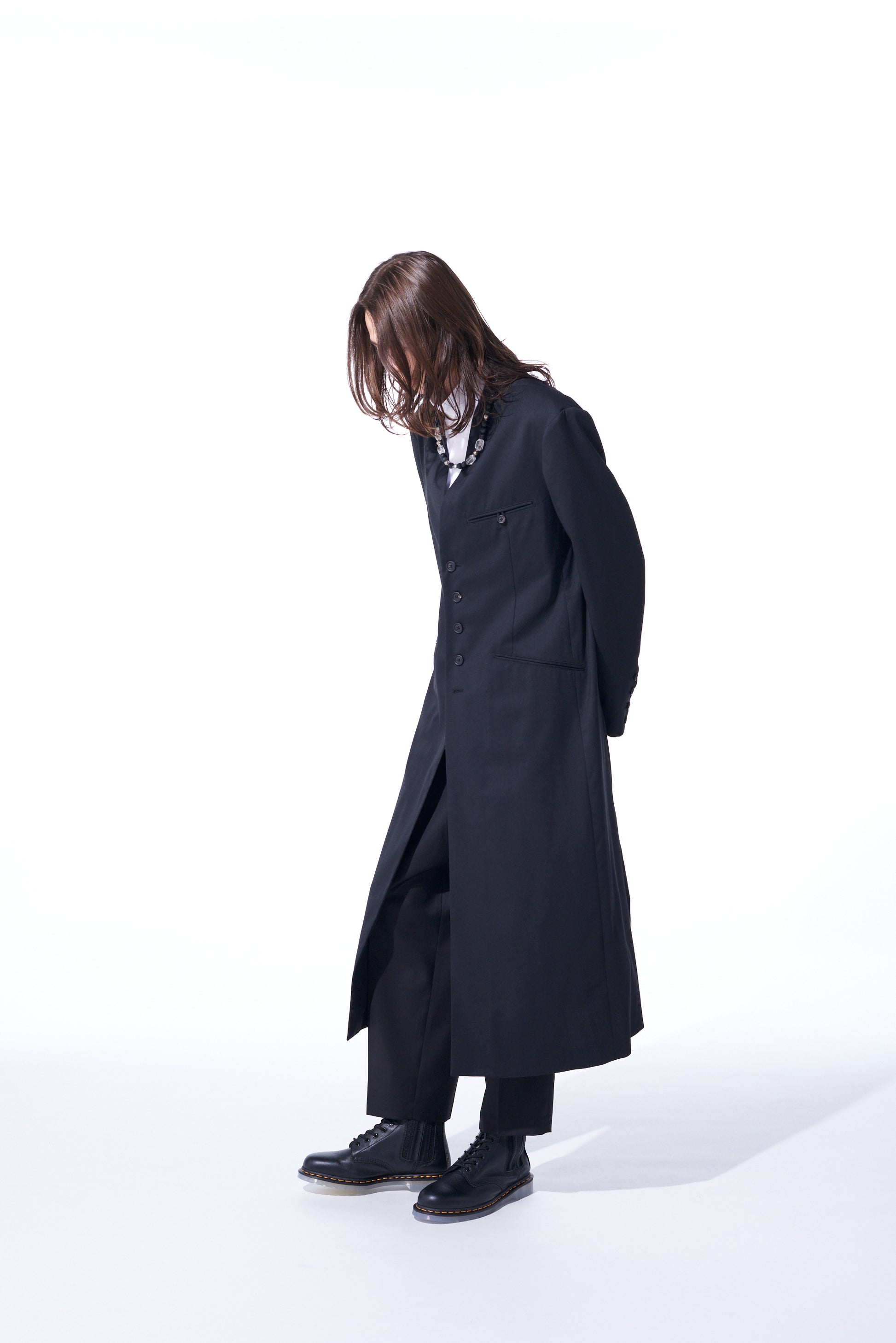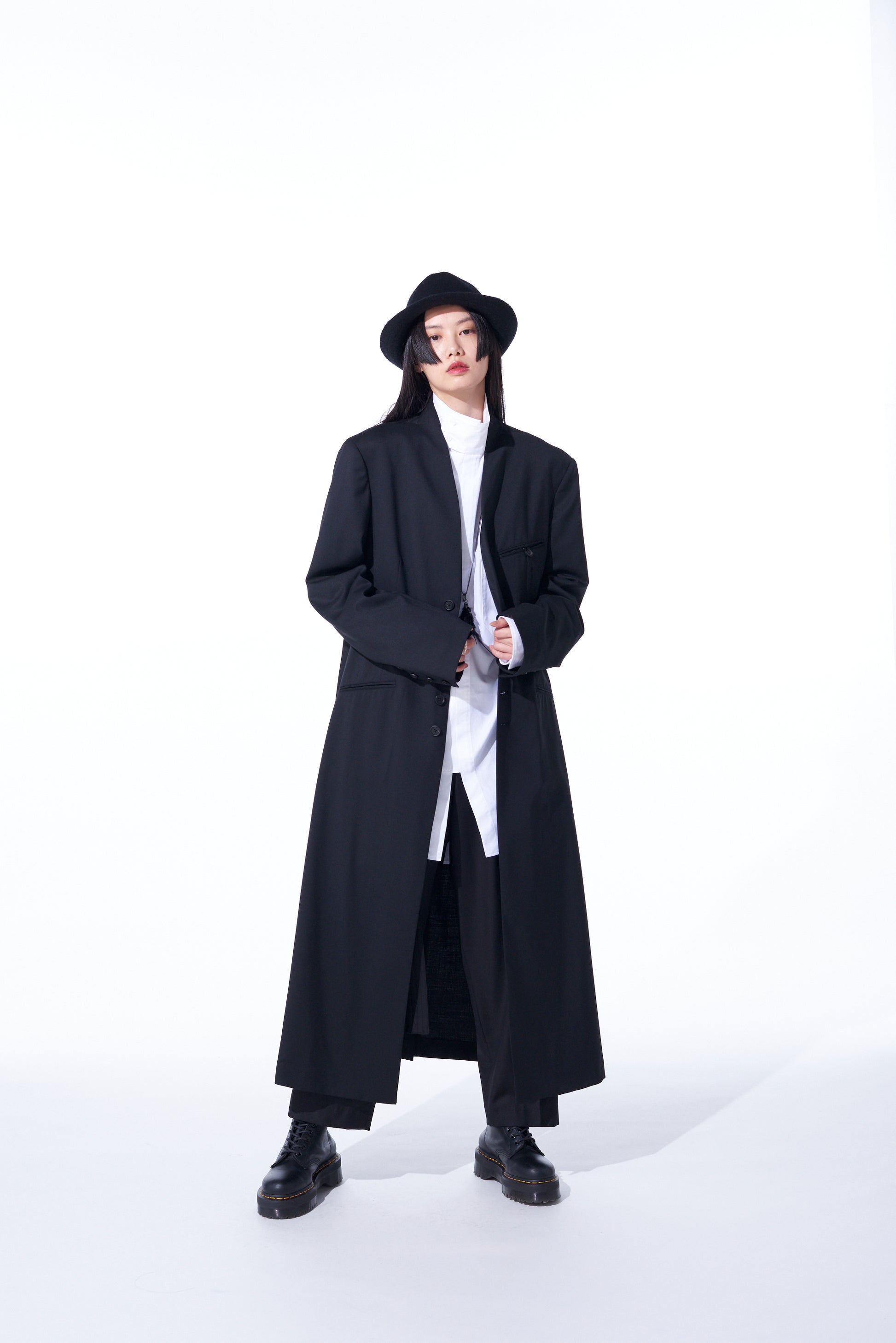 T/W GABARDINE COLLARLESS 5-BUTTON LONG JACKET
