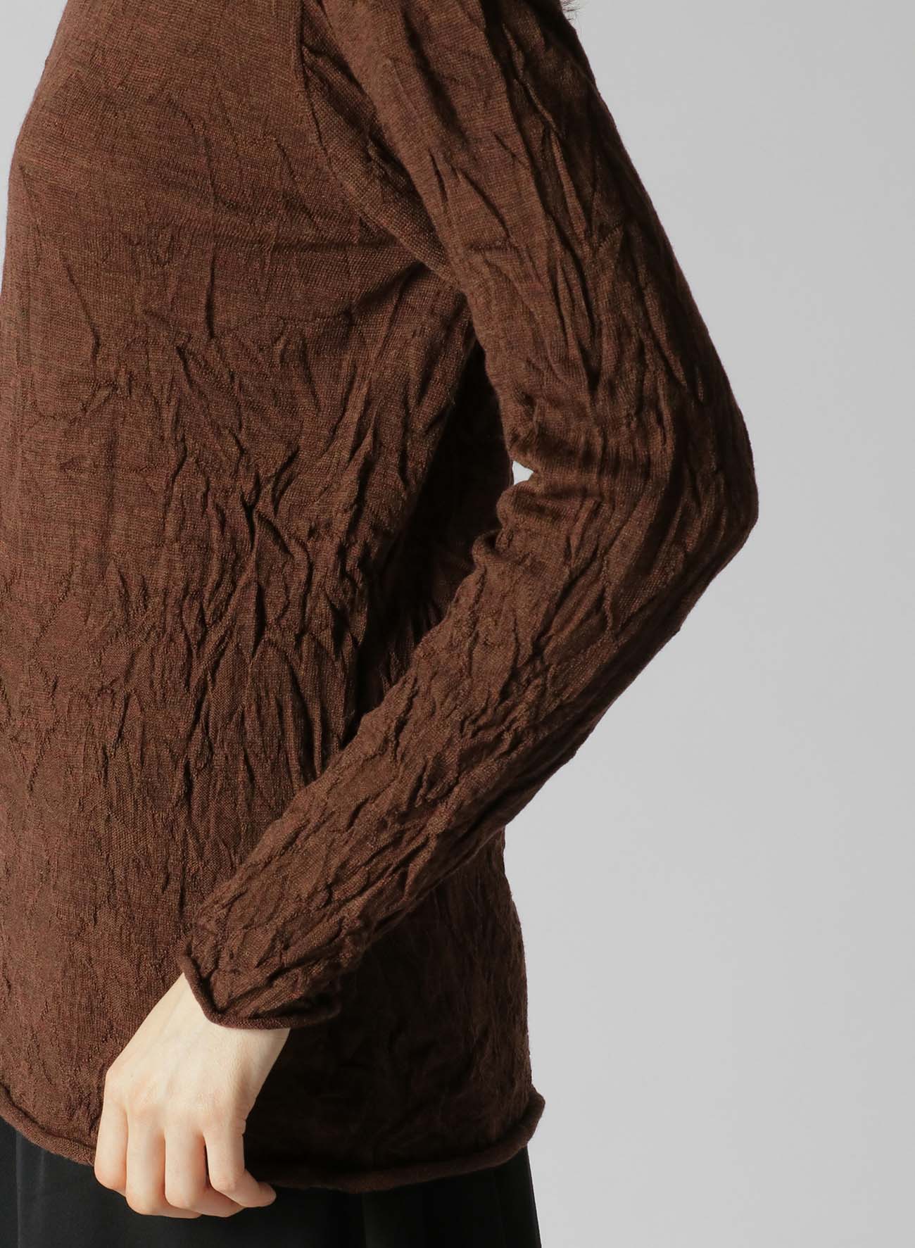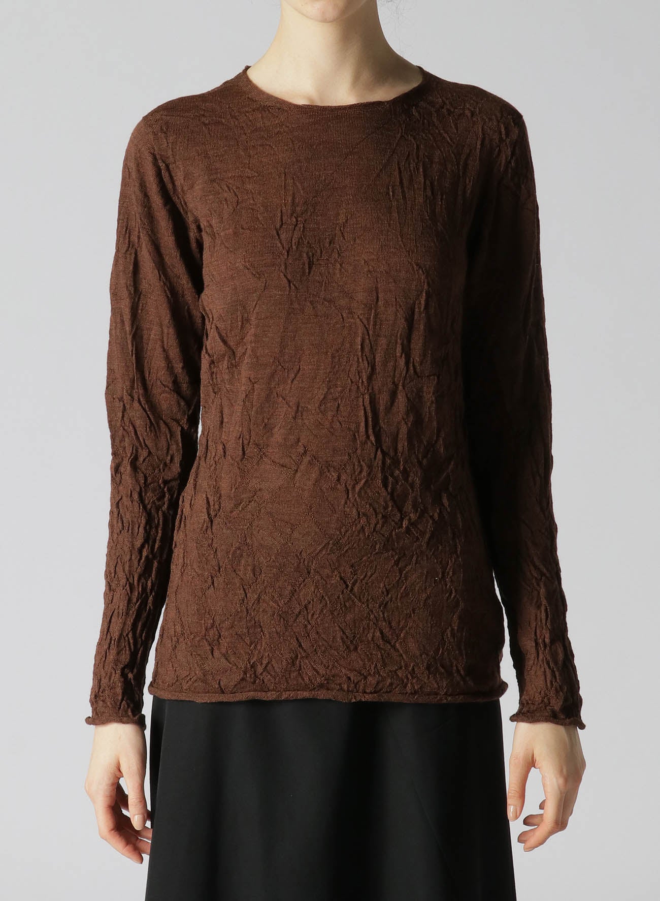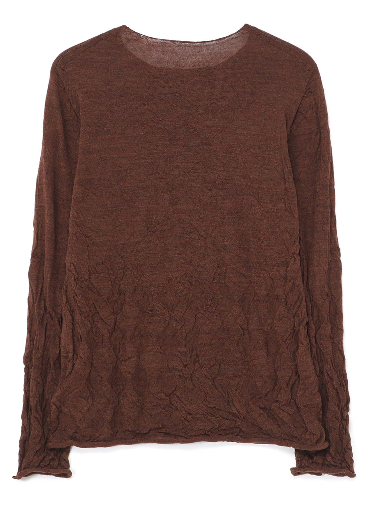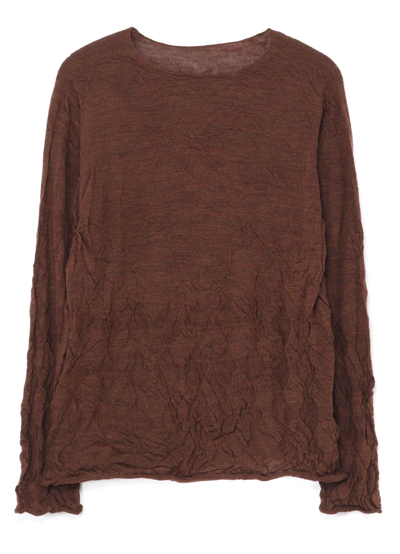 WOOL WRINKLE ROUND NECK LONG SLEEVE T-SHIRT