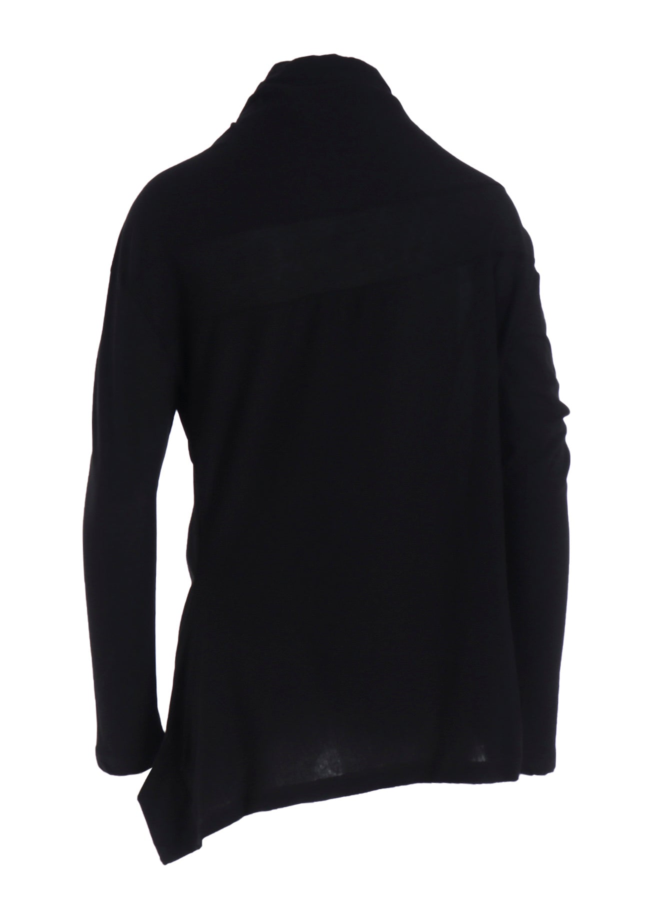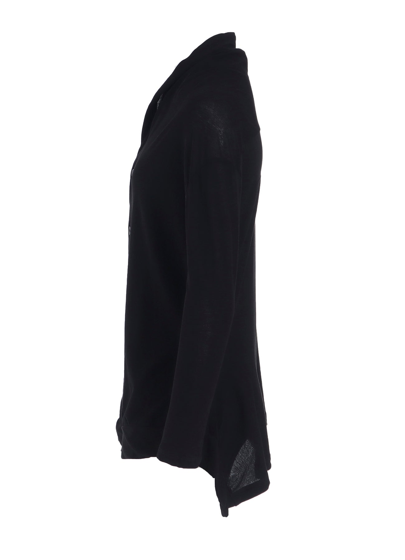 Este cárdigan de manga larga presenta una silueta asimétrica única, confeccionado en tejido de punto de algodón de torsión fuerte. Su textura suave lo convierte en una elección ideal para primavera y verano. El diseño destaca por su toque moderno, siendo un añadido exquisito a cualquier guardarropa.