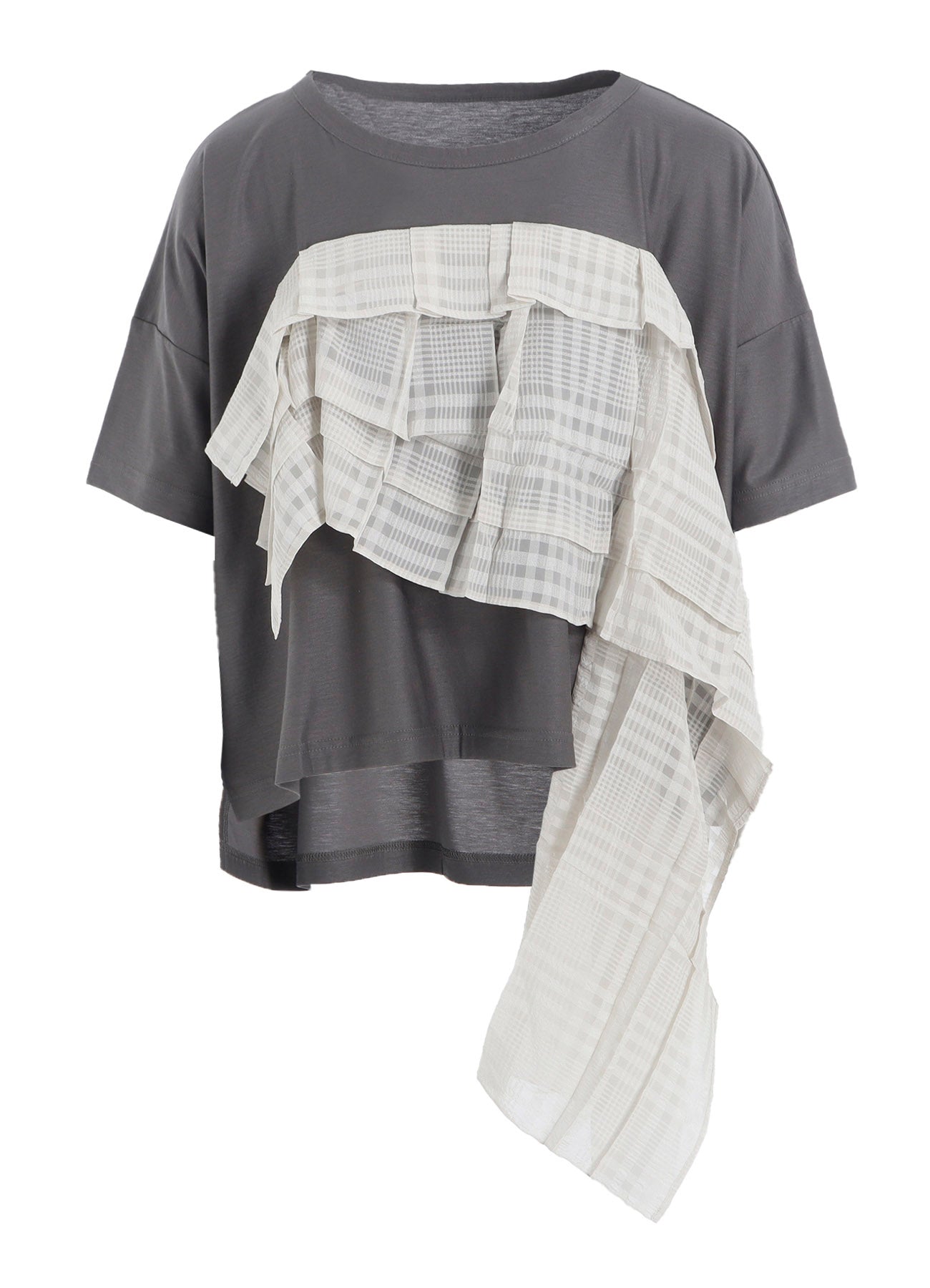 Esta blusa de manga corta cautiva con su diseño audaz y fluido que atrae la atención sin esfuerzo. Incluso cuando se usa sola, destaca con su estilo impactante.