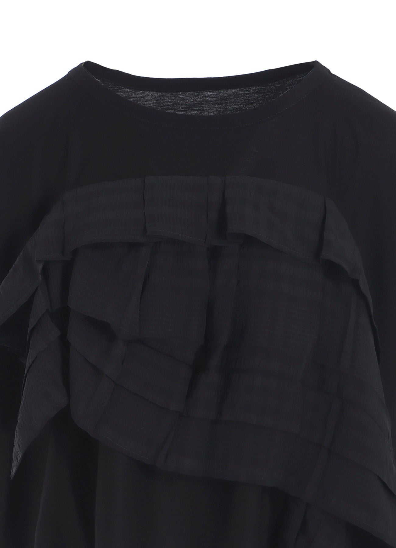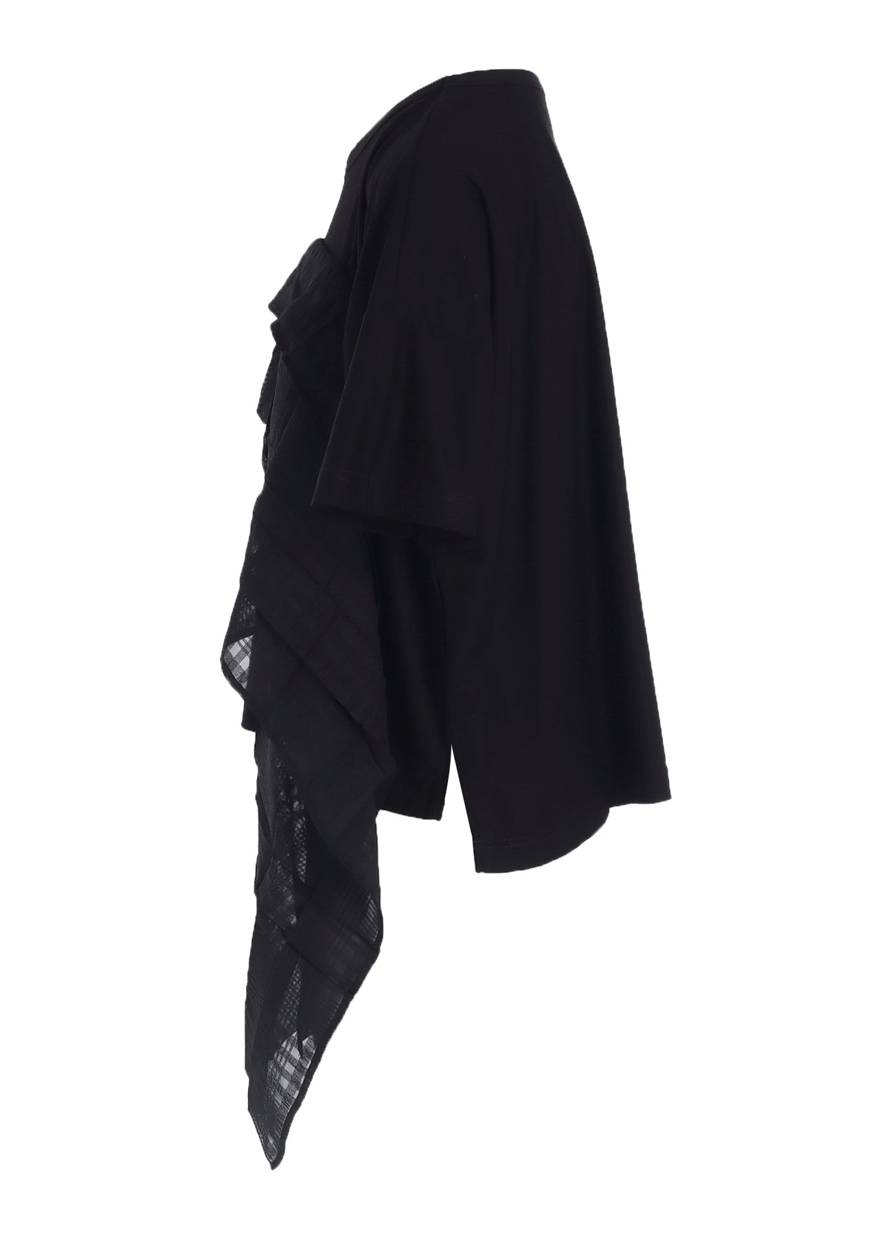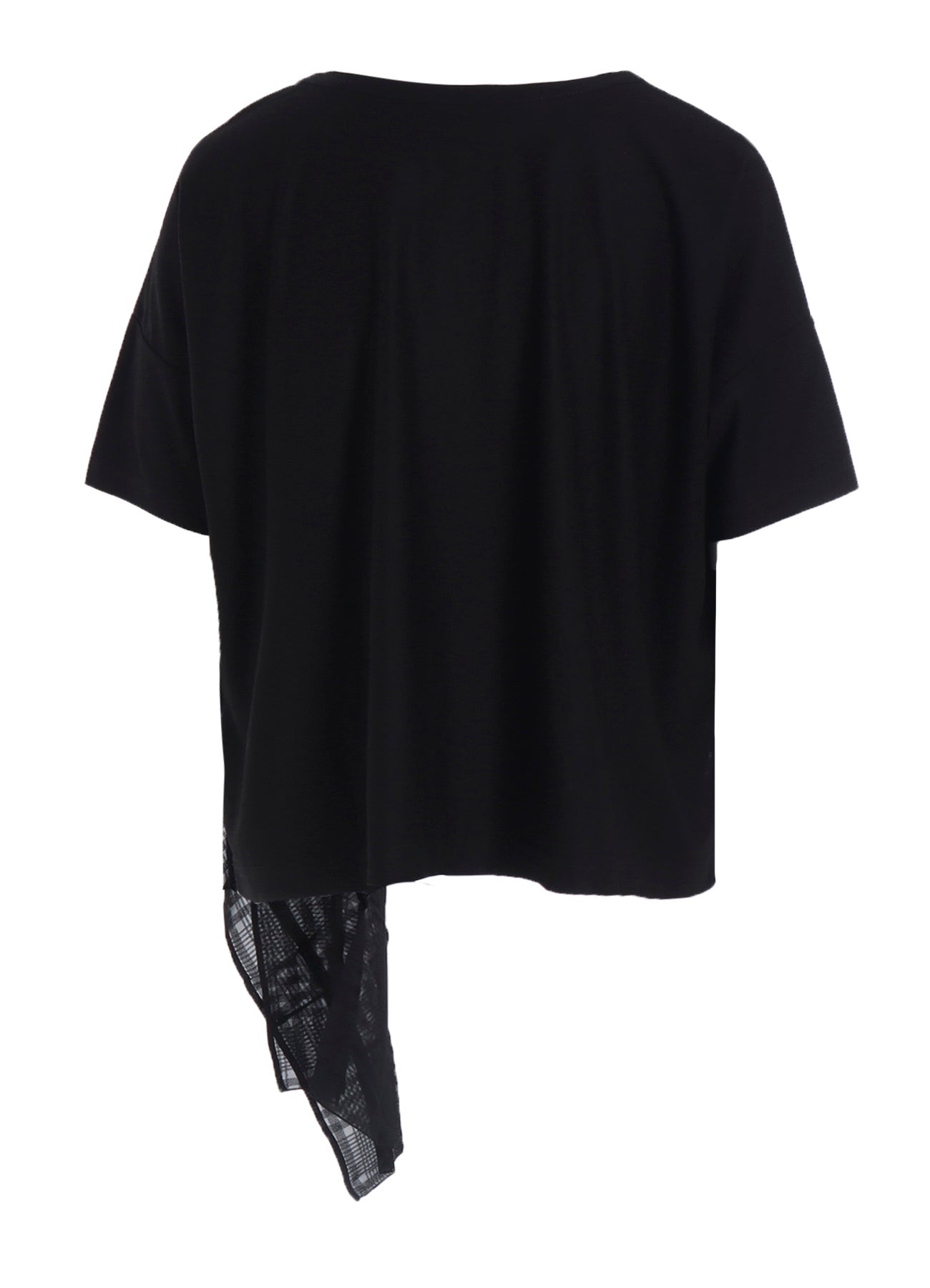 Este top de manga corta destaca por su diseño audaz y fluido que capta la atención sin esfuerzo. Incluso al usarlo solo, deja una impresión significativa con su estilo llamativo.