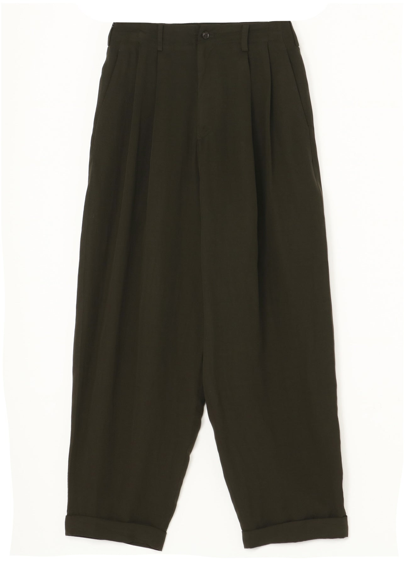 GARMENT-DYED CELLULOSE TWILL DOUBLE PLEATED CUFFED HEM PANTS