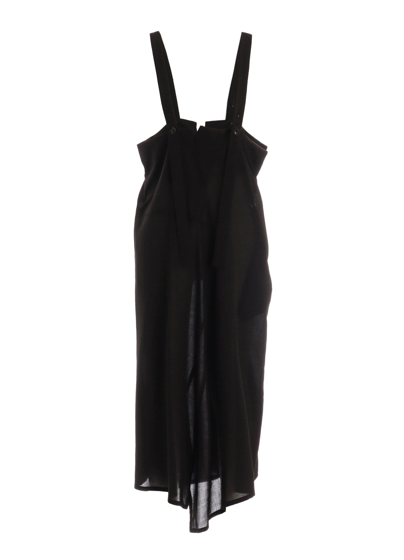 This dress features spaghetti straps made from a gauze material. Crafted with a blend of rayon and wool covered with nylon yarn, it has a crisp texture and a subtle sheen. It pairs well with a top or a knit, making it a versatile addition to your outfit options.