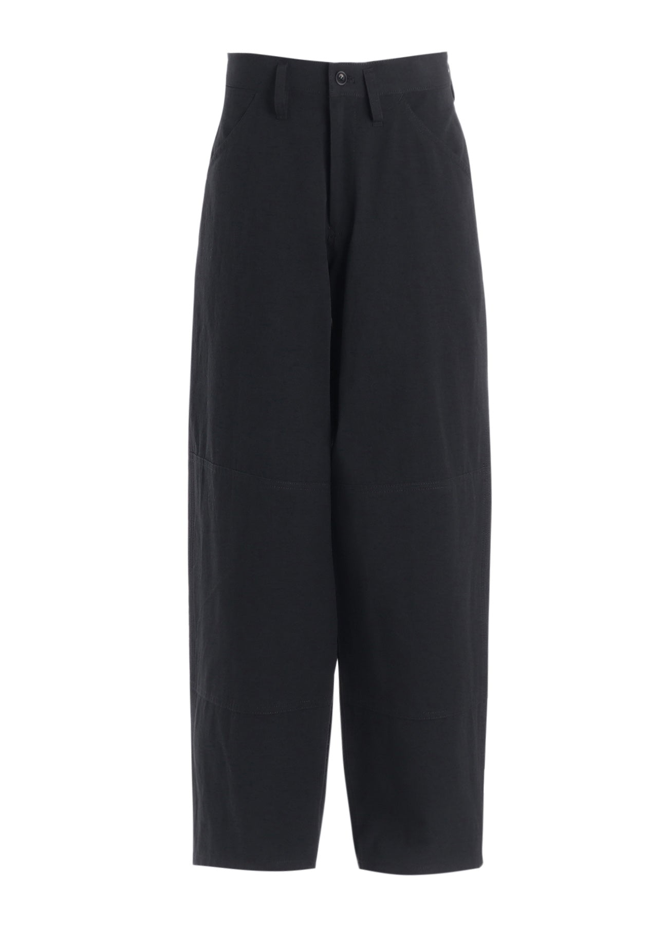 These work pants made from cotton and linen feature a natural uneven texture for a vintage feel. Accentuated with knee patches and a coin pocket for workwear details, they have a slightly low rise, allowing them to be worn as low-rise pants.
