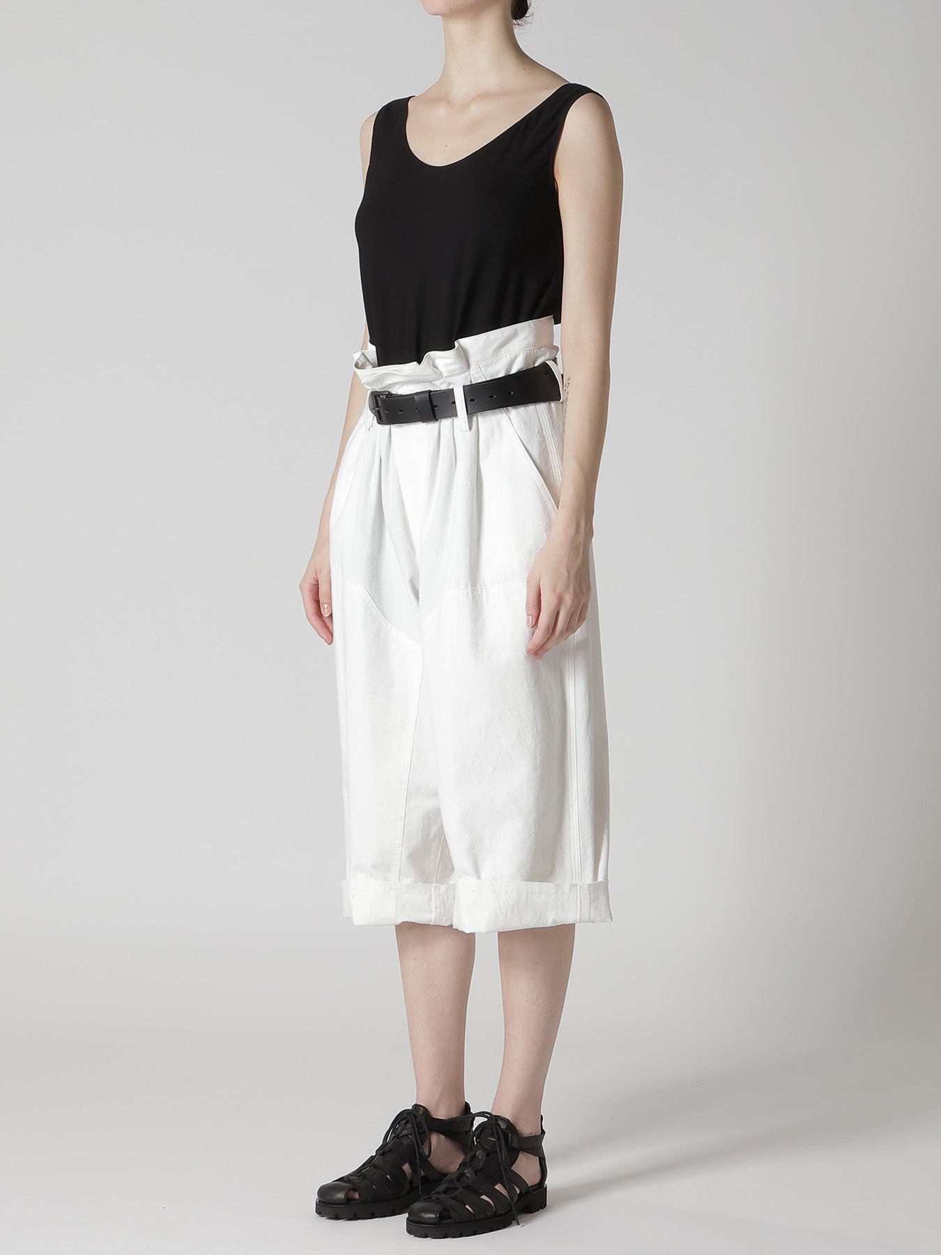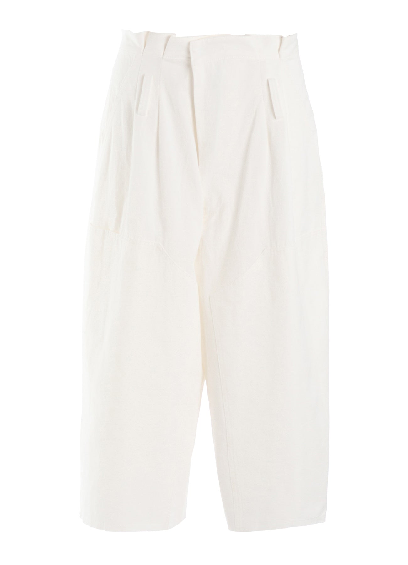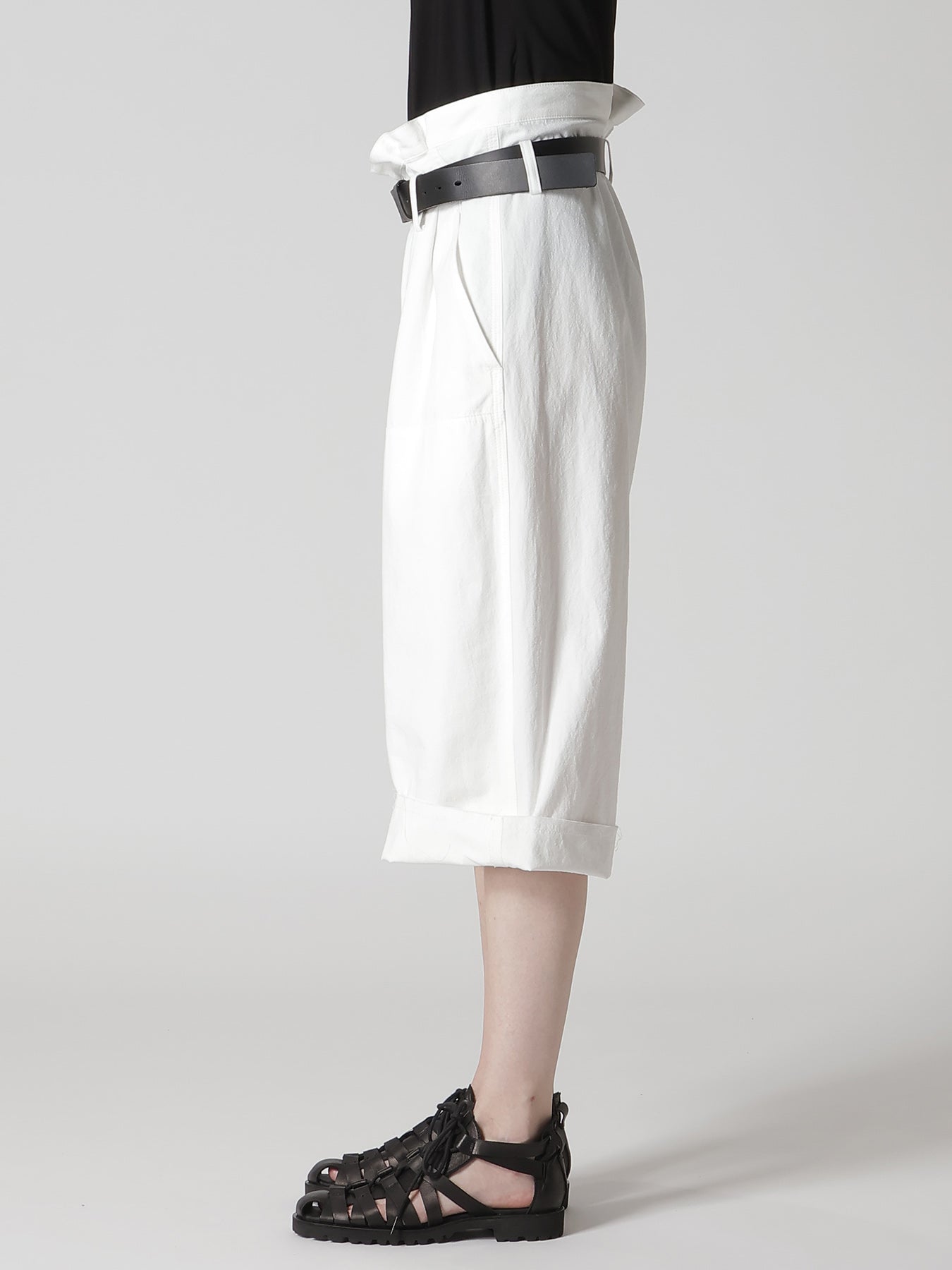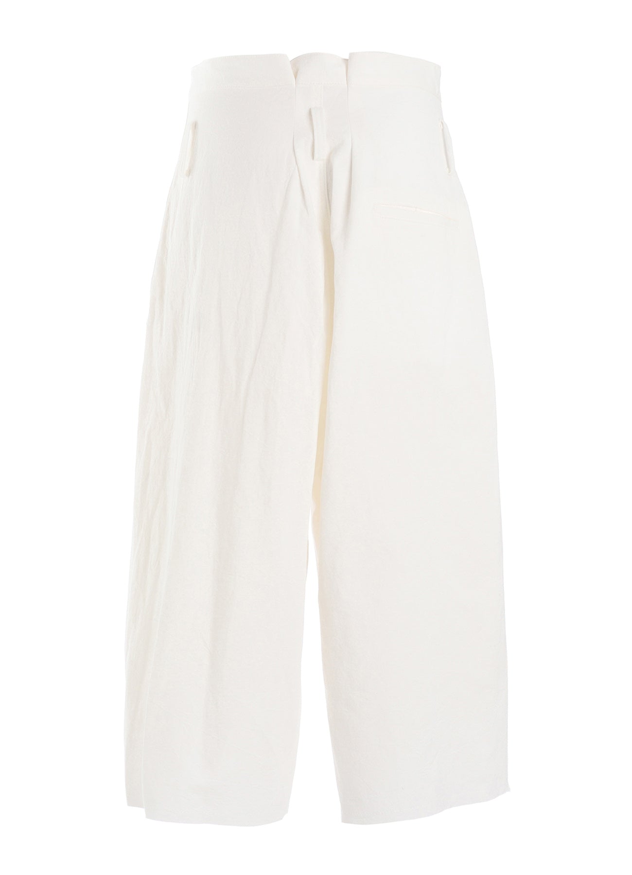 This pair of half-length pants, made from a linen blend, features a vintage feel with natural unevenness. The pants are designed with an accent on the unique volume achieved by offsetting the waist loops.