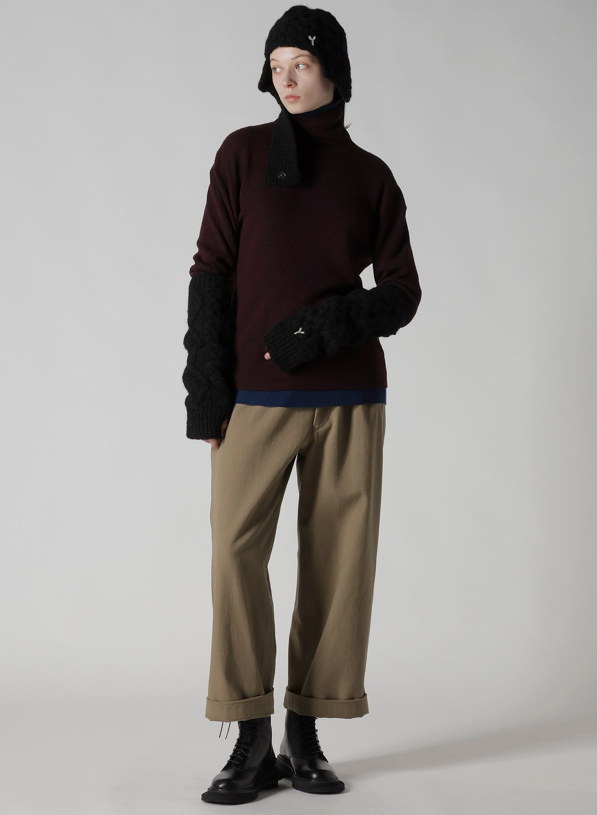 These handcrafted arm warmers feature Y's hand-stitched accents and draw inspiration from an old Aran sweater, combining patterns and using chunky slub yarn for a warm, textured look. Made from 100% wool, they offer volume and warmth. Handle with care to avoid snags or pulls, as knit products are prone to such issues.
