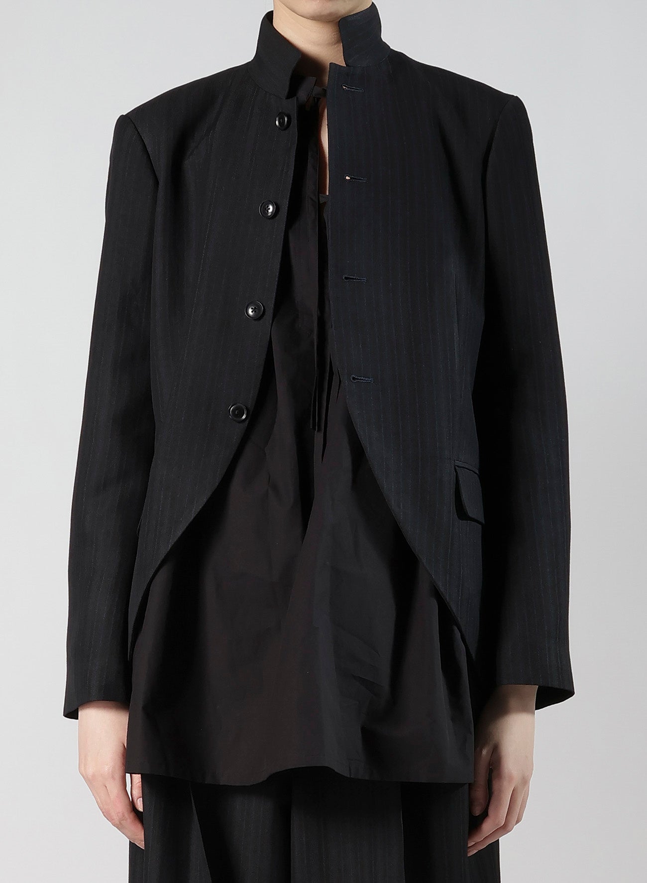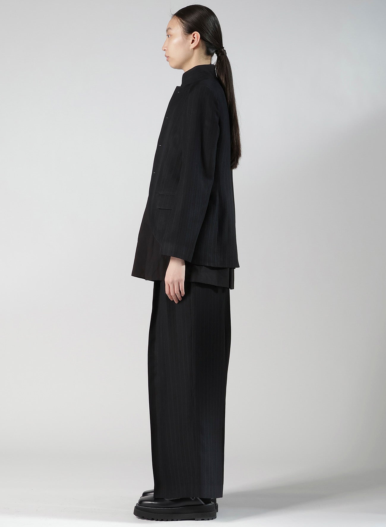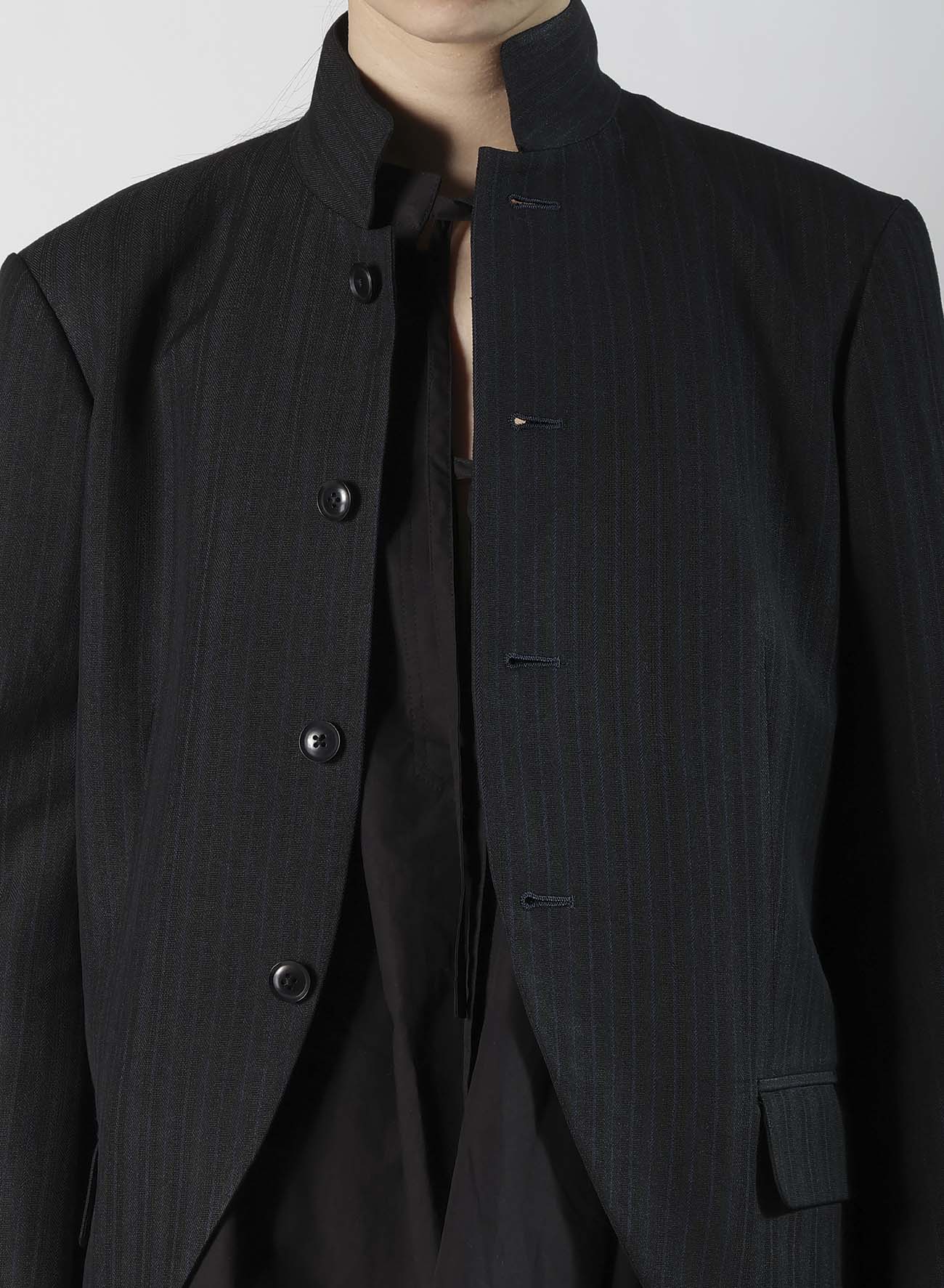 VISCOSE TWEED STRIPE STAND COLLAR JACKET