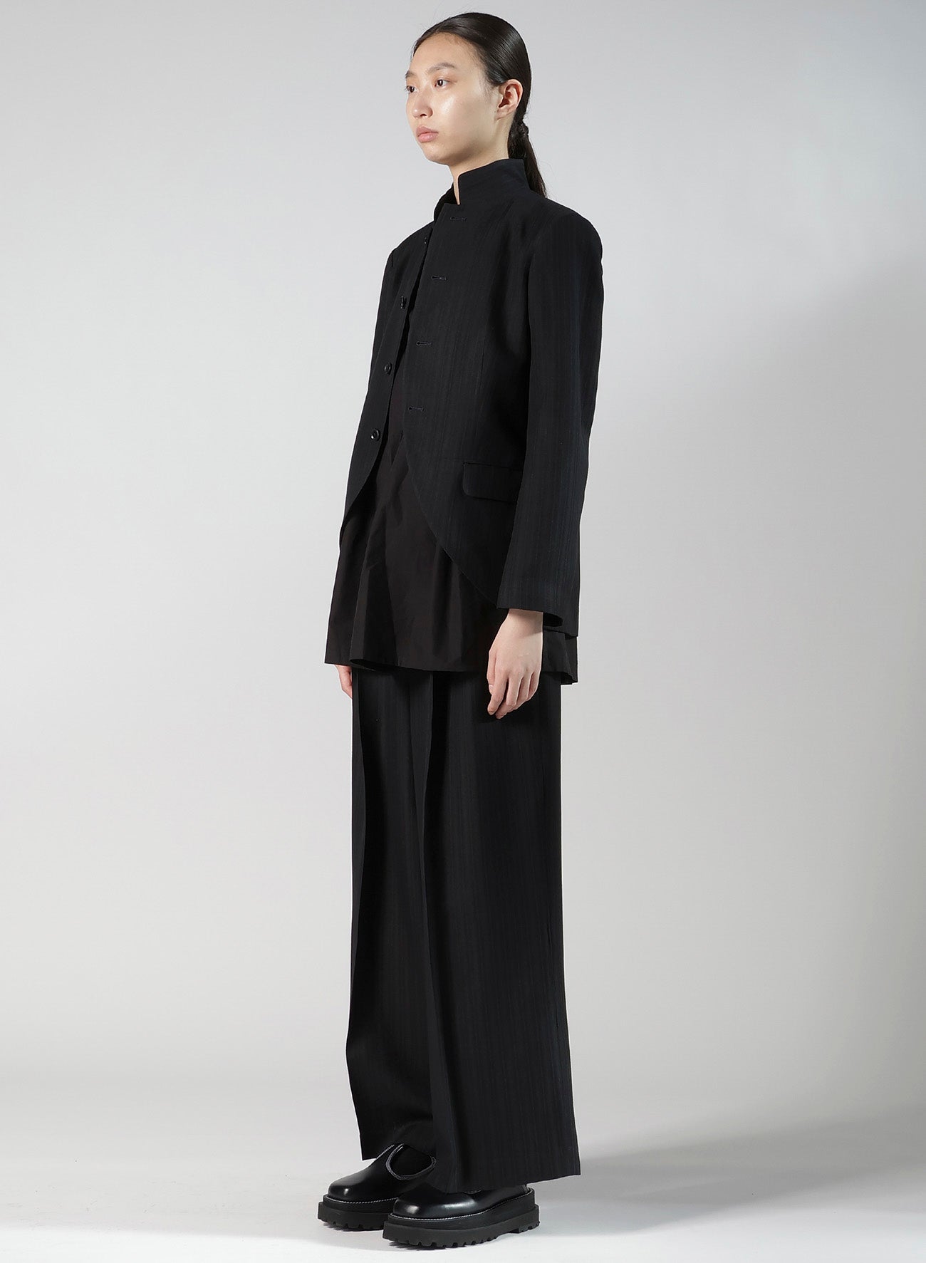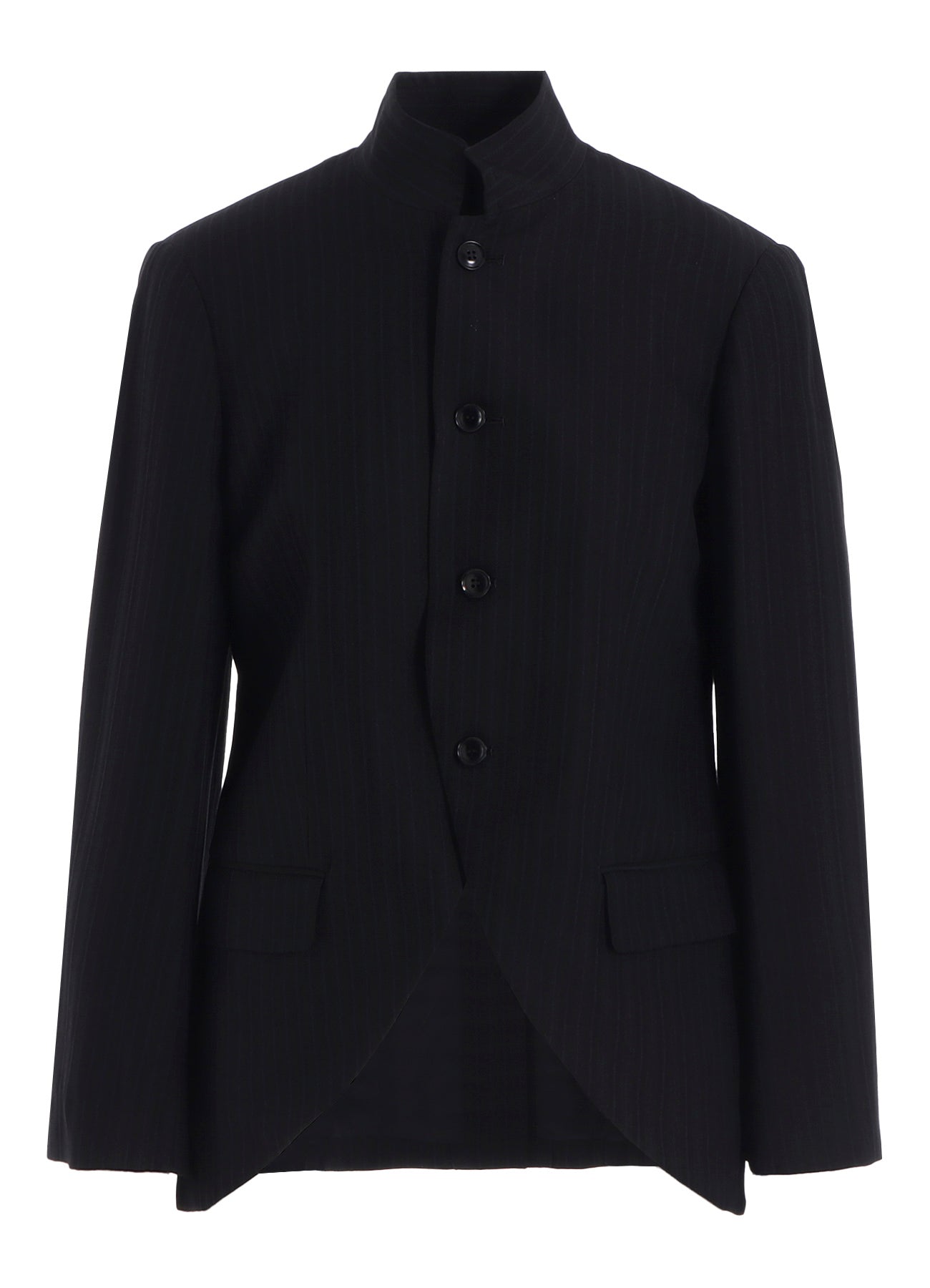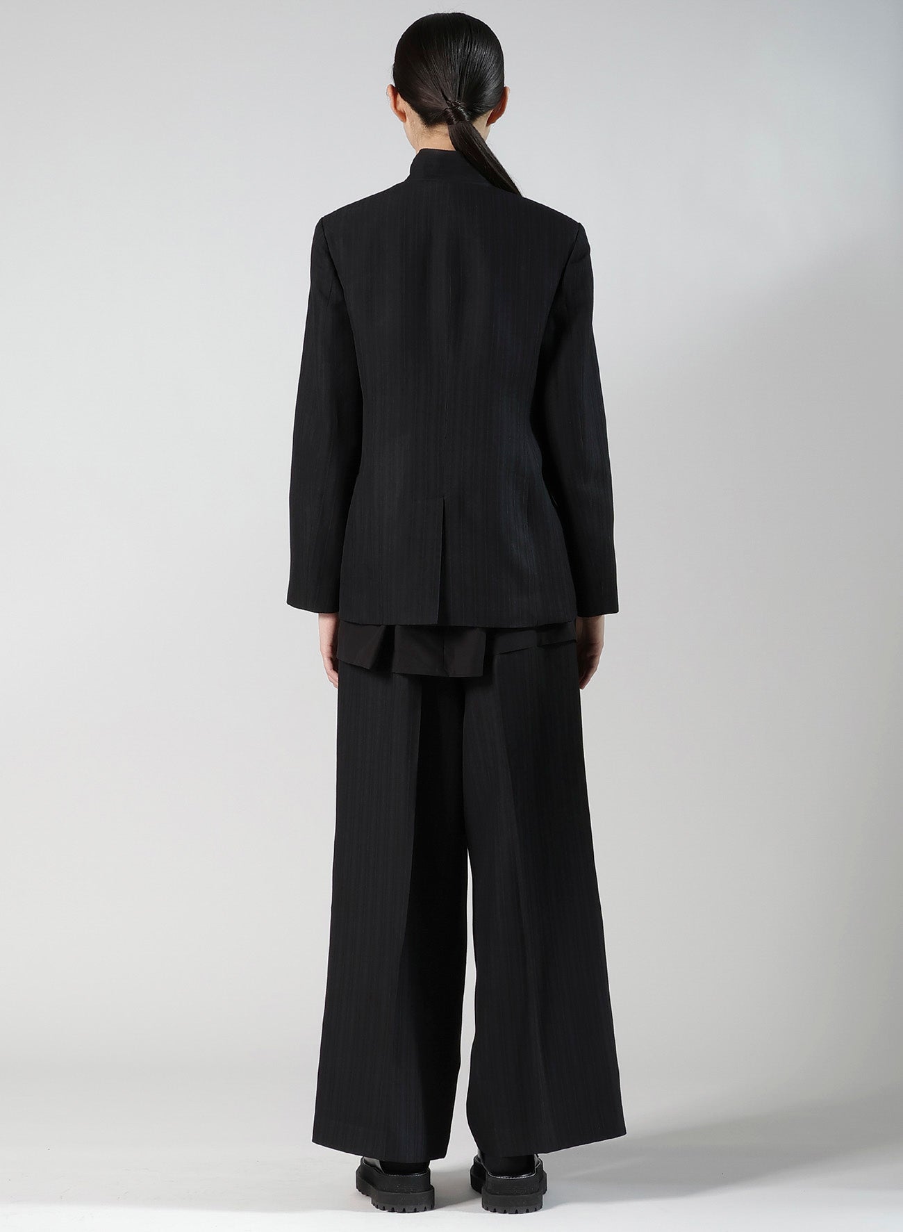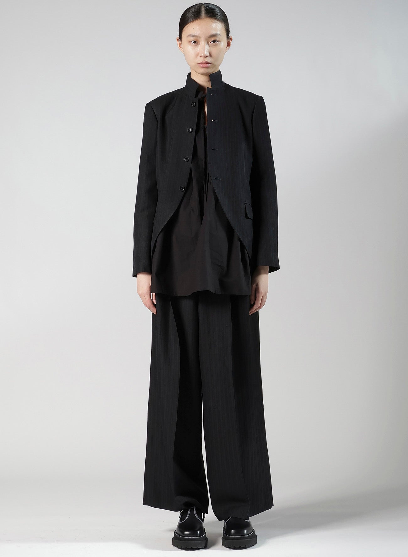 VISCOSE TWEED STRIPE STAND COLLAR JACKET