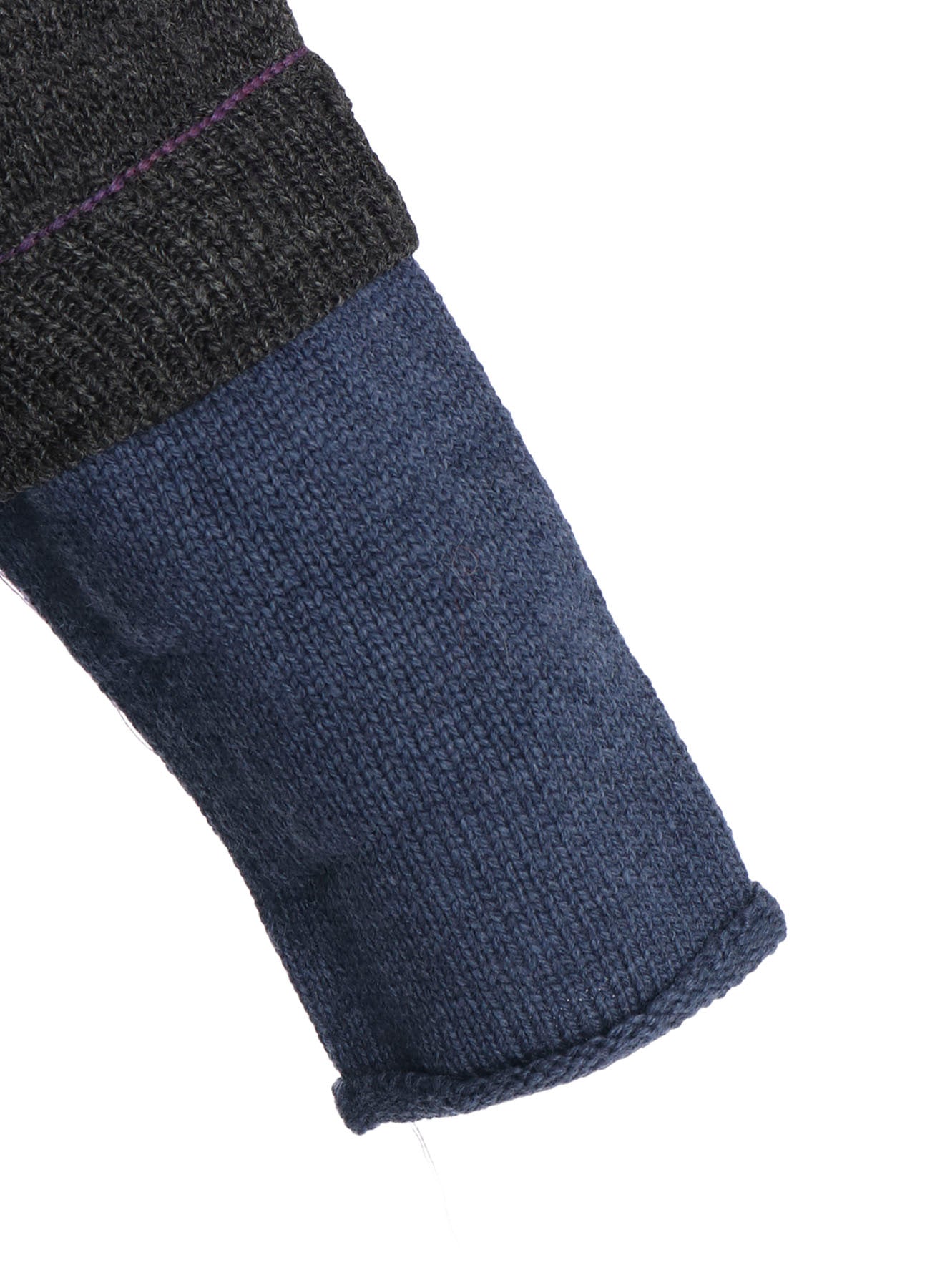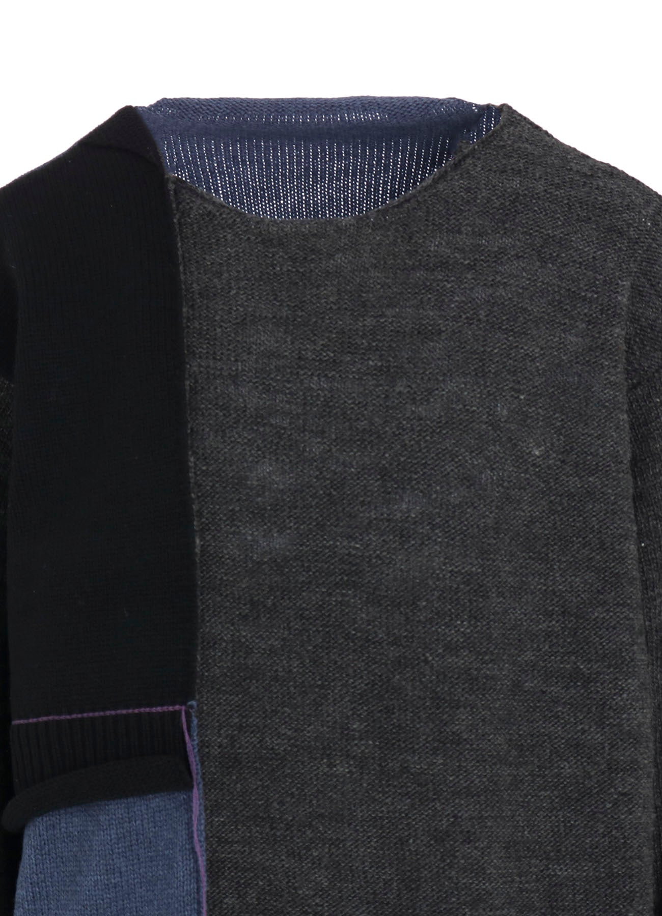 Este suéter de punto cuenta con un diseño de patchwork, en el que las conexiones de hilo sirven como acento. Su diseño relajado y asimétrico ofrece una apariencia acogedora y única.