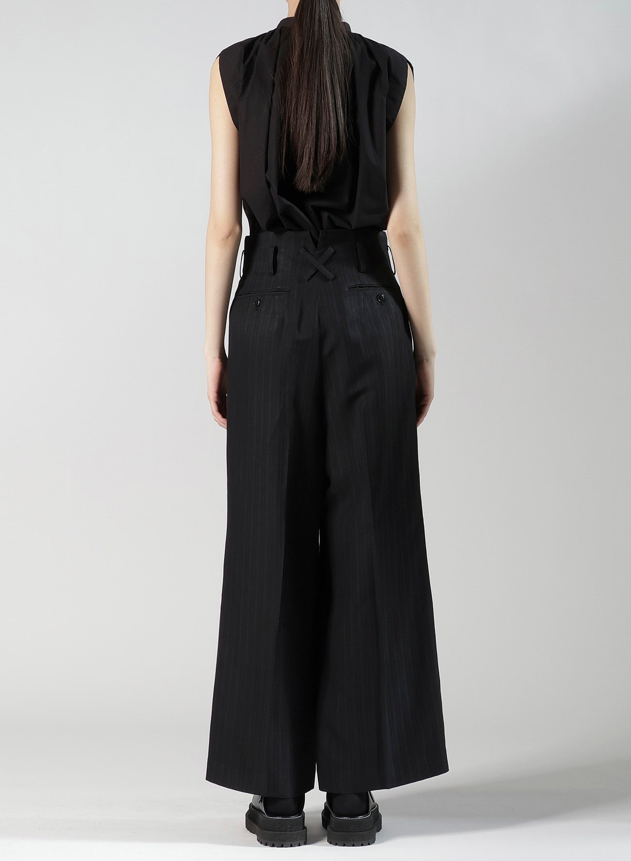 VISCOSE TWEED STRIPE DOUBLE TUCKED PANTS