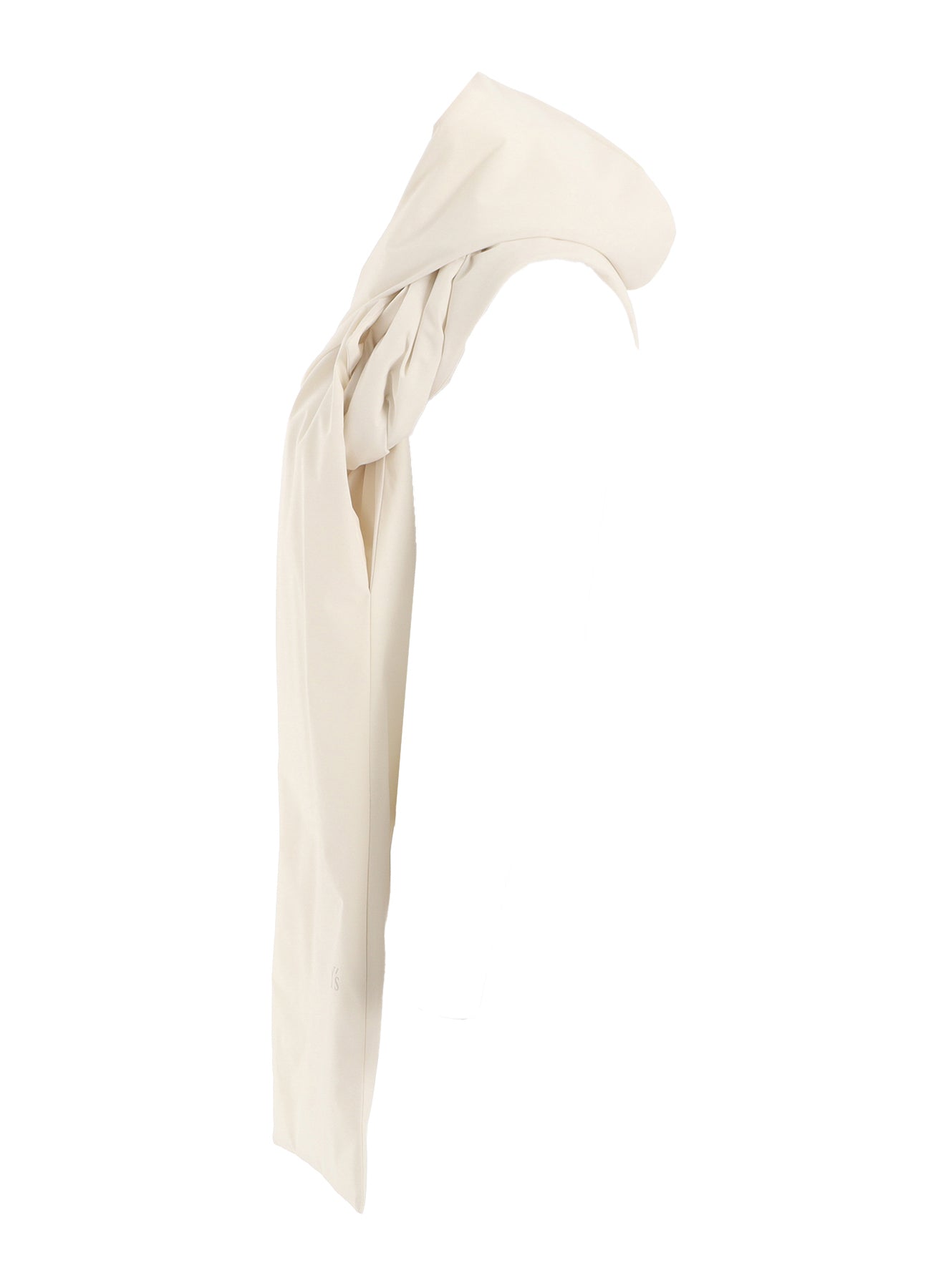 "This hooded stole, made from soft and stretchable SOLOTEX fabric, uses Thinsulate padding for warmth and comfort. The stole extends from the hood to cover the neckline, offering a wearable accessory feel.