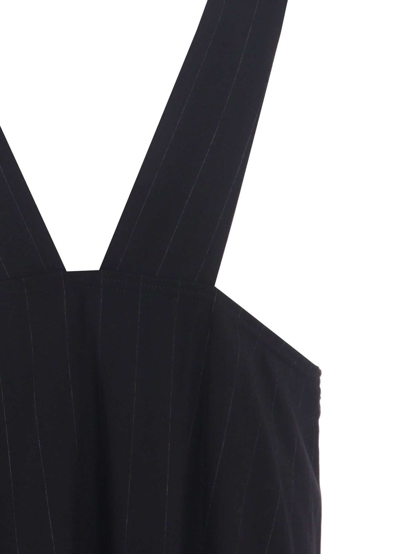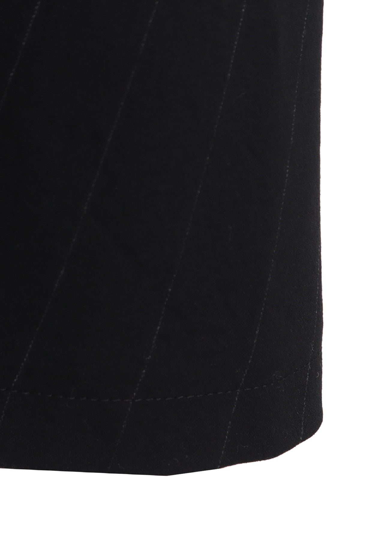 This jump skirt features a wide belt that creates a unique silhouette with its centrally positioned straps. Made from classic chalk stripe fabric that incorporates stretch yarn in the horizontal weave, it offers a perfect balance of stretch and firmness.